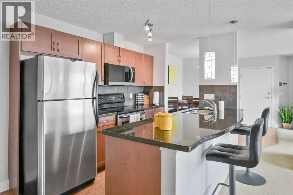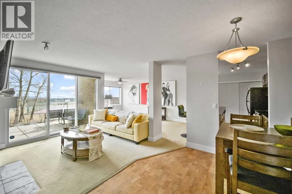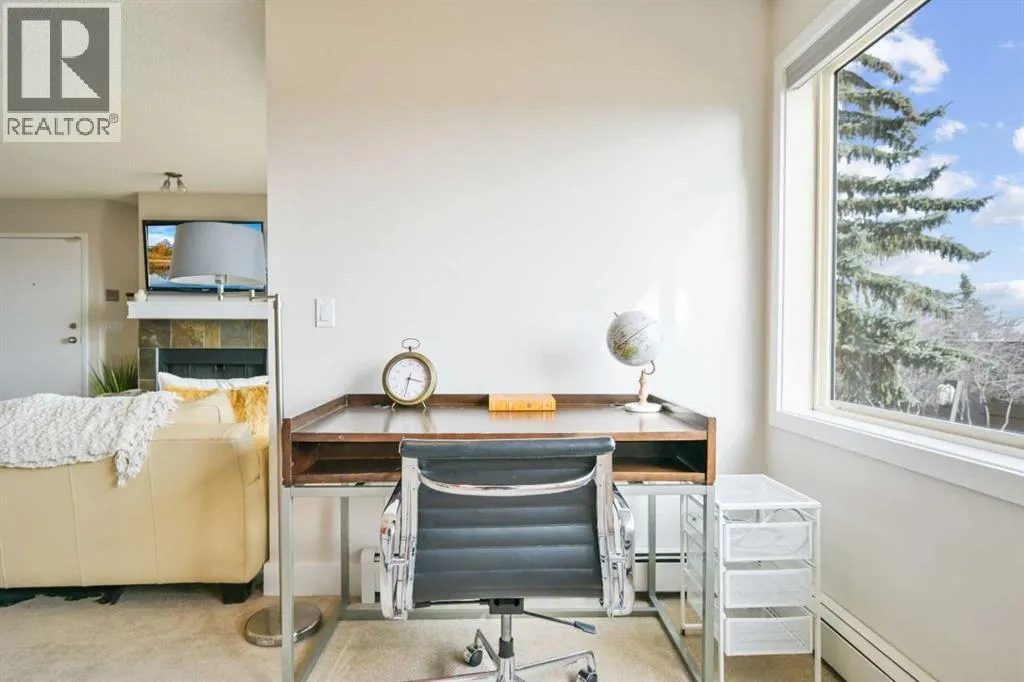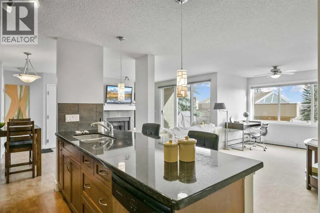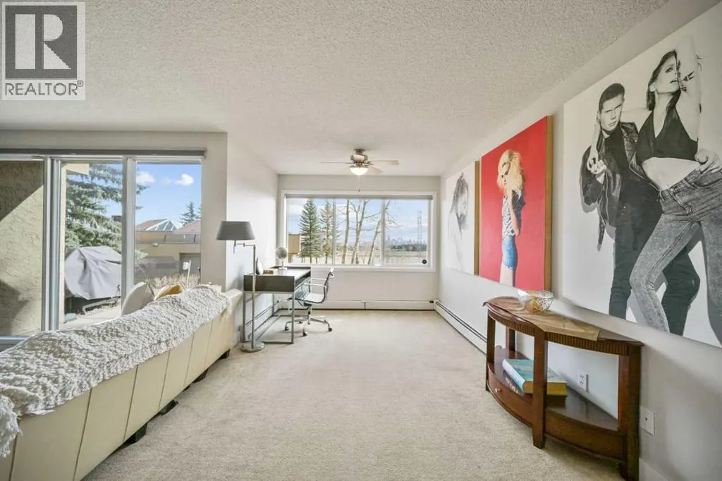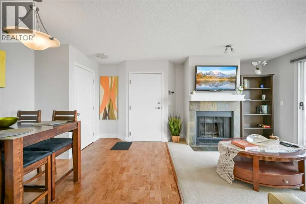 Click brochure link for more details. DEVELOPER SHOW SUITE | FULLY FURNISHED | 1,000+ SQ FT | UNOBSTRUCTED CITY VIEWS | TURN KEY INVESTMENT Step inside the developerâs former show suite, ideally located in the highly sought after community of The News at Broadcast Hill in the prestigious southwest neighbourhood of Patterson Heights. This ground floor, 2 bedroom, 2 bathroom walk out unit offers over 1,000 sqft of living space with unobstructed city skyline views from every room. Opportunities like this are rare, combining location, size, and value in one offering. The home has been fully upgraded and freshly painted, featuring brand new appliances and window coverings. Highlights include two full bathrooms, a spacious primary bedroom with walk in closet, in suite washer and dryer, underground parking, a large south facing patio, and a cozy wood burning fireplace. This unit is truly turn key and comes fully furnished with high end furnishings and curated artwork throughout. Whether you are looking for a move in ready home or a strong long term rental investment, this property delivers. Just bring your suitcase. Originally held as the developerâs prized show suite, this home includes premium upgrades and one of the best locations within the community, just steps from its exceptional amenities. Residents enjoy access to an indoor pool, hot tub, fitness centre, tennis and basketball courts, and an event space for private gatherings. Set on 17 acres of private land, this pet friendly community offers a unique lifestyle just 10 minutes from downtown Calgary. Enjoy peaceful walks, mature surroundings, and the soothing sound of the nearby waterfall just outside your door. This is the first time this unit has been offered for sale since its original purchase from the developer. A rare opportunity to own a fully furnished, show suite quality home in one of Calgaryâs most desirable southwest communities (id:27476)