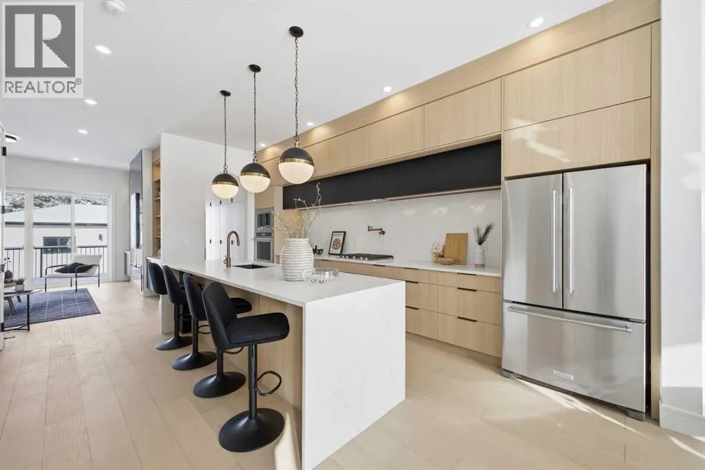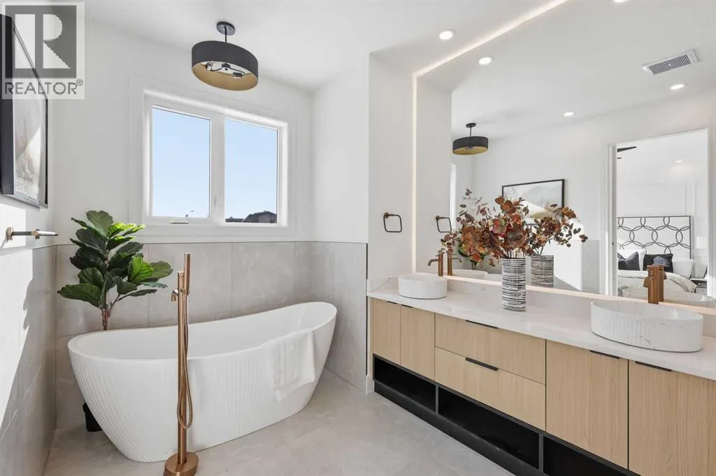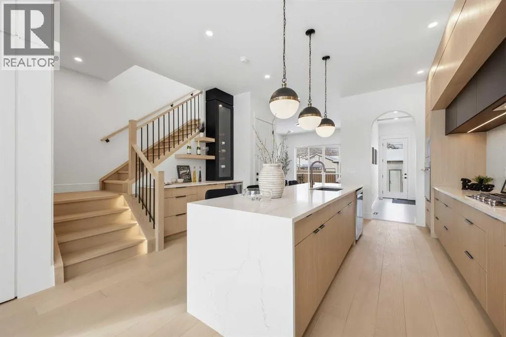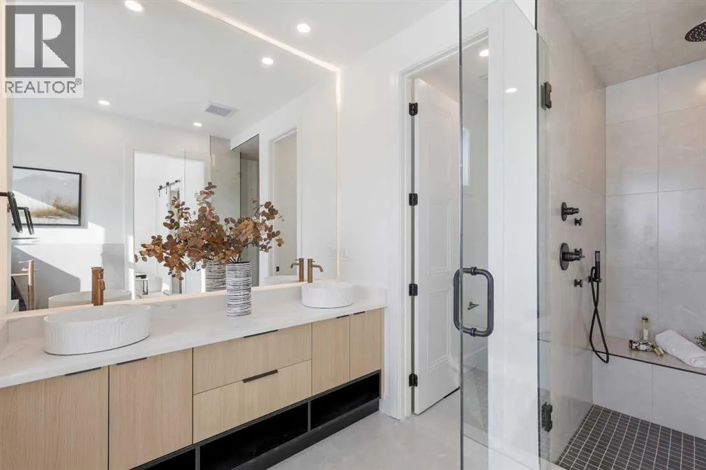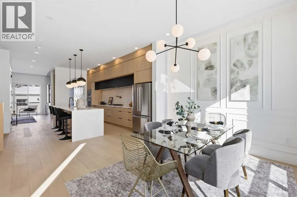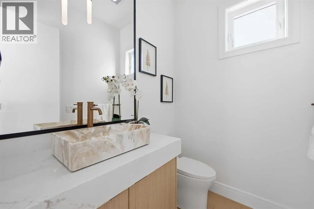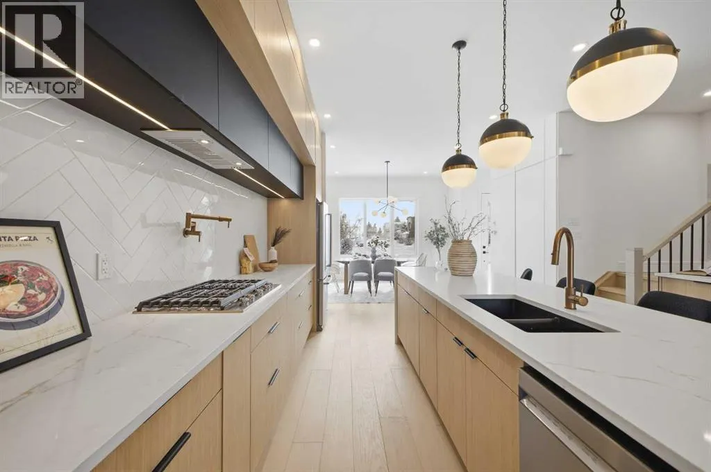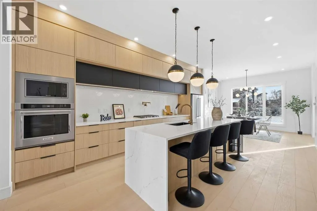 Located in the established community of Winston Heights, this gorgeous new home offers exceptional versatility with 3 bedrooms and 2.5 baths on the upper levels, plus a beautifully finished 2 bedroom legal basement suite with its own private entrance. The main level showcases wide plank hardwood floors and soaring 10â ceilings, creating an impressive sense of space. At the front of the home, a stylish dining area with a feature wall and designer lighting provides an inviting setting for hosting family and friends. The kitchen serves as the heart of the home, thoughtfully appointed with quartz countertops, a striking waterfall island with eating bar, abundant cabinetryâincluding a built in hutchâstainless steel appliances, and a convenient pot filler. The living room is anchored by a sleek feature fireplace framed by custom built ins. Just off the kitchen, a wall of additional cabinetry offers excellent storage and connects seamlessly to the mudroom. A 2 piece powder room completes the main level. Upstairs, a central bonus room makes an ideal home office or lounge space. Three bedrooms, a 4 piece bath, and dedicated laundry facilities complete this floor. The primary suite features a tray ceiling and elegant feature wall, along with a beautifully designed walk in closet. The luxurious 5 piece ensuite includes in floor heat, dual sinks, a relaxing freestanding soaker tub, and a separate shower. The legal 2 bedroom basement suite is equally impressive, offering a spacious living/dining area and a well equipped kitchen with quartz countertops, ceiling height cabinetry, and stainless steel appliances. Private laundry and a separate entrance make this suite ideal for extended family or rental income. Outside, enjoy the sunny west facing backyard with a deck and BBQ gas line, along with direct access to the double detached garage for effortless parking. This prime location places you steps from the Winston Golf Club and close to Renfrew Athletic Park, schools, shopping, pu blic transit, and major routes including 16th Avenue and Deerfoot Trailâoffering outstanding convenience in a highly desirable inner city community. (id:27476)