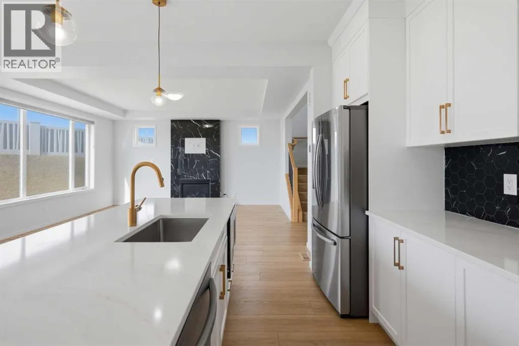 Welcome to this fantastic home located on a MASSIVE LOT in the sought after community of Carrington! One of THE LARGEST lots sold in Carrington in the last 10 years! This 2,180 sq ft 2 storey has loads of upgrades - wide plank flooring, upgraded interior doors with black hardware, remote control window coverings, central air conditioning, modern pendant lighting, upgraded bathrooms and more! The living room features a black tiled fireplace creating a cozy elegance. The gourmet kitchen shows gorgeous quartz countertops, gas range, an abundance of cupboards, upgraded faucet and stylish pendant lighting. Upstairs are 3 good size bedrooms - the large primary bedroom with a spacious walk-in closet and an upgraded 5 piece ensuite! To complement this level there is a large bonus room, main 4 piece bathroom and laundry room. There is a double attached garage and CENTRAL AIR CONDITIONING. The oversized west facing backyard is ready for a future landscaping vision. The vibrant community of Carrington is located close to Stoney Trail and Deerfoot Trail as well as Creekside, Evanston and Carrington Plaza Shops. Also walking trails, playgrounds, storm ponds, green spaces and transit stops . This is a fabulous family home with loads of living space inside and outside. Why build - this home is move in ready! (id:27476)