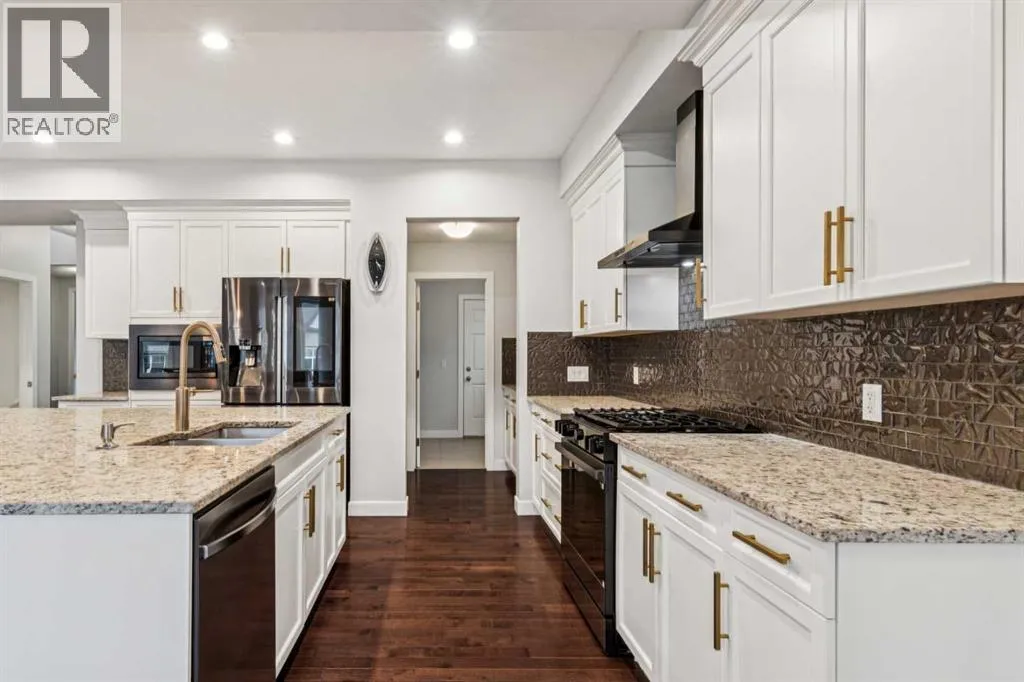 This fully finished two-storey walkout in Mahogany offers over 4,000 sq ft of developed living space on a quiet street with direct pathway access to a nearby park. A grand entryway with soaring ceilings creates an impressive first impression, setting the tone for the bright and open layout enhanced by 9â ceilings on every level. The main floor is designed for both everyday living and entertaining, featuring a modern kitchen with a gas stove and newer dishwasher that flows seamlessly into the dining and living areas. Thoughtful upgrades throughout include updated light fixtures, faucets, cabinet hardware, stylish accent walls, and a refreshed powder room, giving the home a clean, contemporary feel.Upstairs, youâll find four spacious bedrooms, a large bonus room, and a conveniently located laundry room, offering excellent functionality for busy households. The primary suite provides a comfortable retreat with upgraded ensuite shower hardware. The walkout basement adds even more versatility with two additional bedrooms and direct access to the backyardâideal for guests, teens, or extended family. An oversized 24â extended double attached garage completes the home with exceptional storage and practicality.Located in Mahogany, one of Calgaryâs premier lake communities, residents enjoy year-round access to the lake, beaches, and an extensive network of walking paths. With excellent schools, parks, and a vibrant urban village offering shops, dining, and everyday amenities, Mahogany delivers a balanced lifestyle in a highly sought-after setting. (id:27476)
