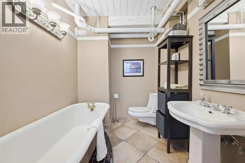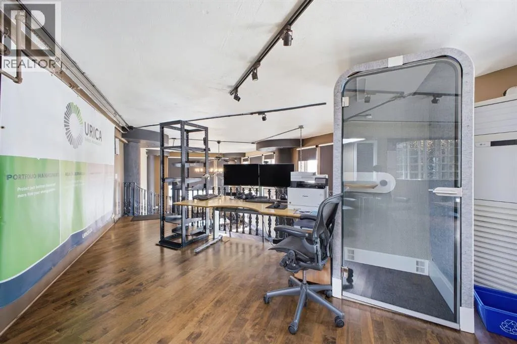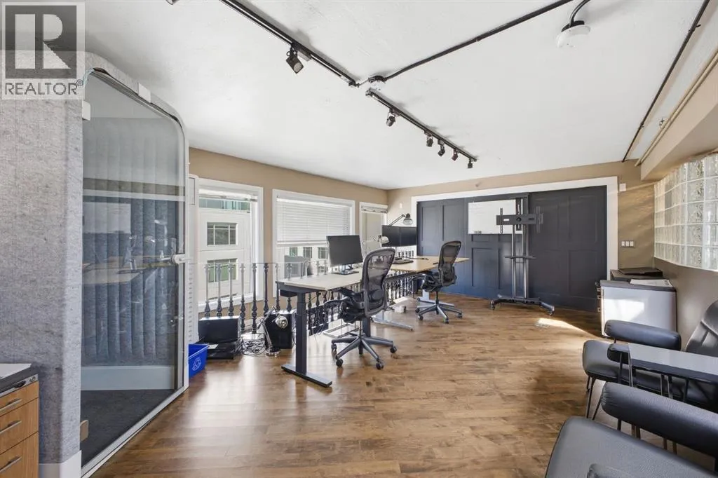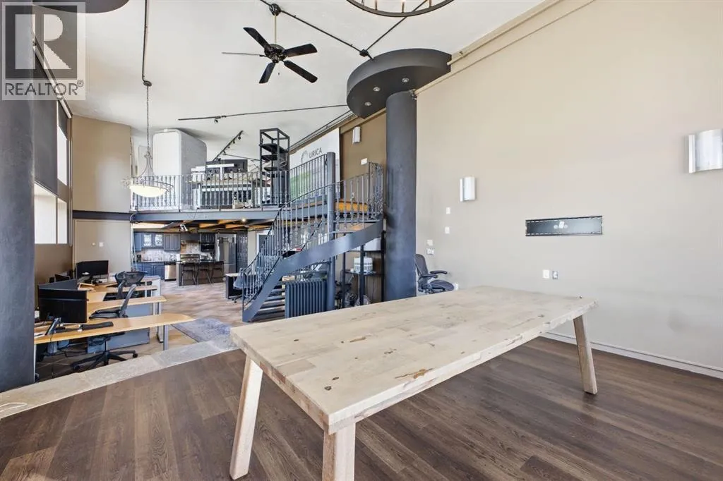 Have you ever imagined living or working in Manhattan? This loft delivers that same urban energyâright in the heart of Calgary. With zoning that allows both residential and commercial use, you can call it home, office, or a dynamic combination of the two. Currently utilized as office space, this impressive two storey unit offers soaring 20â ceilings & nearly 1,600 sq ft of living space that can be re imagined into a stunning loft residence. The lower level features refinished hardwood flooring, and a dramatic chandelier. This space flows into an expansive open area ideal for a generous living/dining configuration. The kitchen is well appointed with granite countertops, an island with eating bar, stainless steel appliances, ample cabinetry, and a built in hutch for additional storage. A 3 piece bath and abundant storage complete the main level. A sweeping curved staircase leads to the upper floor, where youâll find a spacious open loft with room for a large bedroom and office setup, along with a 4 piece bath. Units 301 and 303 are being sold separately; however, if purchased together, they can be seamlessly connected to create a truly spectacular space. If only one unit is purchased, the access point between them will be professionally sealed. Additional highlights include in suite laundry, a west facing balcony, one assigned parking stall and a large assigned storage locker. Set amid Calgaryâs best restaurants, cafés, and entertainmentâand just a short walk to the downtown coreâthis location offers the ultimate in urban convenience and vibrancy. (id:27476)