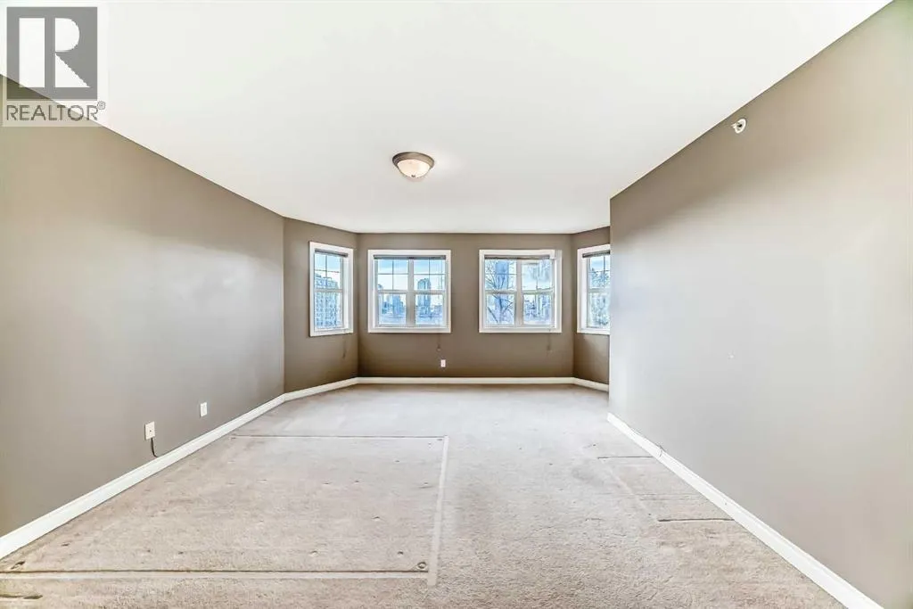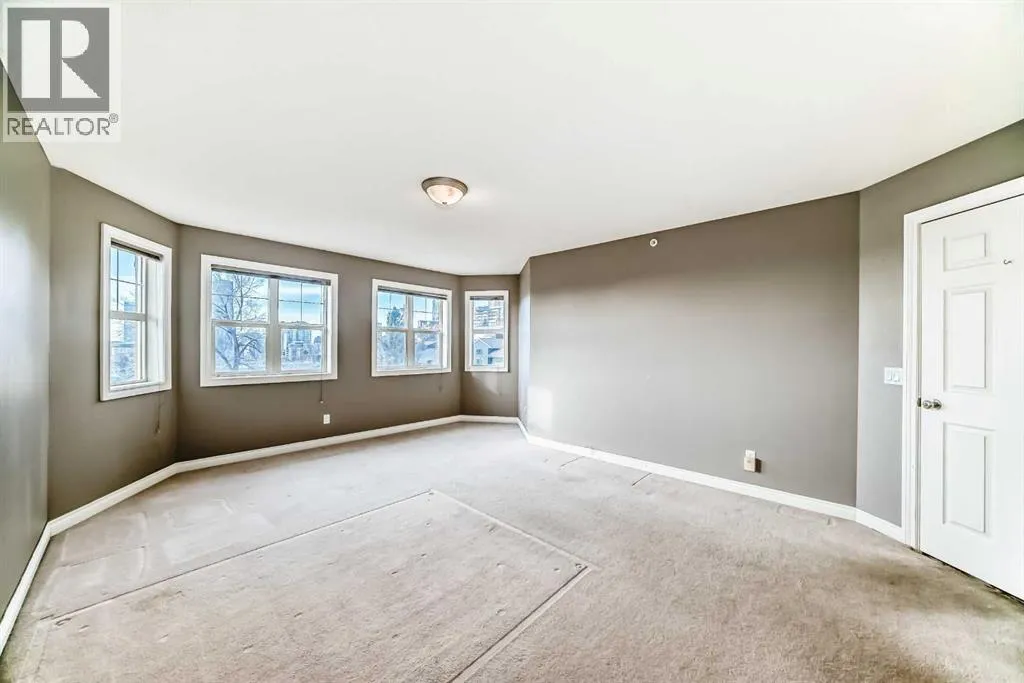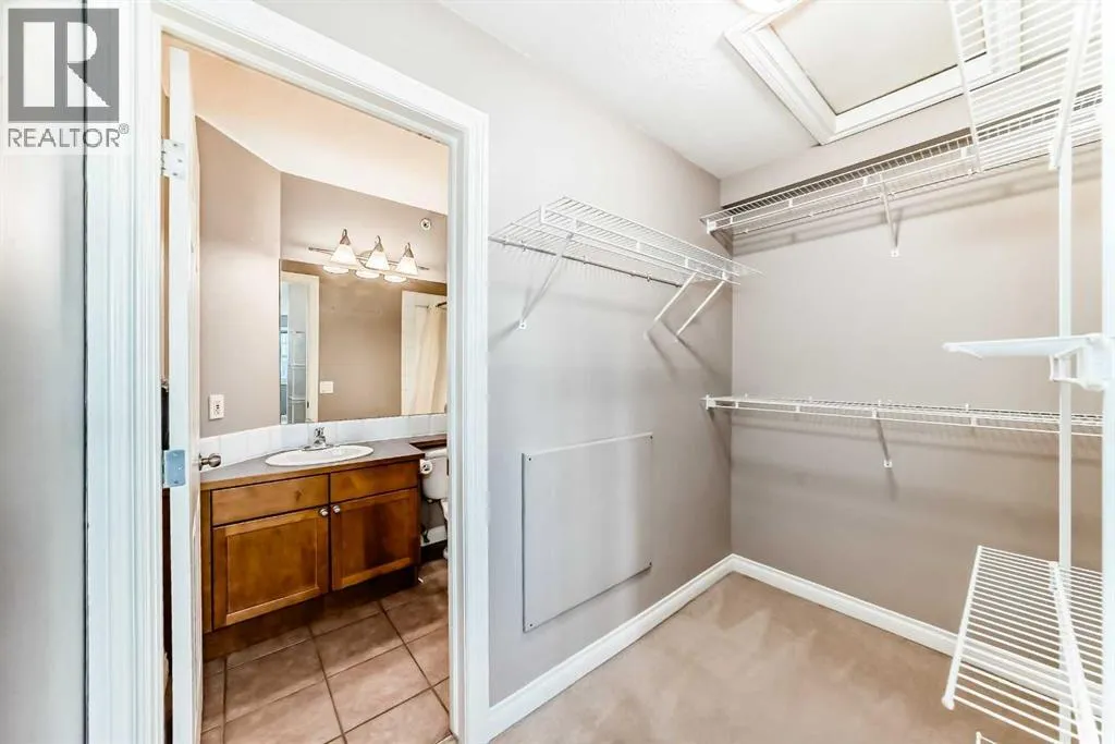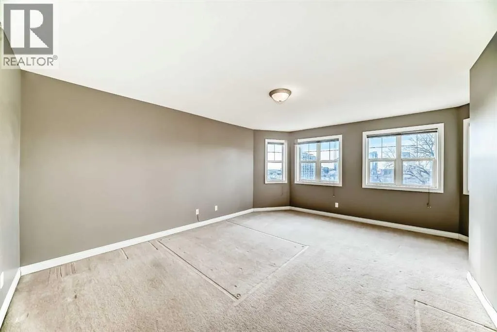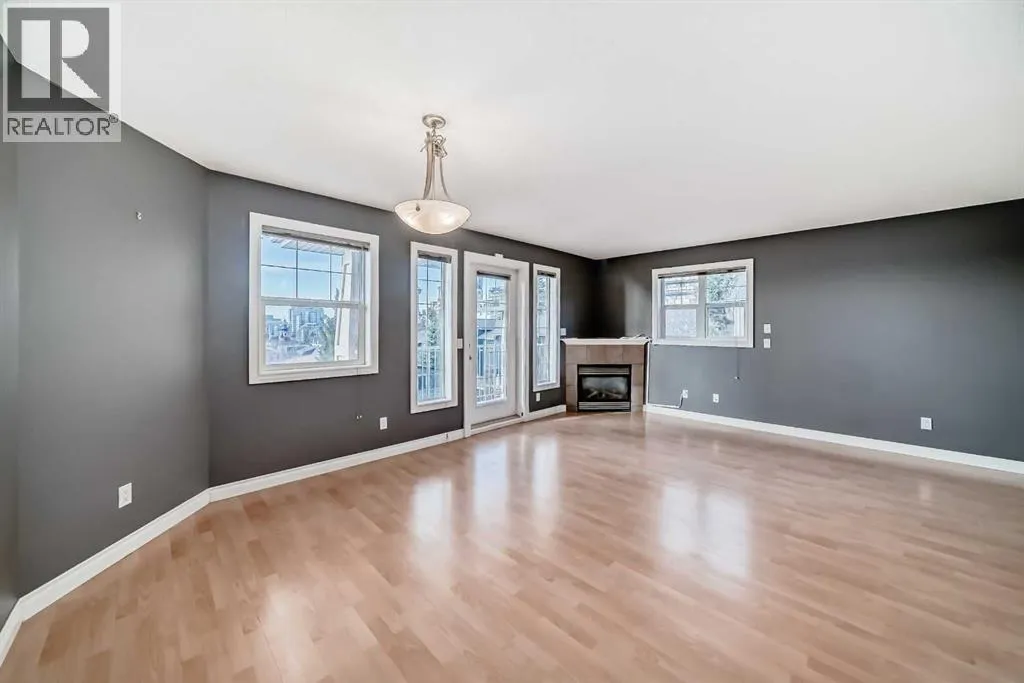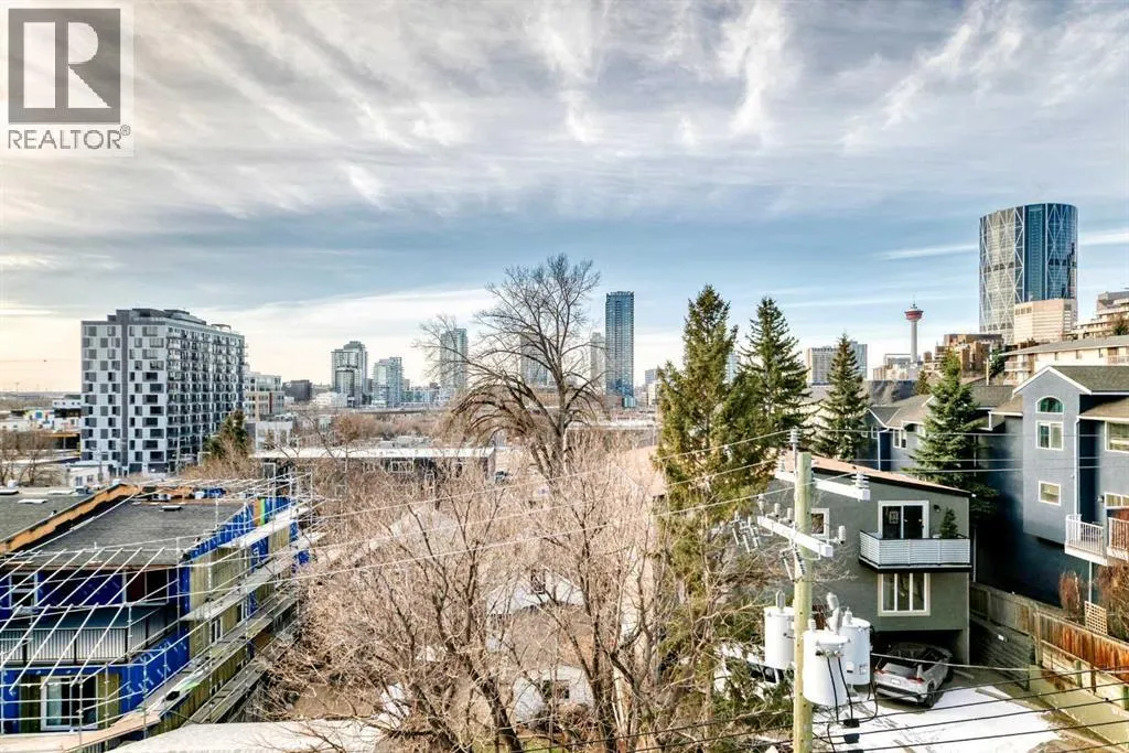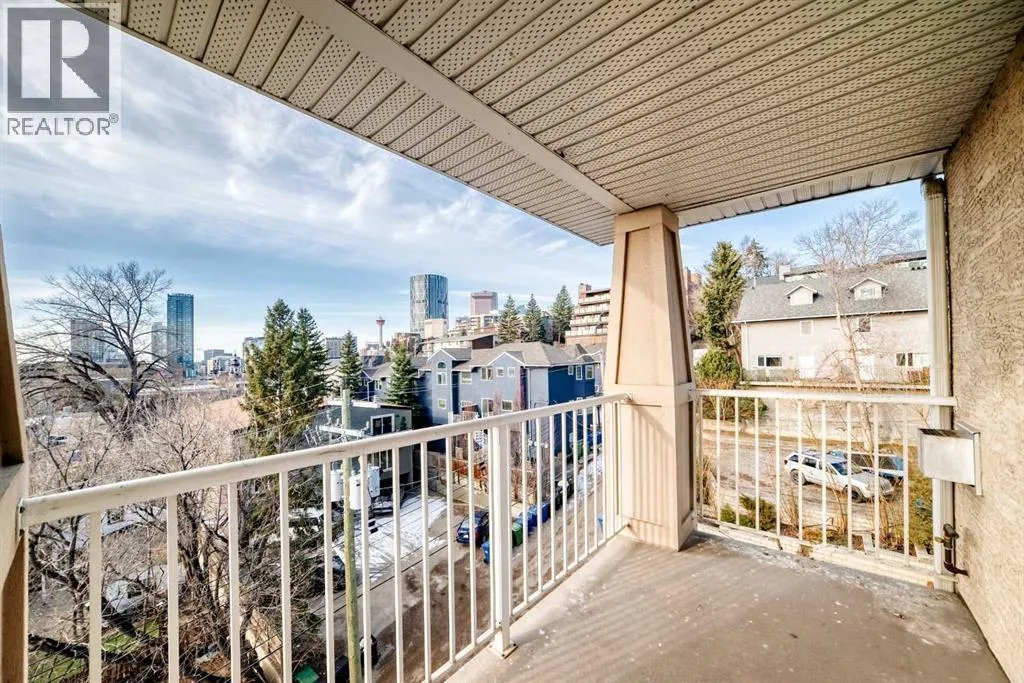 Corner unit inner city living with south views in sought after Crescent Heights with this spacious 2 bedroom, 2 full bathroom condo plus a large den, offering over 1,000 sq. ft. of corner unit space and titled underground parking. Perched on a quiet cul-de-sac, this bright unit showcases stunning, unobstructed views of downtown Calgary and the Bow River Valley, creating the perfect backdrop for everyday living. The open concept layout is ideal for both relaxing and entertaining, featuring a functional kitchen with a raised breakfast bar, ample cabinetry, and seamless flow into the generous dining area and cozy living room complete with a corner gas fireplace. Step outside to your south facing covered balcony perfect for year round enjoyment. The primary bedroom easily accommodates a king sized bed and includes a walk-through closet with built in shelving and a private 4 piece ensuite. The second bedroom, positioned on the opposite side of the unit for added privacy, is ideal for guests, roommates, or family. A second full 4 piece bathroom and in suite laundry add everyday convenience. A standout feature is the large den, perfect for a home office, gym, or additional storage adding versatility to the space. (id:27476)