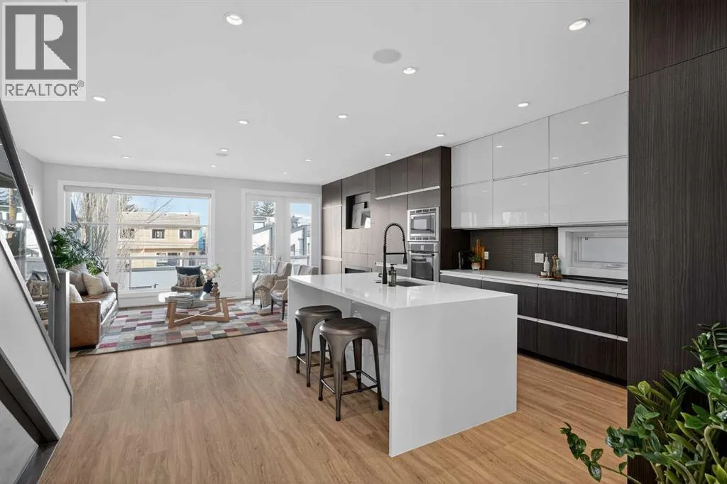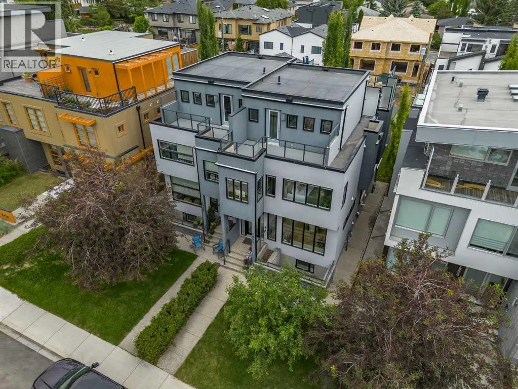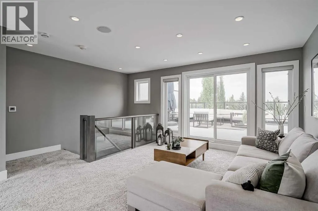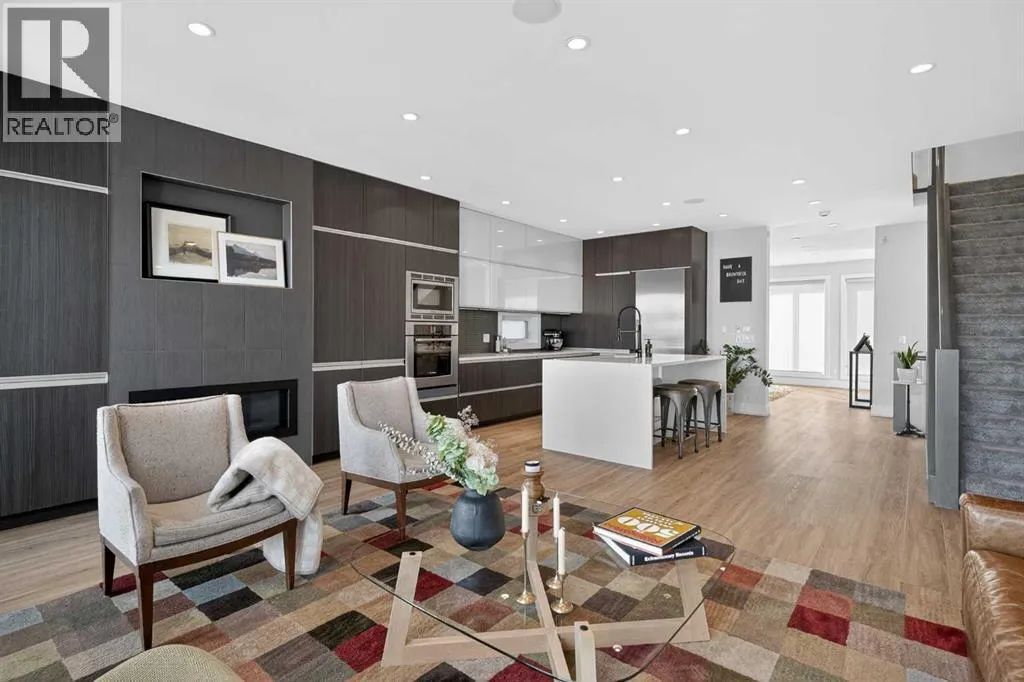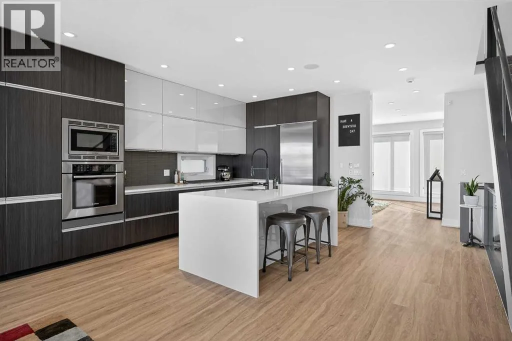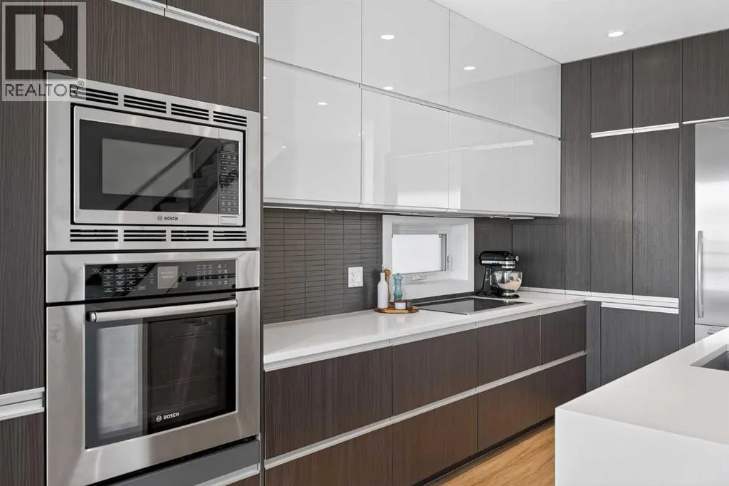 Step into sleek, modern luxury with this stunning custom-built home where crisp, clean lines and high-end finishes create a show-stopping impression inside and out. The main floor features a spectacular LVP floor throughout and an open-concept layout drenched in natural light from oversized, metal-clad windows.The chef-inspired European kitchen is a true centerpieceâcomplete with quartz countertops, a waterfall island, and premium Bosch & Miele appliances. Entertain in style, and donât miss the jaw-dropping 2-piece powder roomâguests will talk about it long after they leave! Upstairs, youâll find two spacious bedrooms, a full laundry room, and a breathtaking primary retreat.Wake up to panoramic city views from bed, then indulge in your spa-like ensuite featuring a double vanity, oversized jetted tub, custom steam & rain shower with body jets, and heated tile floors. A custom walk-in closet completes the dream. The third-floor bonus room offers an additional oasis with even more incredible city views and a sunny south-facing balconyâplus, yes, thereâs a bathroom on every level!The walkout basement is equally impressive, boasting in-floor heating beneath plush carpeting, a cozy fourth bedroom, a den, a beautifully finished storage area, and a rec room/TV area complete with a full barâperfect for game nights and movie marathons (id:27476)