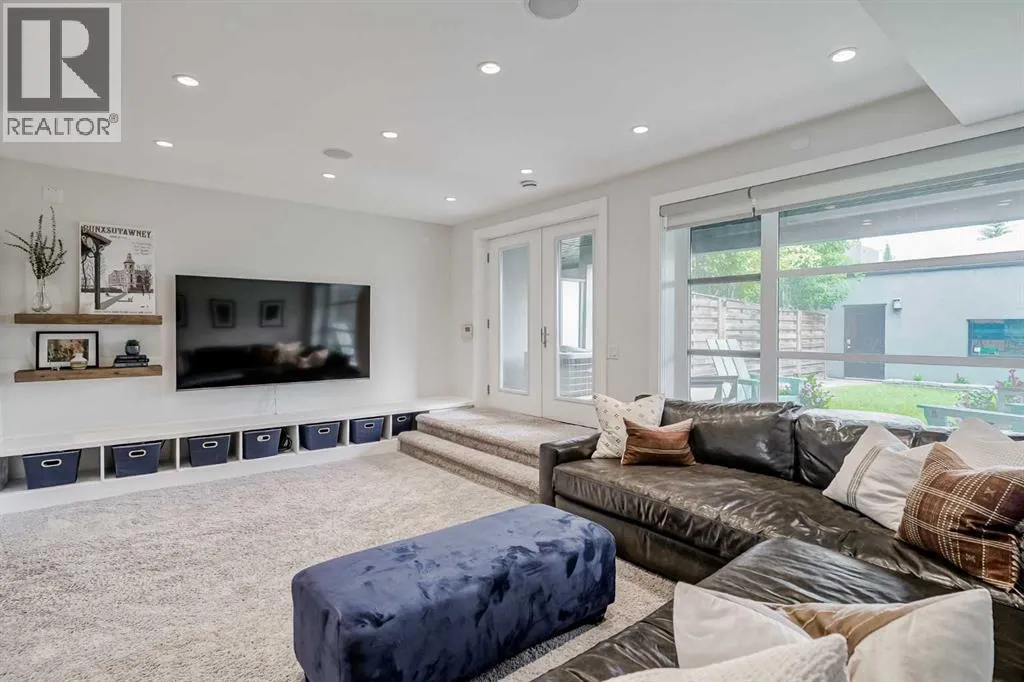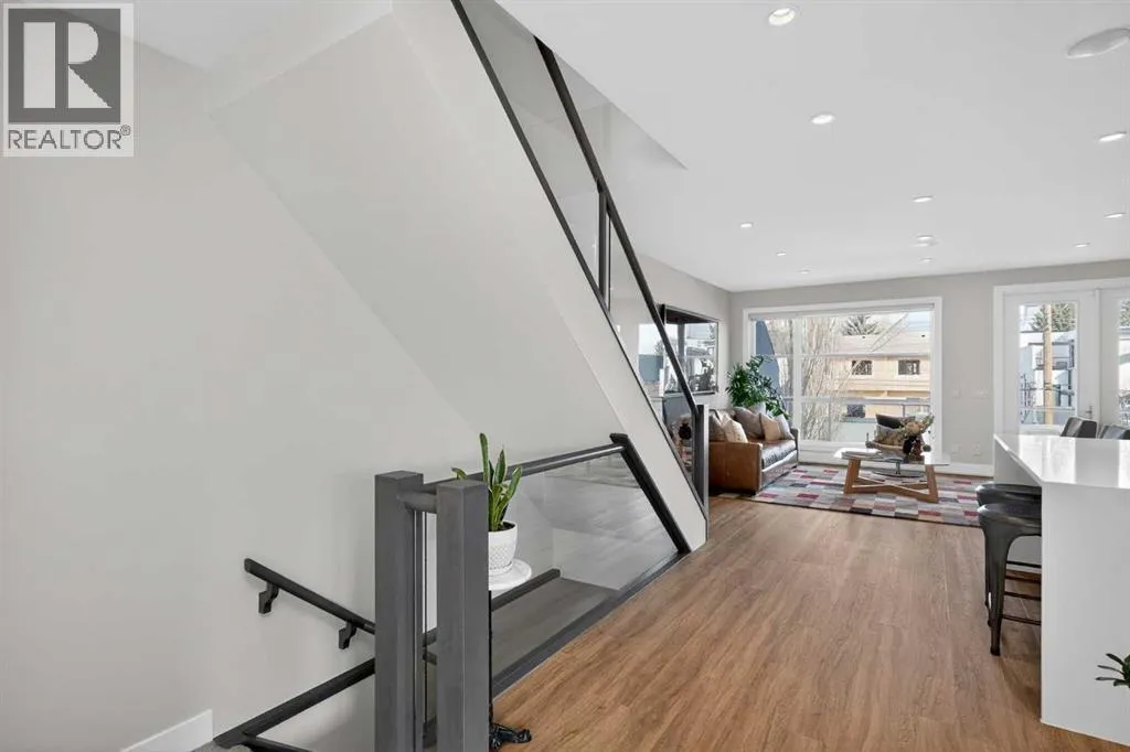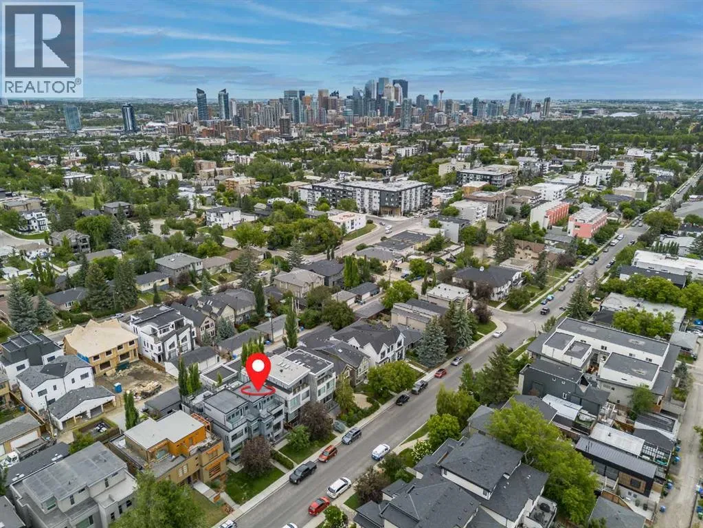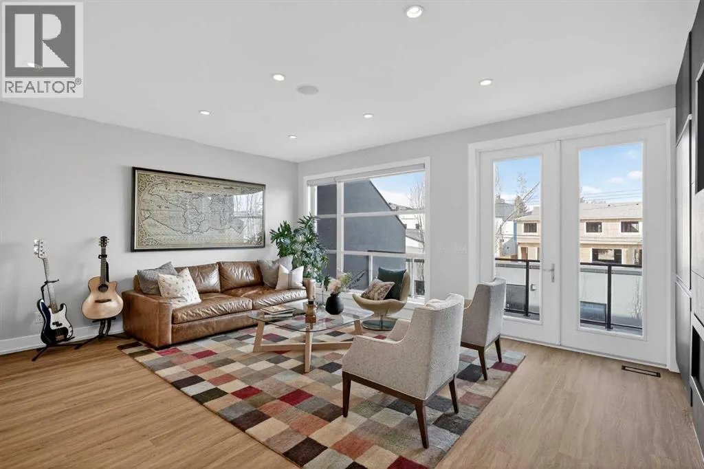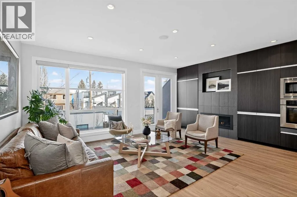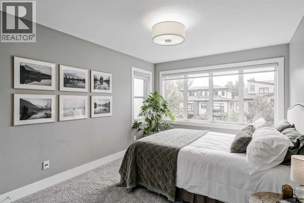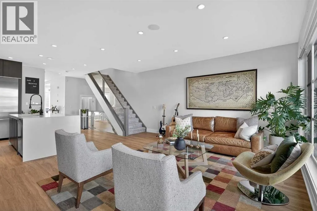 Step into sleek, modern luxury with this stunning custom-built home where crisp, clean lines and high-end finishes create a show-stopping impression inside and out. The main floor features a spectacular LVP floor throughout and an open-concept layout drenched in natural light from oversized, metal-clad windows.The chef-inspired European kitchen is a true centerpieceâcomplete with quartz countertops, a waterfall island, and premium Bosch & Miele appliances. Entertain in style, and donât miss the jaw-dropping 2-piece powder roomâguests will talk about it long after they leave! Upstairs, youâll find two spacious bedrooms, a full laundry room, and a breathtaking primary retreat.Wake up to panoramic city views from bed, then indulge in your spa-like ensuite featuring a double vanity, oversized jetted tub, custom steam & rain shower with body jets, and heated tile floors. A custom walk-in closet completes the dream. The third-floor bonus room offers an additional oasis with even more incredible city views and a sunny south-facing balconyâplus, yes, thereâs a bathroom on every level!The walkout basement is equally impressive, boasting in-floor heating beneath plush carpeting, a cozy fourth bedroom, a den, a beautifully finished storage area, and a rec room/TV area complete with a full barâperfect for game nights and movie marathons (id:27476)