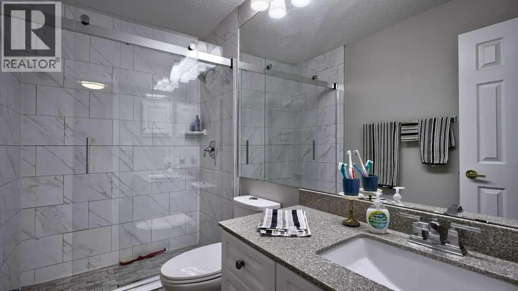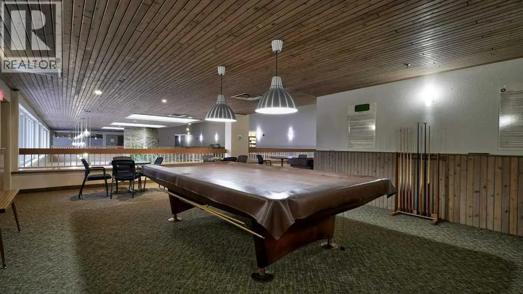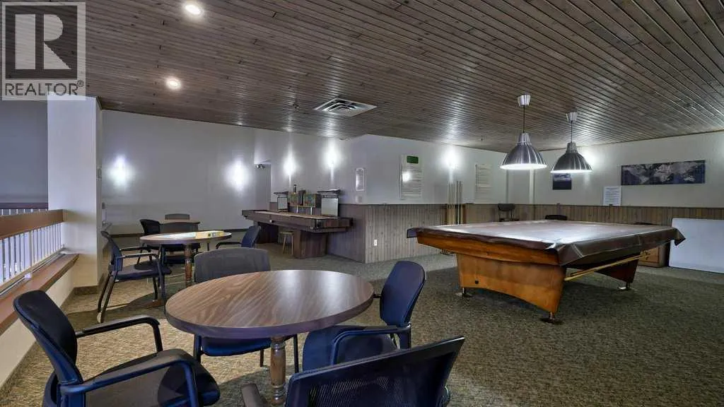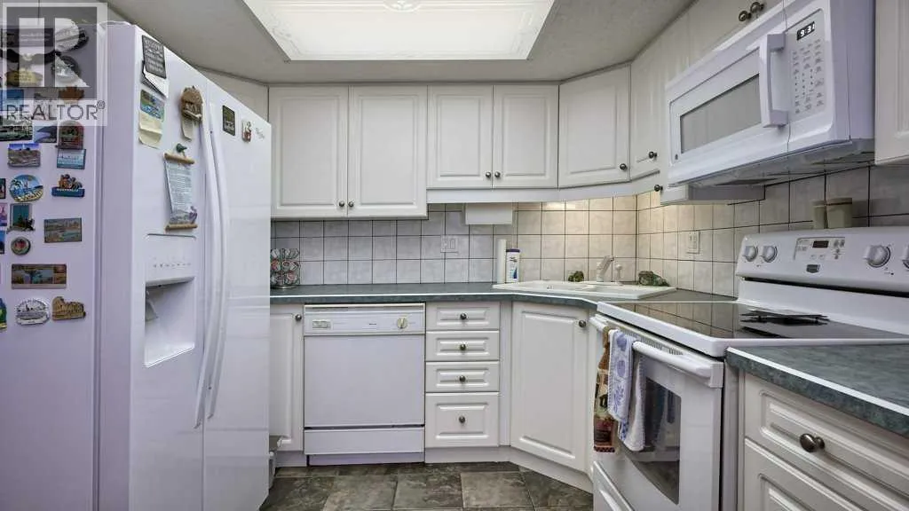 This top-floor, end-unit condo offers the ideal combination of space, privacy, and style. The spacious living and dining areas feature a cozy wood-burning fireplace with a gas log lighter, creating a warm and inviting atmosphere. Step outside onto the large deck, where you can relax and enjoy views of mature trees that provide extra privacy and tranquility. The kitchen is generously sized, perfect for preparing meals and hosting guests. Two well-appointed bedrooms include a master suite with a newly updated 3-piece ensuite. An additional 4-piece bathroom and a convenient in-suite laundry room complete the space. With updated laminate and tile flooring throughout, this condo offers a modern, fresh feel that's easy to maintain. The well-maintained building offers a range of excellent amenities, including a stunning lobby with a fireplace and sitting area, a fitness room with a sauna, a games room with shuffleboard and billiards, and a wonderful social lounge with a fully equipped kitchen and weekly coffee club. The library, meeting room, exterior sun deck, and lounge area provide even more opportunities to unwind and socialize. Additional perks include storage lockers and a very active volunteer group organizing social activities year-round. Bayshore Park is not only a great real estate investment but also a fantastic lifestyle choice. The professionally managed 25+ adult complex (no pets allowed) is nestled between Oakridge and Palliser, just steps away from the beautiful pathways at Glenmore Reservoir. You'll also find plenty of nearby amenities, including restaurants, medical offices, Co-op, Safeway, and more. Pick your possession date and move right inâthis one wonât last long! (id:27476)