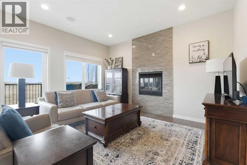 Imagine a home where your backyard opens to a vast, serene greenspace with future park plans. Tucked in a quiet cul-de-sac, 52 Walden Green SE is a modern sanctuary designed for both connection and focus.The main level features a private office with a door and a chefâs kitchen equipped with an extra-large island, gas cooktop, and in-wall oven. Relax by the floor-to-ceiling tile gas fireplace or enjoy the peaceful views from your house-width balcony.Upstairs, find a vaulted bonus room wired for soundâthe perfect spot for family movie nights. The primary suite is a true retreat with a 5-piece ensuite and a huge walk-in closet. Two additional large bedrooms share a clever bathroom with double sinks and a separate privacy door.The light-filled walk-out level offers incredible flexibility with its own separate entrance and lighted side walkway. This space includes a large bedroom, a den with a barn door, and a 3-piece bath with cozy in-floor heating. With rough-ins for a kitchen and second laundry, it is ideal for guests or multi-generational living.The landscaped backyard is designed for making memories, featuring a covered patio, a storage shed, and a dedicated BBQ pit for entertaining. Total living area: 3411 sq.ft. (id:27476)