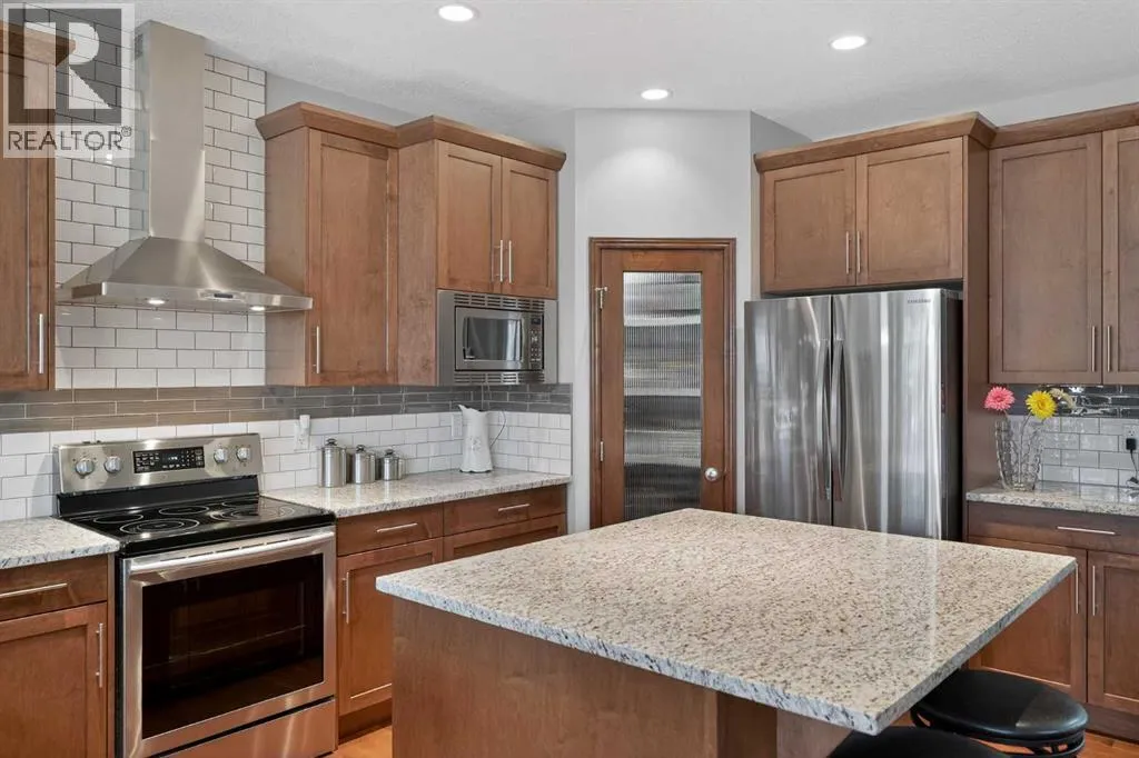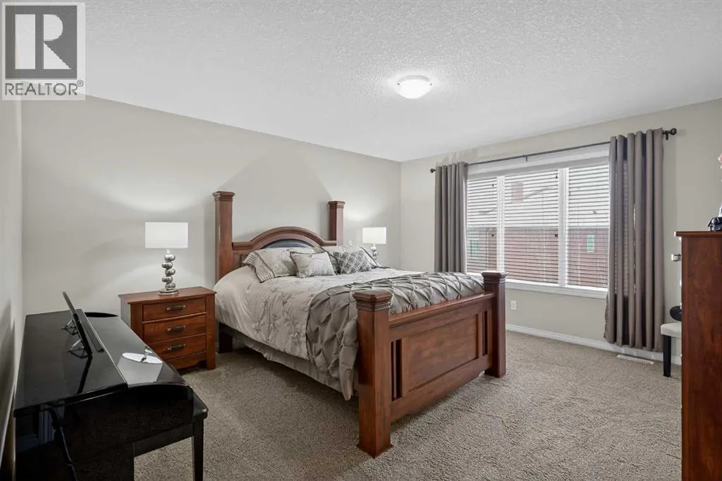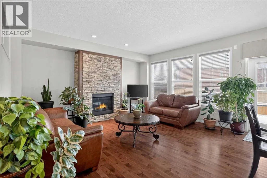 OPEN HOUSE SAT APRIL 4TH FROM 1-3!! Step into this stunning 2,300+ sq. ft. family masterpiece, perfectly situated in the heart of the award-winning community of Legacy. Designed with both sophistication and daily functionality in mind, this home offers a seamless blend of open-concept living and private retreats. The main level welcomes you with rich hardwood flooring and a dedicated den, perfect for a quiet home office or study. The heart of the home is the expansive living room, featuring a cozy fireplace anchored by a floor-to-ceiling stone detail. Chefâs will love the gourmet kitchen! Substantial granite-topped island for prep and casual dining. Premium built-in microwave and a walk-in pantry. A bright, oversized eating area with elegant French doors that lead directly to your spacious backyard deck. The journey continues upstairs to a massive bonus room, ideal for family movie nights. The layout includes: A luxurious Primary Suite with a spa-inspired 5-piece ensuite. Two additional generous bedrooms and a full 4-piece bath. The ultimate convenience of an upper-floor laundry room. The lower level is professionally finished, offering a large family room for entertaining, a fourth bedroom, and another full 4-piece bathroomâperfect for guests or teenagers. As an added bonus, Central Air-Conditioning to keep it comfortable in the summer months! Outside, the large backyard provides plenty of room for summer BBQs and play. The Location Advantage - You are steps away from the brand-new school and surrounded by Legacyâs famous parks and pathways. With the Township Shopping Centre just minutes away, you have world-class shops and restaurants right at your doorstep. This is the one youâve been waiting forâdonât miss out! (id:27476)