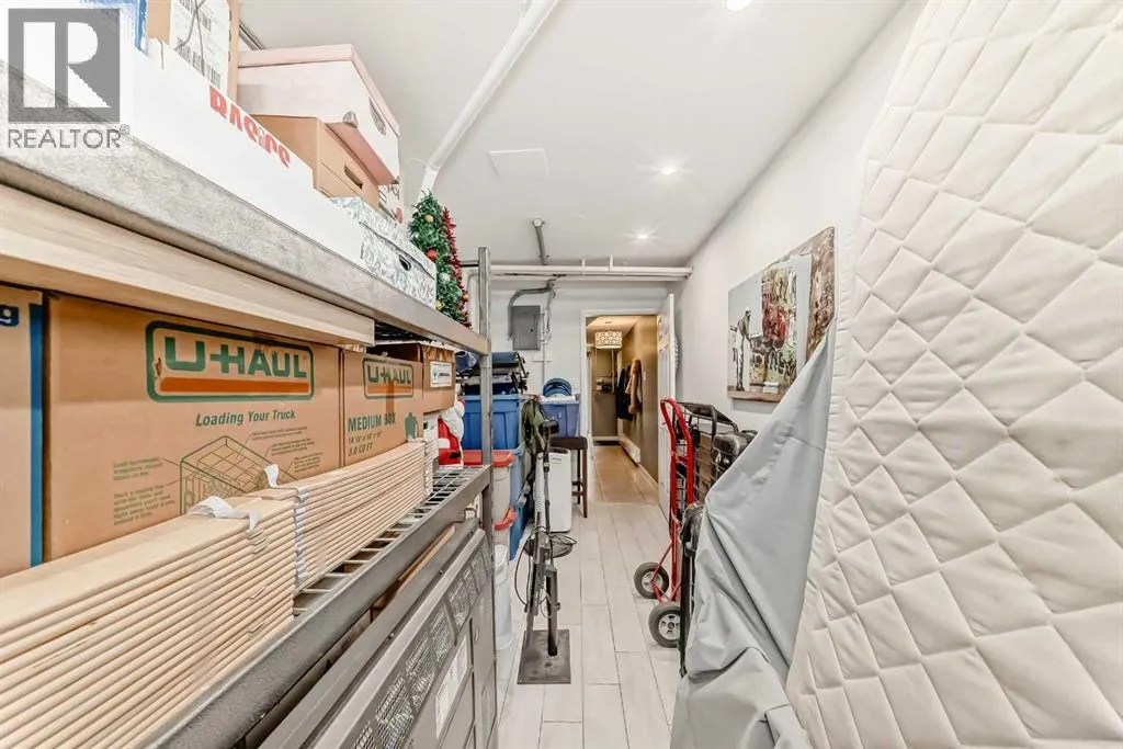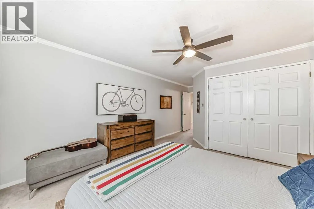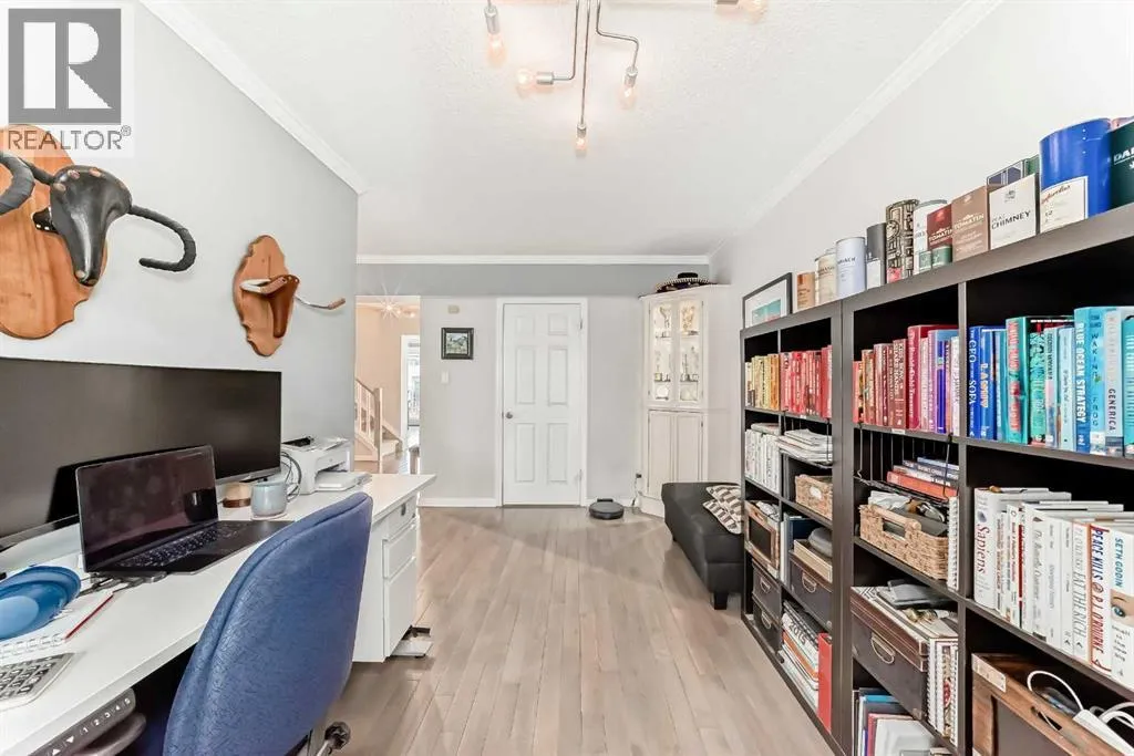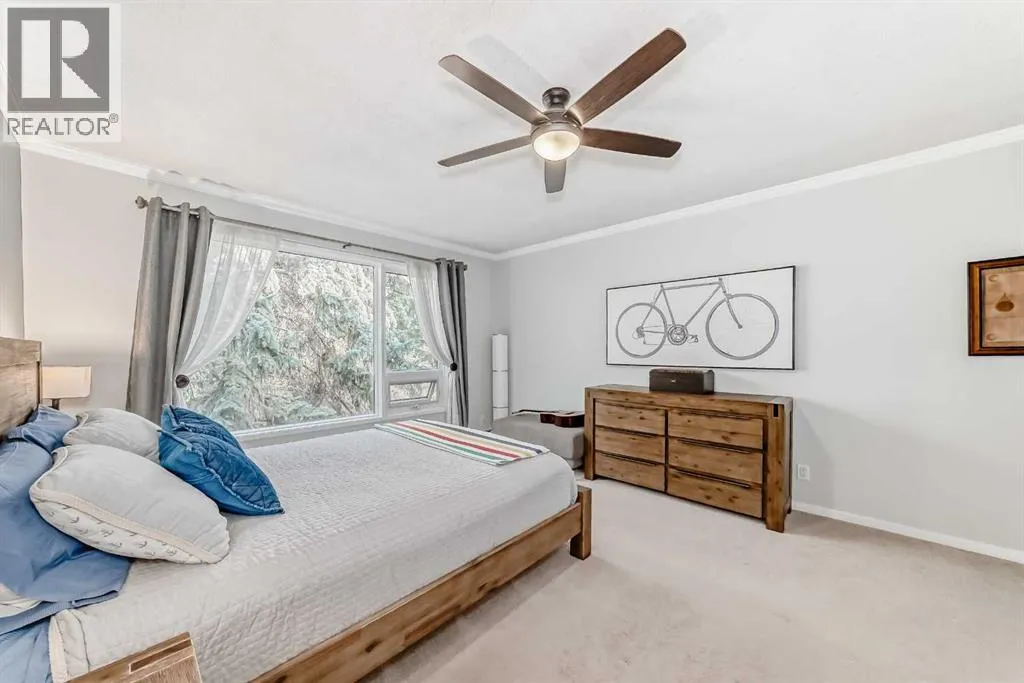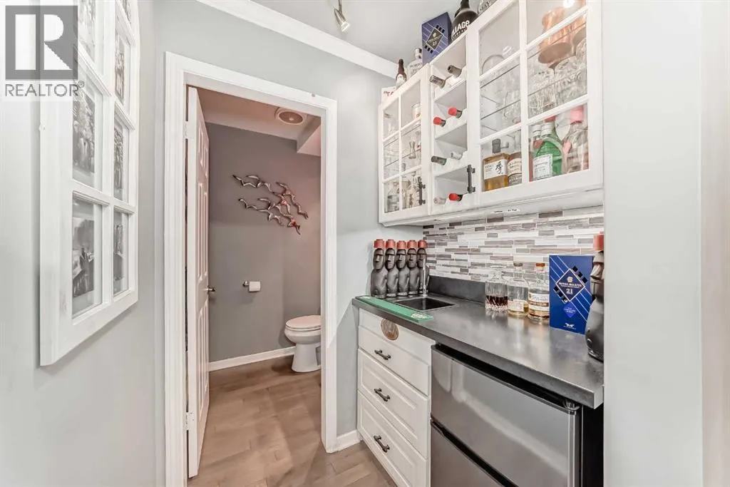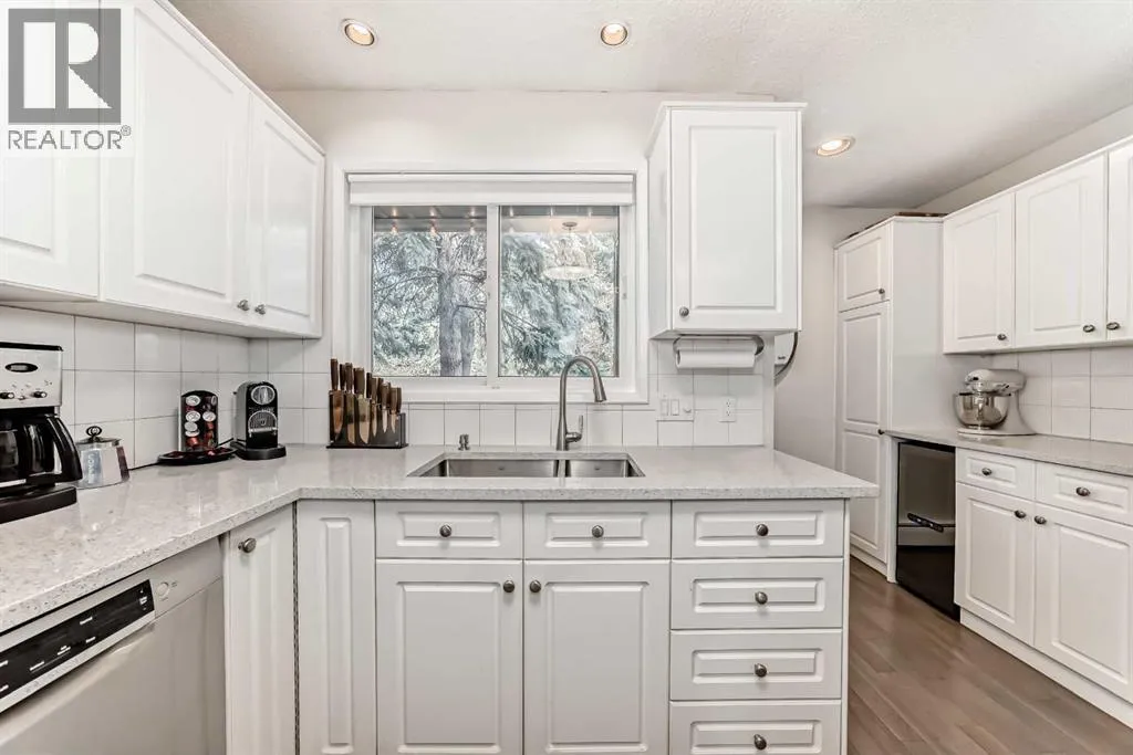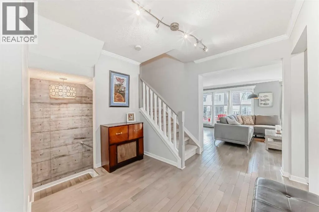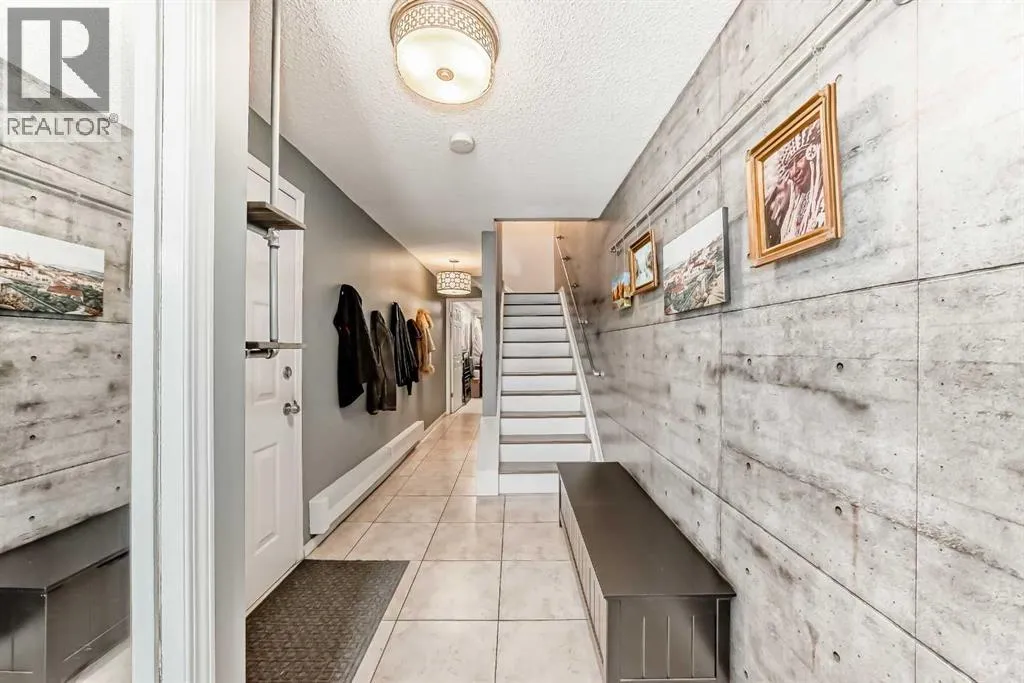 This distinctive two-storey townhome blends industrial-inspired design with thoughtful modern updates, offering both character and functionality in a quiet setting within the desirable community of Lakeview. The home welcomes you with a striking entryway featuring an authentic-looking concrete feature wall and custom pipe-fitting accents that double as a handrail and functional shelvingâsetting the tone for the homeâs unique style. The open-concept main floor seamlessly connects the kitchen, dining, and living spaces, highlighted by wide-plank flooring and crisp crown moulding that add warmth and continuity throughout. The kitchen was updated in 2025 with quartz countertops, a stainless-steel undermount sink, and a new dishwasher. Designed with entertaining in mind, the space includes a wine refrigerator in the kitchen along with a second at the nearby wet barâperfect for hosting. A stylish half bath on the main level adds convenience for guests. Beyond the aesthetics, the home has also been improved for everyday comfort. New doors and windows with custom blinds provide energy efficiency and privacy, while dimmer switches throughout allow for adjustable lighting and ambiance. The buildingâs concrete party wall construction offers a near sound-proof barrier between neighbours. The upper level features four bedrooms and two full bathrooms, providing excellent flexibility for families, guests, or home office space. The primary bedroom includes a private, full ensuite bath, while built-in cabinetry in closets throughout the upper floor maximizes organization and storage. One of the spacious secondary bedrooms is currently used as a music studio with professional acoustic panelling, demonstrating the versatility of the floor plan for creative work or a quiet home office. A dedicated laundry room on this level includes a stacked washer and dryer, wood-toned folding counters, and custom wire-basket storage. With almost 2,000 square feet of above-grade living space, the hom e feels spacious and functional across both levels. The front balcony was just replaced, adding to the homeâs long-term durability and outdoor enjoyment. Outdoor living also extends to the expansive back deck, shaded by mature evergreens and overlooking a large common green space, creating a peaceful connection to the surrounding landscape. Practical needs are met by the oversized two-car tandem garage, complete with a built-in storage cabinets. Condo living here is exceptionally convenient, with condo fees covering most utilities, simplifying monthly budgeting and ownership. Located close to parks, pathways, schools, and shoppingâwith quick access to the recreation and pathways around Glenmore Reservoirâthis home offers a unique blend of design, space, and lifestyle in one of Calgaryâs most established west-side communities. (id:27476)