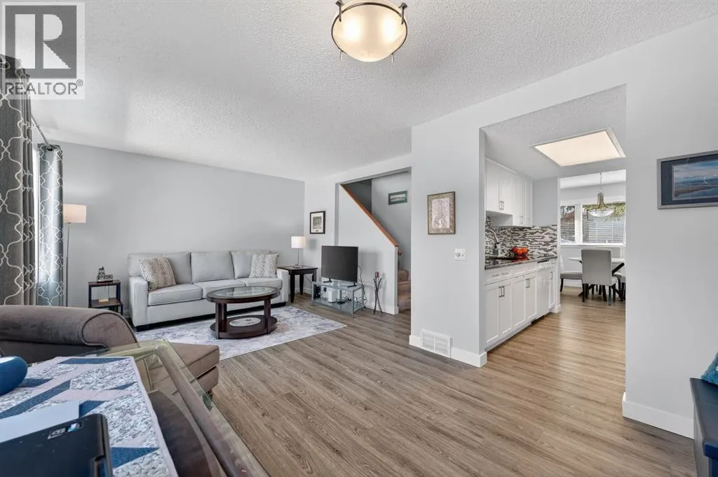Beautifully maintained 3-bedroom, 1.5-bathroom townhome located in the desirable community of Palliser. This bright and functional home features newer front windows, luxury vinyl plank flooring, and updated paint throughout. The main floor offers a spacious living and dining area, along with an updated kitchen complete with granite countertops, tile backsplash, updated cabinetry, sink, and appliances, including fridge (2024) and dishwasher (2019). A renovated 2-piece powder room completes the main level.The upper level boasts three generously sized bedrooms, including an oversized primary bedroom with ample space for a king-sized bed, and a fully updated 4-piece bathroom featuring a tub and tiled shower.The finished walkout basement provides additional living space and includes a laundry area with newer washer and dryer (2023) and a laundry sink in the utility room.Enjoy the fenced backyard with a private patio backing onto a green space/park. Assigned parking stall is conveniently located directly in front of the unit, with additional visitor parking available.Well-managed complex situated close to schools, parks, shopping, and public transit, with quick access to Stoney Trail and nearby Taza Park. Ideal opportunity for first-time buyers, downsizers, or investors. (id:27476)
