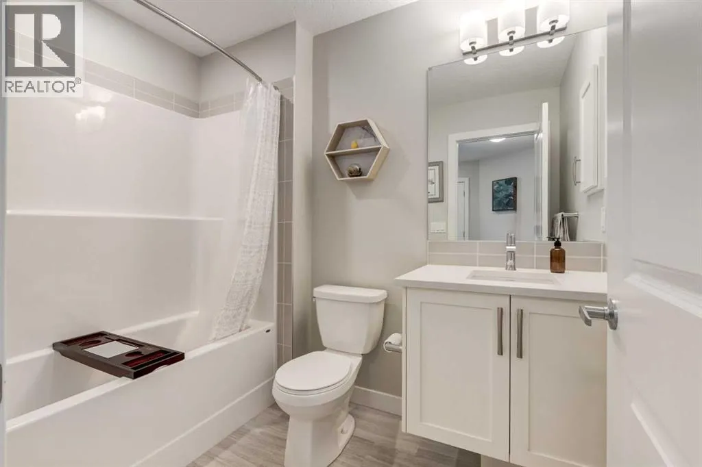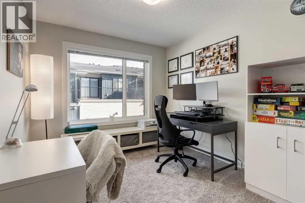 Welcome to 212 Crestbrook Common SW, a bright and beautifully finished two storey townhome offering 3 bedrooms, 4 bathrooms and a fully developed basement. With nearly 2,100 square feet of thoughtfully designed living space, a double attached garage and air conditioning, this home is ideal for buyers seeking stylish, low maintenance living in the established community of Crestmont. Step inside to a welcoming front foyer with a well appointed closet and be immediately drawn into the open concept living, dining, and kitchen area. High ceilings, large windows, and an airy layout create a warm and inviting atmosphere that is perfect for everyday living and entertaining. The kitchen is both beautiful and functional, featuring stainless steel appliances, quartz countertops, a sleek backsplash, and luxury vinyl plank flooring that flows seamlessly throughout this level. A discreetly tucked away 2 piece powder room adds convenience. Just a few steps up, a practical landing connects directly to the double attached garage, making coming and going effortless, especially during Calgary winters. The upper level offers a versatile den or flex space, currently styled as a cozy reading nook. The primary bedroom is a true retreat, complete with a walk in closet and spa inspired 4-piece ensuite. Step outside to your private west facing enclosed balcony, the perfect spot to enjoy summer evenings and take in stunning sunsets! Two additional bedrooms are located at the opposite end of the upper floor, each with generous windows and closets, and are serviced by another 4-piece bathroom. A convenient upper level laundry closet with extra storage completes this level. Downstairs, the fully developed basement provides an inviting recreation and media space, ideal for movie nights, a home gym, or a playroom. A 3-piece bathroom adds flexibility, and the basement has been thoughtfully designed to allow for easy conversion into a fourth bedroom (if desired), with proper detector placement, alig ned framing, and additional wiring already in place. Outside, visitor parking is close by, making it easy when friends and family come visit. Exceptionally well maintained and cared for, this home offers an unbeatable lifestyle with low maintenance living just steps from pathways, parks, and Crestmontâs local amenities. Enjoy mountain views throughout the neighbourhood and quick access to shopping, recreation, golf, farmerâs markets, and endless walking and biking trails. Welcome to a home that perfectly balances comfort, convenience, and connection to nature! (id:27476)