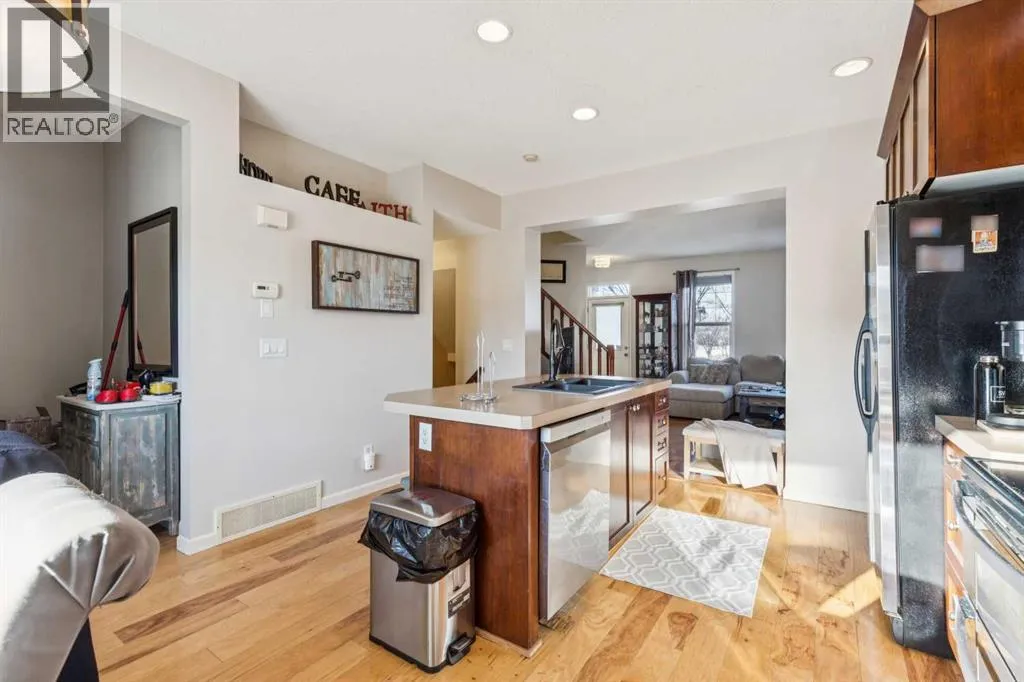 Welcome to this beautifully appointed 3-bedroom townhouse, ideally located on a picturesque, tree-lined street. Perfectly positioned directly across from a large childrenâs park and adjacent to a church, this home offers an exceptional setting for families and those seeking a strong sense of community. With a bus stop right out front and just a 15-minute walk to the grocery store and all the amenities of McKenzie Towne, convenience is truly at your doorstep.The main level features a warm and inviting layout with rich pecan flooring. The well-designed kitchen showcases full-height shaker-style cabinetry with elegant cove moulding, a functional island with seating, a dedicated dining area, and a fridge with water and ice. A newer LG dishwasher adds everyday convenience. The cozy living room is anchored by a charming corner fireplace, creating the perfect space to relax or entertain.Upstairs, youâll find a versatile computer or flex space, along with two generously sized primary bedroomsâeach complete with its own private ensuite, offering ideal separation for roommates, guests, or family members. The fully developed lower level expands your living space with a third bedroom or recreation room, a full 4-piece ensuite, closet, and additional storageâperfect for guests or a private retreat.Additional highlights include a washer and dryer (2024), central vacuum system, portable A/C unit with remote, and blackout window coverings throughout. Step outside to enjoy your private fenced backyard, complete with a patio set and gas BBQ hookupâperfect for summer evenings. A detached double garage with built-in shelving adds both convenience and storage.As part of a well-managed condo, even your backyard lawn care is taken care ofâoffering low-maintenance living without sacrificing outdoor space. (id:27476)