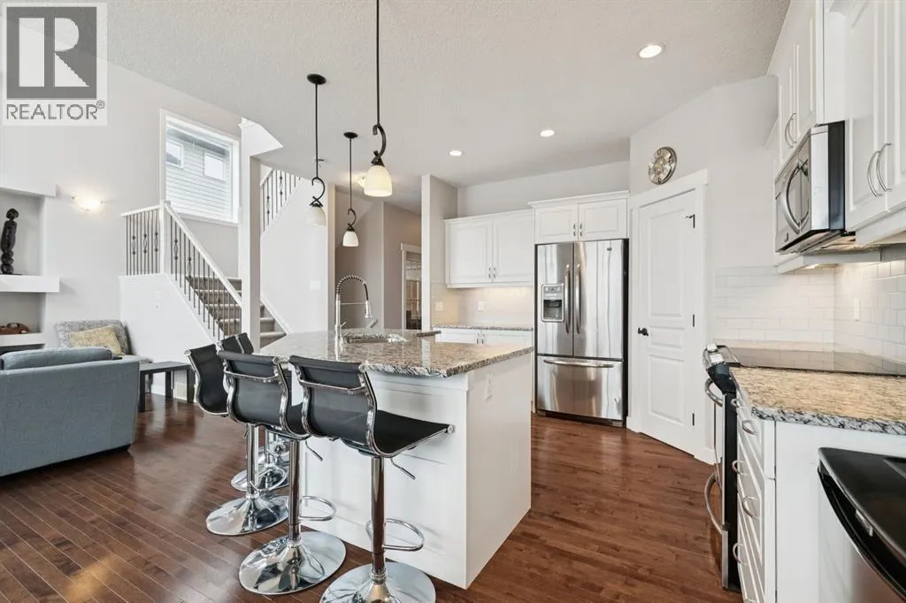 Welcome to this BEAUTIFUL and BRIGHT home backing directly onto a serene pond and walking pathways â a truly special setting youâll enjoy year-round.Featuring LARGE UPGRADED WINDOWS throughout, this home is filled with natural light and showcases the stunning views from nearly every level. The open-concept main floor offers a functional layout with MAIN FLOOR LAUNDRY, a spacious kitchen with a LARGE ISLAND with Granite countertops, , and seamless flow into the dining and living areas â perfect for both everyday living and entertaining.The impressive living room features an OPEN-TO-ABOVE CEILING, a cozy FIREPLACE, and custom BUILT-IN FEATURES that add both style and function.Upstairs youâll find a LOFT-STYLE BONUS ROOM, two well-sized bedrooms, a full bathroom, and a LARGE PRIMARY RETREAT complete with a BEAUTIFUL ENSUITE and WALK-IN CLOSET.The WALKOUT BASEMENT offers a HUGE SPACE with partial flooring already completed â ready for you to finish and customize to your needs.Step outside and take in the GORGEOUS POND and natural surroundings right in your backyard â offering privacy, tranquility, and direct access to walking paths.This is a rare opportunity to own a home with both space and an unbeatable location. (id:27476)