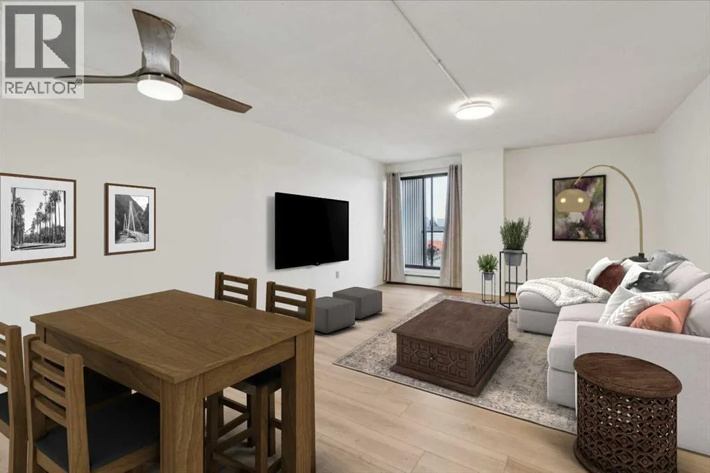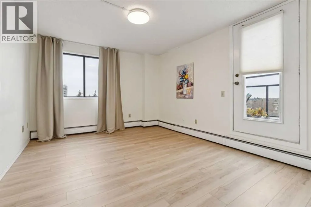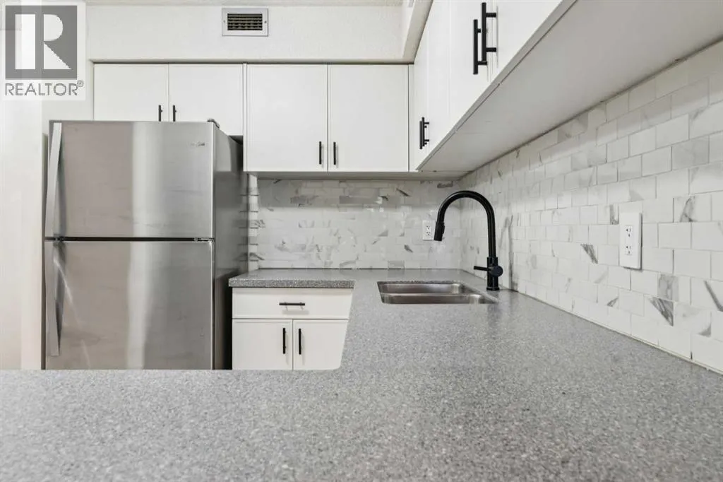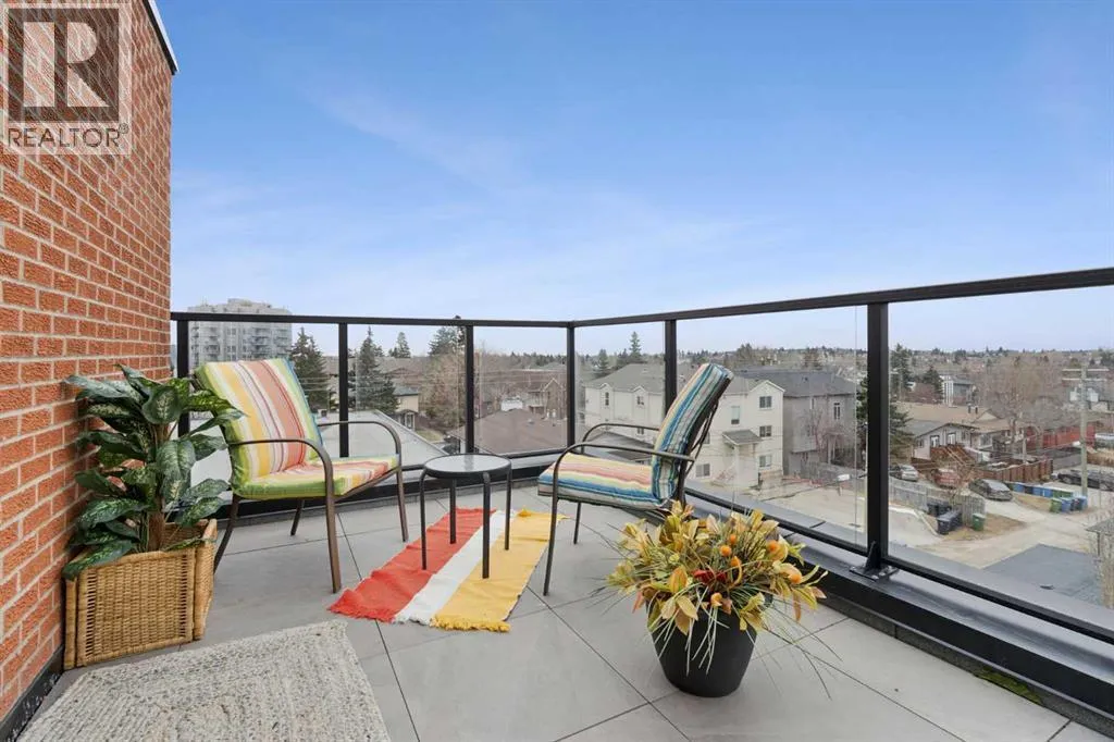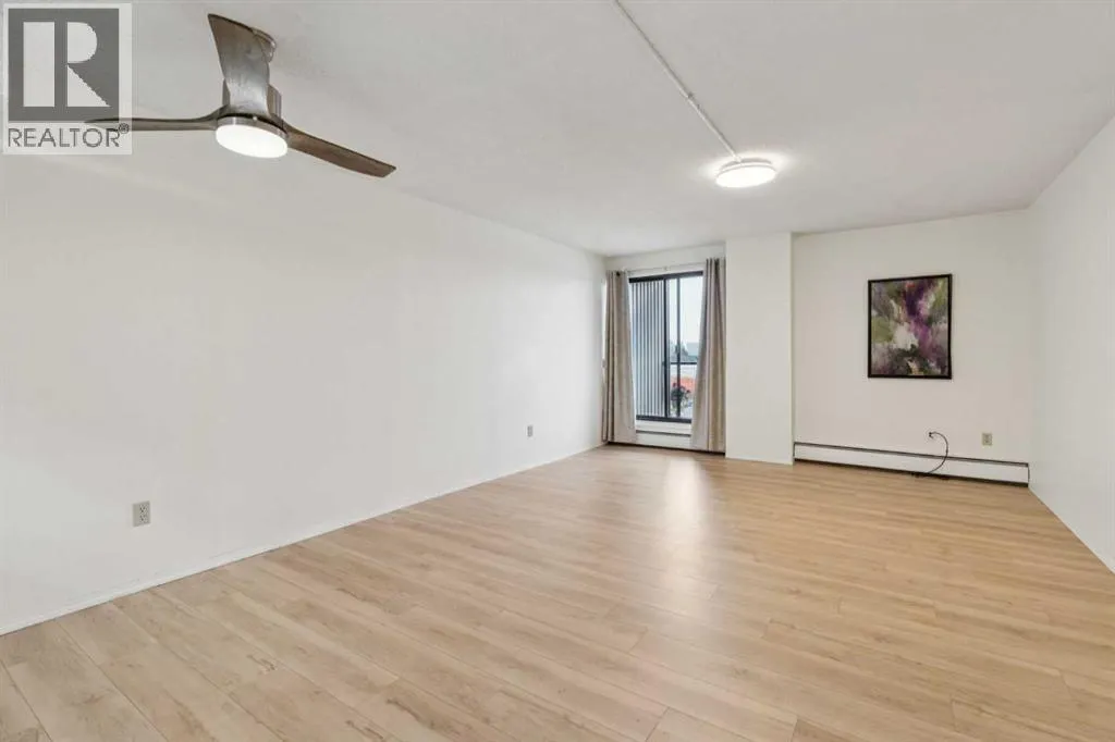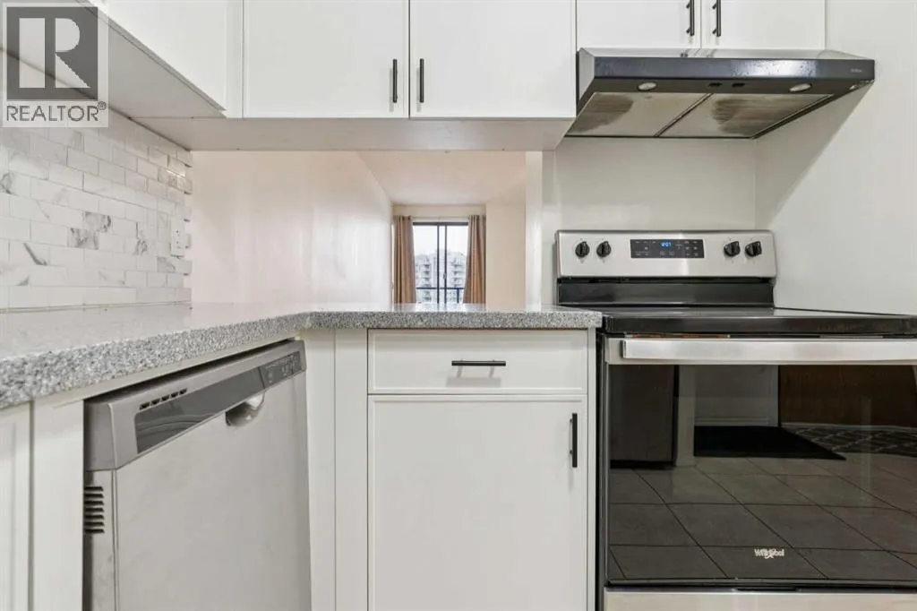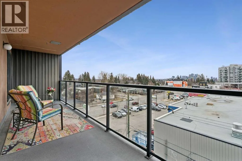 This is a large 2-bedroom, 1 bathroom, 860 SQ foot, 5th floor CORNER UNIT condo, in a concrete building, just off trendy 17th Avenue, but far enough away to enjoy the tranquility of what the Killarney community has to offer. From the TWO PRIVATE BALCONIES you will get a great look at the downtown skyline and from the other, a panoramic south view as far as the eye can see ! Between the two there is about 300 square feet of patio, with one of them catching the Calgary sunshine all day. Recently updated with a brand-new kitchen, including new cupboards, counter tops, and new S/S appliances, the 4-piece bathroom also had an impressive re-fresh, and there is new Luxury Vinyl plank flooring throughout the entire space! You will appreciate how spacious each of the bedrooms are, as they will fit virtually any size bed and bedroom furniture! The living room/ dining area are open to the kitchen and can accommodate a full-size dining table and still give you lots of options of how to place your furniture! No need to downsize in this space, in fact you may want to go buy a bigger couch ! The IN-SUITE LAUNDRY area features a full-size stackable washer & dryer and is conveniently tucked away at the end of the hallway. With only 6 floors, there will be virtually no waiting for the two elevators to take you up to your corner unit, access to the 7th floor ROOF TOP PATIO, or down to your HEATED & SECURED UNDERGROUND PARKING STALL. And if you have a special furry friend, they are most welcome with board approval. The condo fees cover heat & water, your will only need to pay for electricity ! Killarney is a wonderful community home to walking & bike pathways, parks, a community garden, outdoor courts, the Killarney pool, skating rinks, shopping, transit, and dog parks, all within walking distance ! Also close by is the Shaganappi golf course, the C-train, trendy restaurants, coffee shops, yoga studios, and more ! With easy access to Crowchild trail and Westbrook mall, you wonât have to travel far for anything ! This is inner city living without all the problems of being downtown. Wheelchair access at the front will make moving in a breeze, so what are you waiting for? Call your favorite Realtor® and come see this one soon ! (id:27476)