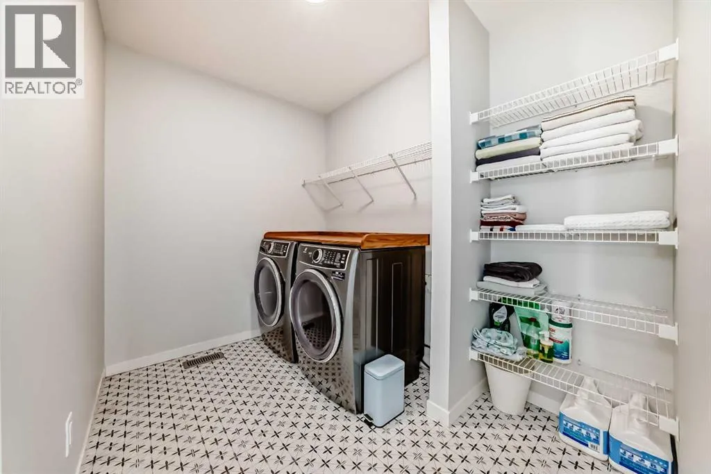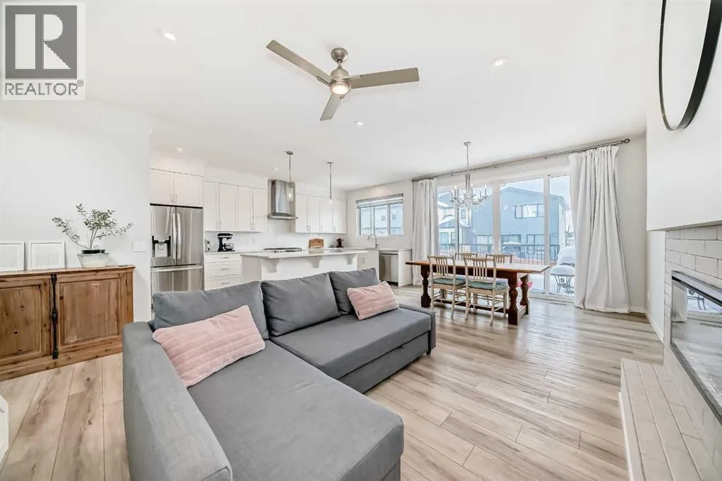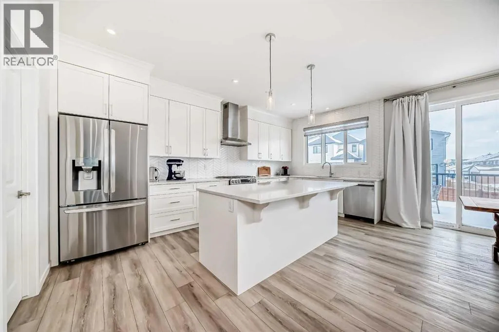 Welcome to this custom-built masterpiece by Cedarglen Homes, perfectly situated on a beautifully landscaped lot with no neighbors to the South in the prestigious, award-winning community of Rockland Park. From the moment you arrive, the exceptional curb appeal, oversized garage, and thoughtful upgrades make a lasting impression. The sun-drenched main floor offers a spacious open-concept layout featuring luxury vinyl plank flooring, a dedicated flex space perfect for a home office, and a true walk-in pantry for ultimate convenience. The living and dining areas, anchored by a sleek electric fireplace, flow seamlessly into the chef-inspired kitchen which boasts a massive central island, upgraded appliances, a touch faucet, and stunning design details.Step outside through elegant California sliding doors to a show-stopping, oversized deck complete with a gas line and privacy wallâperfect for southeast-facing summer entertaining. Upstairs, the home continues to impress with a versatile bonus room, convenient upper-level laundry, and four generous bedrooms. The luxurious primary suite is a true retreat, featuring a massive walk-in closet and a deluxe ensuite with heated floors, dual vanities, a deep soaker tub, and a separate water closet.The lifestyle here is second to none as an award-winning, master-planned community. Future development plans include a new school and a vibrant commercial center right within the community, ensuring long-term value and convenience. You are already just a short walk from the incredible resident-only recreation center, pool, and zipline park. Plus, youâll enjoy unparalleled access to nearby amenities including Costco, Home Depot, and a wide array of shops and restaurants. With easy access to Stoney Trail and Highway 1, this property truly offers the perfect balance of lifestyle, luxury, and location. (id:27476)