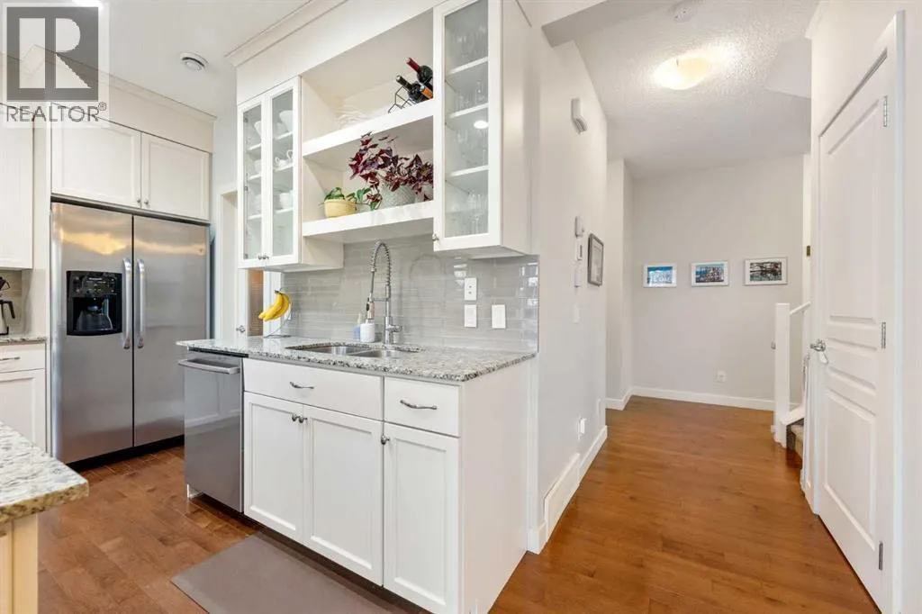 OPEN HOUSES on Saturday March 28th & Sunday March 29th from 1-4 PM! WOW! This home is immaculate and ready for a new family to love it as much as the current one has! As you enter you are greeted with gleaming hardwood flooring that runs throughout most of the main floor and as you make your way through to the living areas you will love the generous dining area with sliding doors to the back yard and drenched in natural light! The living ALSO has wall to wall patio doors to let in ALL the light as well as a cozy gas fireplace and plenty of room for your furniture! The kitchen is awesome - featuring a gas stove, beautiful white cabinetry, a large functional island with a bench, granite countertops, walk through pantry, tiled backsplash and pot lights! The main floor is completed with a half bathroom and a mudroom with storage locker style storage. Let's make our way upstairs and check out the large bonus room, a primary bedroom with a full ensuite bathroom and a walk in closet! There is also 2 additional bedrooms, another full bathroom AND the laundry room! The basement is completed as well and it has a 4th bedroom, large rec room for the kids and another bathroom! Plenty of storage everywhere, a wonderful yard space with a deck AND a patio, a location that can't be beat that is right across from a school, playground and transit! The LAKE is just a short 10 min walk down the street and you are also just minutes away from the hospital, YMCA, Theatre, off leash dog parks, a multitude of restaurants, shops, bars and so much more! Come and check out your new home today! (id:27476)