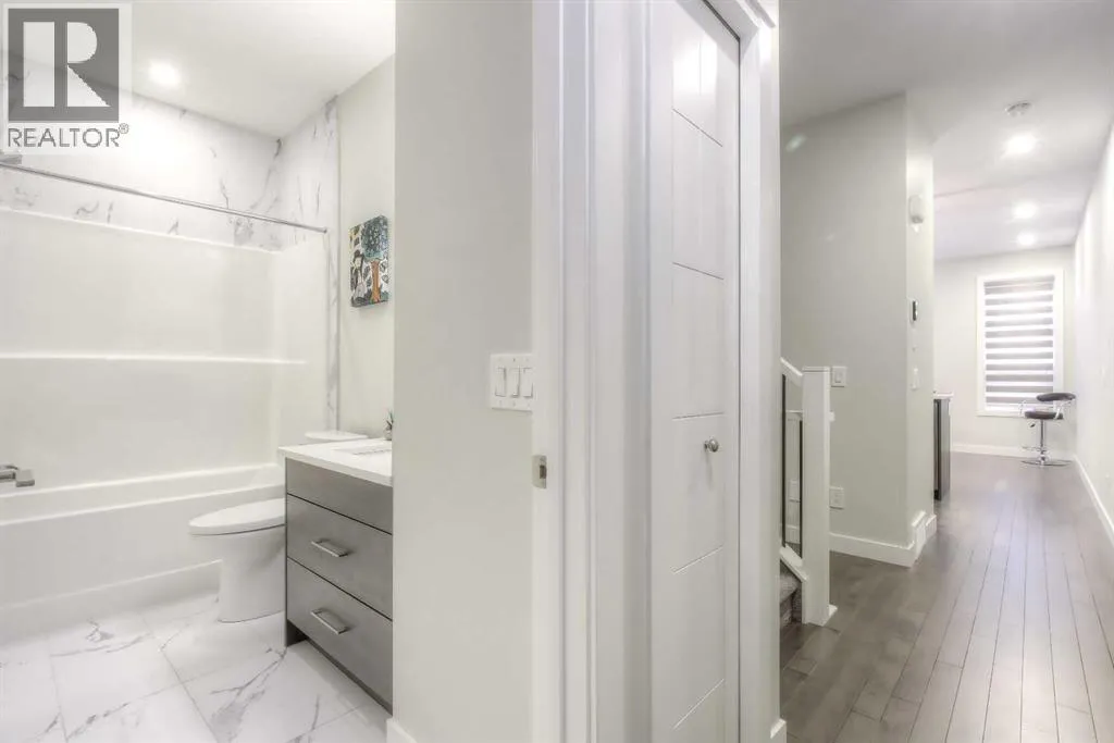 **Price Improvement!** Welcome to the spacious townhouse in the heart of Marda Loop, offering over 1681 ft.² of above grade living and an unbeatable inner city location! The functional multi level layout offers, bright, open, living spaces with large windows and well designed spaces! This townhouse features 2 double master bedrooms, each with its own ensuite bath. 3rd bedroom on the 2nd level set us as an office or a guest room, and a additional 4th bedroom in the basement with its own bathroom. A townhouse suitable for work at home lifestyle. A massive standout feature is the HUGE Rooftop patio for your private party and sun bathing in the warm summer days! The entire unit is air conditioned. Upgraded lightning throughout, High quality stainless appliances, quartz countertops, hardwood floors, and much more. Oversized single attached garage for your car and motorcycle, 9 foot ceilings. You are walking distance to all amenities, schools, Marda Loop shopping district, variety of restaurants, parks etc. Truly a fantastic townhouse in a great location! Don't miss this one! Current tenant is paying $3,500 for rent monthly. Call for more info! (id:27476)