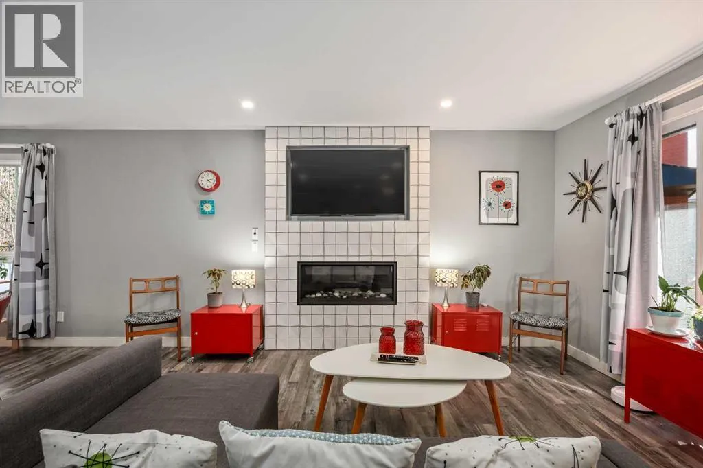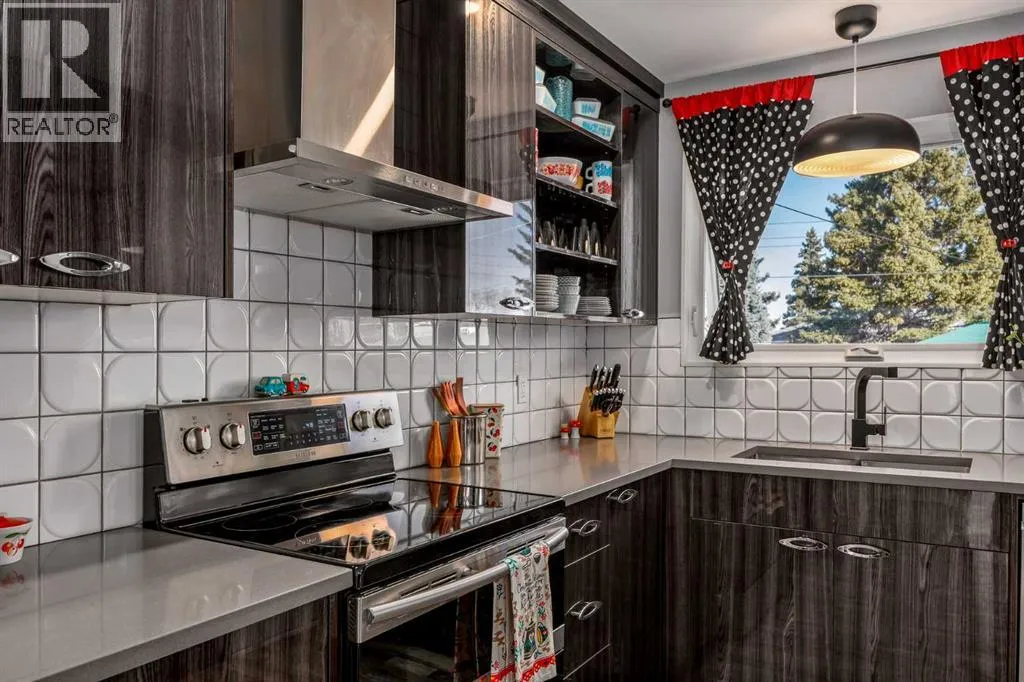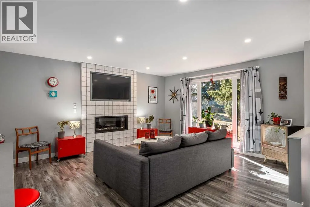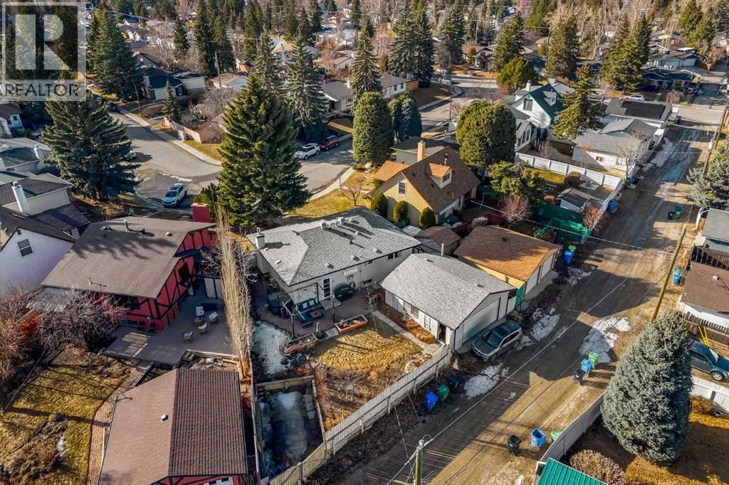 Welcome to this meticulously maintained and upgraded bungalow tucked away on a quiet crescent in the established SW community of Cedarbrae. Showcasing timeless mid-century modern character alongside thoughtful and fitting upgrades, this home offers a unique blend of style, comfort and functionality.Set on an expansive pie-shaped lot, the eco-landscaped backyard is a true retreat. Garden enthusiasts will love the native fruit trees, berry patches, perennial salad greens and pollinator attracting flowers that bloom from April to October. Among others, youâll enjoy pear and apple trees, raspberries, strawberries, and saskatoon berries. This is truly a private, low-maintenance and colourful oasis. A pergola and hot tub complete the space, perfect for relaxing or entertaining.Inside, the main floor has been extensively updated while preserving its inviting mid-century feel. The fully renovated kitchen with custom cabinetry, quartz countertops and waterfall island, updated vinyl plank flooring, fresh paint and curated finishes create a bright, cohesive living space. Large triple-pane windows flood the home with natural light while enhancing energy efficiency.This well-designed bungalow offers 4 bedrooms and 2.5 bathrooms, providing flexible options for families, guests and a home office. Additional notable upgrades include newer roofing, enhanced attic insulation and venting, triple-pane windows, updated soffits, fascia and downspouts, plus a freshly painted exterior accented by bold red front and back doors. A detached double heated garage and RV parking provide plenty of room for vehicles, storage and hobbies.Located in one of Calgaryâs most established southwest communities, Cedarbrae offers convenient access to major routes including Stoney Trail, parks, pathways, dog parks and recreation facilities.This mid-century inspired gem stands out for its character and care, move-in ready and waiting for its next chapter. Book your private tour today! (id:27476)