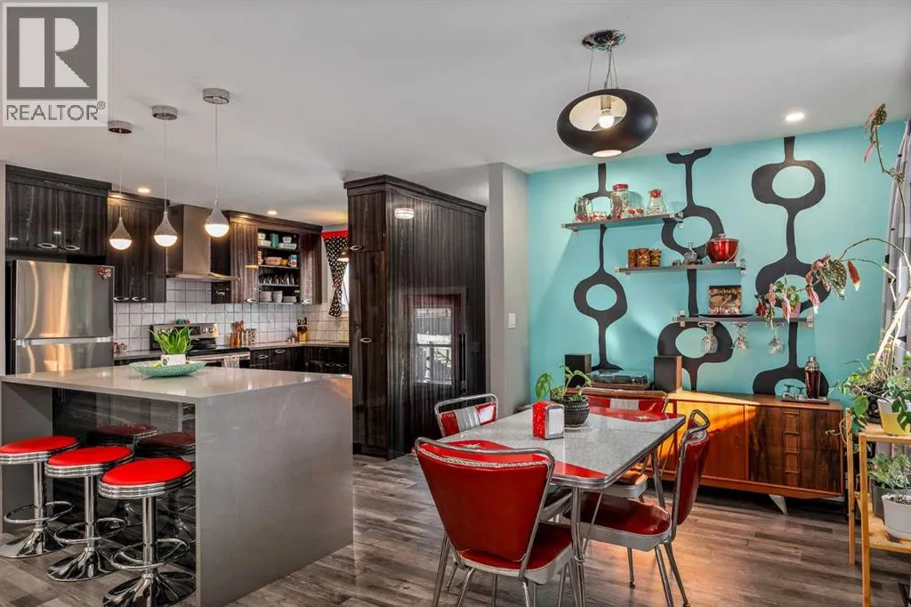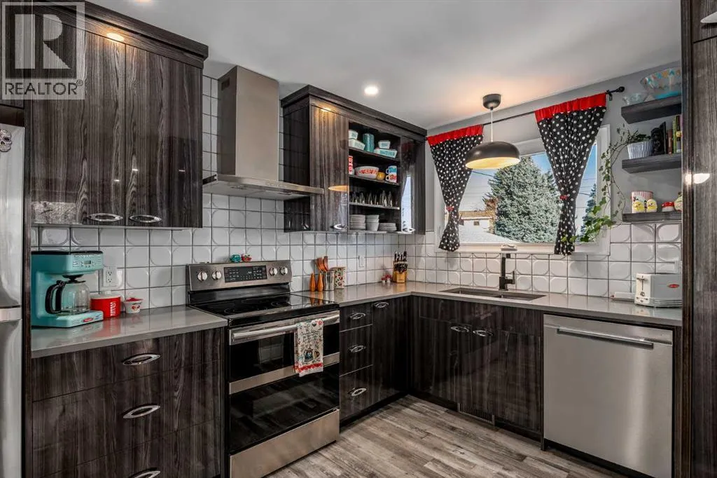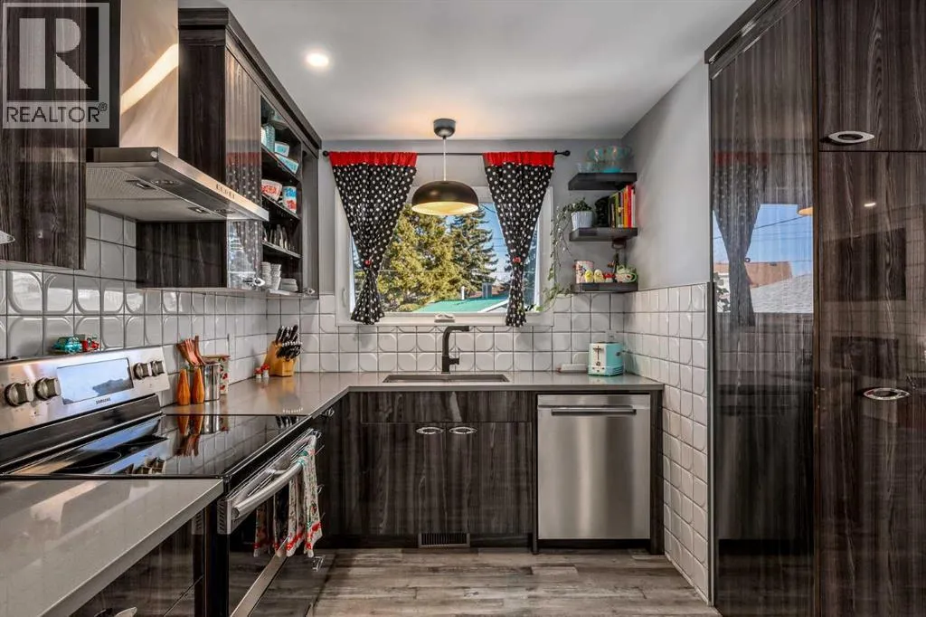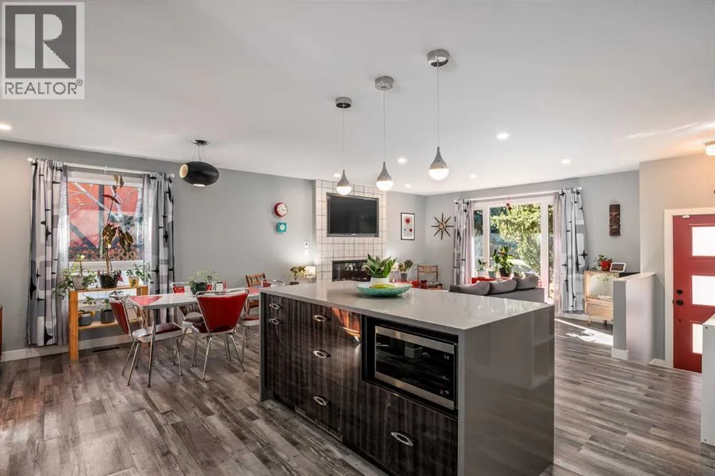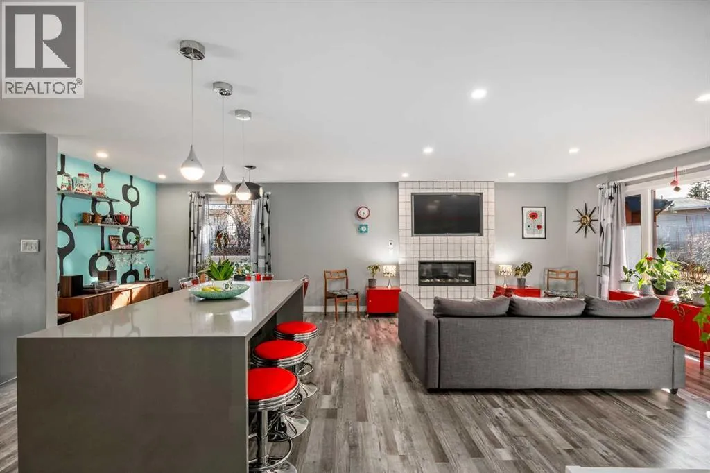 Welcome to this meticulously maintained and upgraded bungalow tucked away on a quiet crescent in the established SW community of Cedarbrae. Showcasing timeless mid-century modern character alongside thoughtful and fitting upgrades, this home offers a unique blend of style, comfort and functionality.Set on an expansive pie-shaped lot, the eco-landscaped backyard is a true retreat. Garden enthusiasts will love the native fruit trees, berry patches, perennial salad greens and pollinator attracting flowers that bloom from April to October. Among others, youâll enjoy pear and apple trees, raspberries, strawberries, and saskatoon berries. This is truly a private, low-maintenance and colourful oasis. A pergola and hot tub complete the space, perfect for relaxing or entertaining.Inside, the main floor has been extensively updated while preserving its inviting mid-century feel. The fully renovated kitchen with custom cabinetry, quartz countertops and waterfall island, updated vinyl plank flooring, fresh paint and curated finishes create a bright, cohesive living space. Large triple-pane windows flood the home with natural light while enhancing energy efficiency.This well-designed bungalow offers 4 bedrooms and 2.5 bathrooms, providing flexible options for families, guests and a home office. Additional notable upgrades include newer roofing, enhanced attic insulation and venting, triple-pane windows, updated soffits, fascia and downspouts, plus a freshly painted exterior accented by bold red front and back doors. A detached double heated garage and RV parking provide plenty of room for vehicles, storage and hobbies.Located in one of Calgaryâs most established southwest communities, Cedarbrae offers convenient access to major routes including Stoney Trail, parks, pathways, dog parks and recreation facilities.This mid-century inspired gem stands out for its character and care, move-in ready and waiting for its next chapter. Book your private tour today! (id:27476)