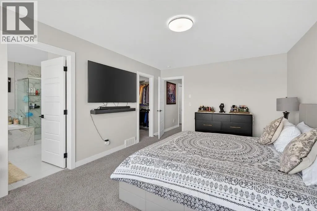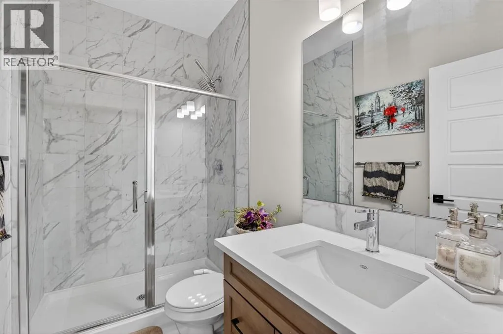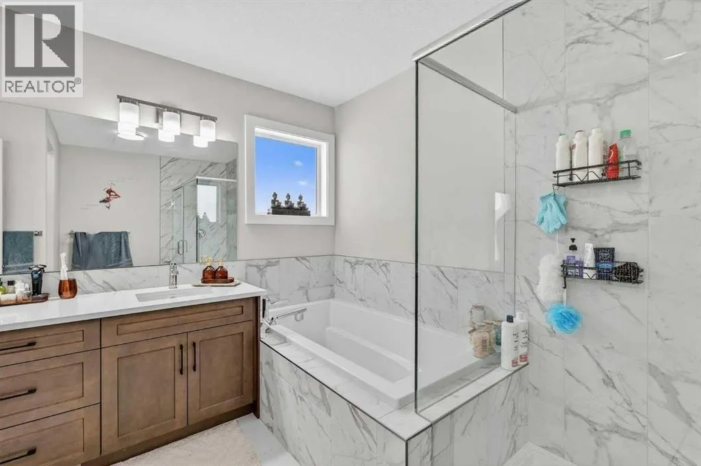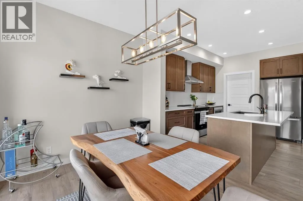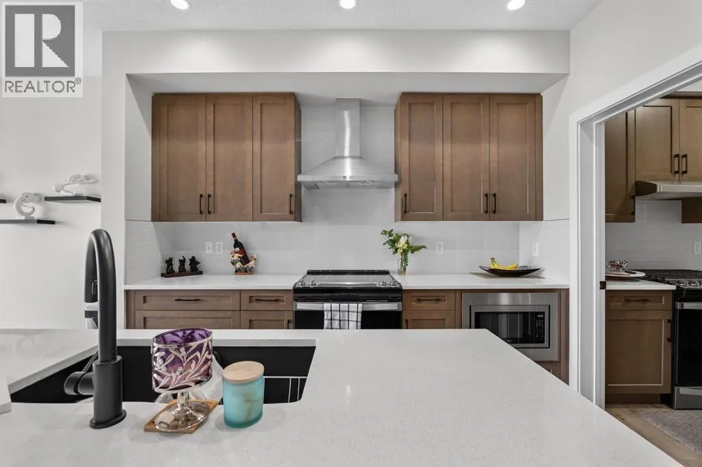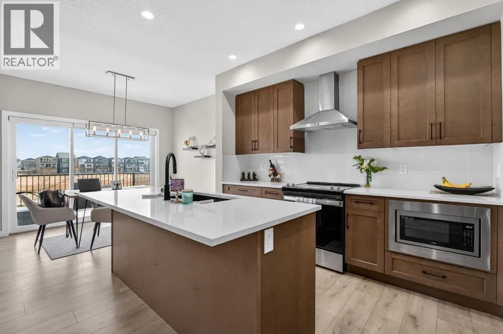 Welcome to this exceptional 7 BEDROOM, 2-storey home with an illegal walkout basement suite, backing onto green space in the community of Cornerstone. Offering outstanding flexibility, income potential, and over 3,000 sq ft of total developed living space, this property includes 2,219 sq ft above grade plus an additional 873 sq ft in the fully finished 2 bedroom illegal suite. Basement development was completed with permits. Any suite conversion would be subject to city/municipality permitting and approval. The main level features a bright, open-concept layout with modern finishes throughout. The kitchen is a true standout, thoughtfully designed with quartz countertops, a large central island and an abundance of sleek cabinetry. There is a spice kitchen with a gas stove and extra cabinetry, perfect for those who love to cook or entertain. This highly functional setup offers added convenience while keeping the main kitchen clean and open. The dining area flows seamlessly to the upper deck overlooking green space, while the spacious living room offers a comfortable gathering space filled with natural light. A rare MAIN FLOOR BEDROOM AND FULL BATH provide excellent flexibility for guests, extended family, or a home office. Upstairs, the home continues to impress with four generously sized bedrooms and a thoughtfully designed layout. The primary bedroom is a true retreat, featuring large windows, a custom walk-in closet with built-in cabinetry, and a beautifully appointed ensuite with dual sinks, quartz countertops, a deep soaker tub, and a separate glass-enclosed shower. The upper level also includes a full bathroom, convenient upper-floor laundry, and a versatile bonus/flex area that perfect for a family room, study space, or play area. The illegal walkout basement suite is fully self-contained and thoughtfully designed, offering two bedrooms, a modern full kitchen, a comfortable living area, a full bathroom, separate laundry, and a private entrance. Large windows a nd walkout access ensure the space feels bright and welcoming, making it ideal as a mortgage helper, rental investment, or multi-generational living solution. Additional highlights include a double attached garage, contemporary finishes throughout, and a prime location backing onto green space while remaining close to schools, parks, shopping, and major commuter routes. This is a rare opportunity to own a spacious, income-generating home in one of Calgaryâs fastest-growing communities. Don't miss your chance to see this one today. (id:27476)