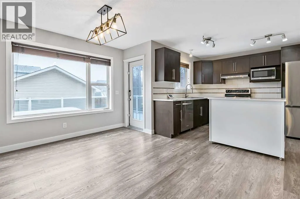 Welcome to this stunning renovated former show home, perfectly situated on an oversized corner lot that immediately captures attention. With over 1,900 square feet of professionally developed living space, this 3 bedroom, 3.5 bathroom residence showcases custom architectural features and thoughtful upgrades throughout. The main level greets you with a cozy corner gas fireplace in the living room, complemented by new laminate flooring that flows seamlessly into the two-piece bathroom, kitchen, and dining area. The updated kitchen is a true showpiece, featuring quartz countertops, rich dark maple cabinetry, a functional preparation island, pantry, double sinks, and sleek stainless steel appliances. The bright and spacious dining area offers convenient access to a generous backyard, perfect for entertaining and outdoor gatherings. Wide staircases lead upstairs to the bedrooms and downstairs to a professionally finished lower level by Stepper Homes, complete with a family room, wet bar, office area, laundry room, and a full bathroom. The expansive primary bedroom boasts double closets and a three-piece ensuite, while two additional bright bedrooms feature large closets and share a four-piece bathroom. Notable upgrades include a newer roof installed in 2023, quartz counter tops thru-out the home, and the property sits on an impressive thirty-five-foot-wide lot with a beautiful double car garage. The location offers exceptional convenience near major ring roads and shopping corridors, all at a remarkably affordable price point. This home truly has it all. Schedule your private viewing today and discover your new home sweet home! (id:27476)