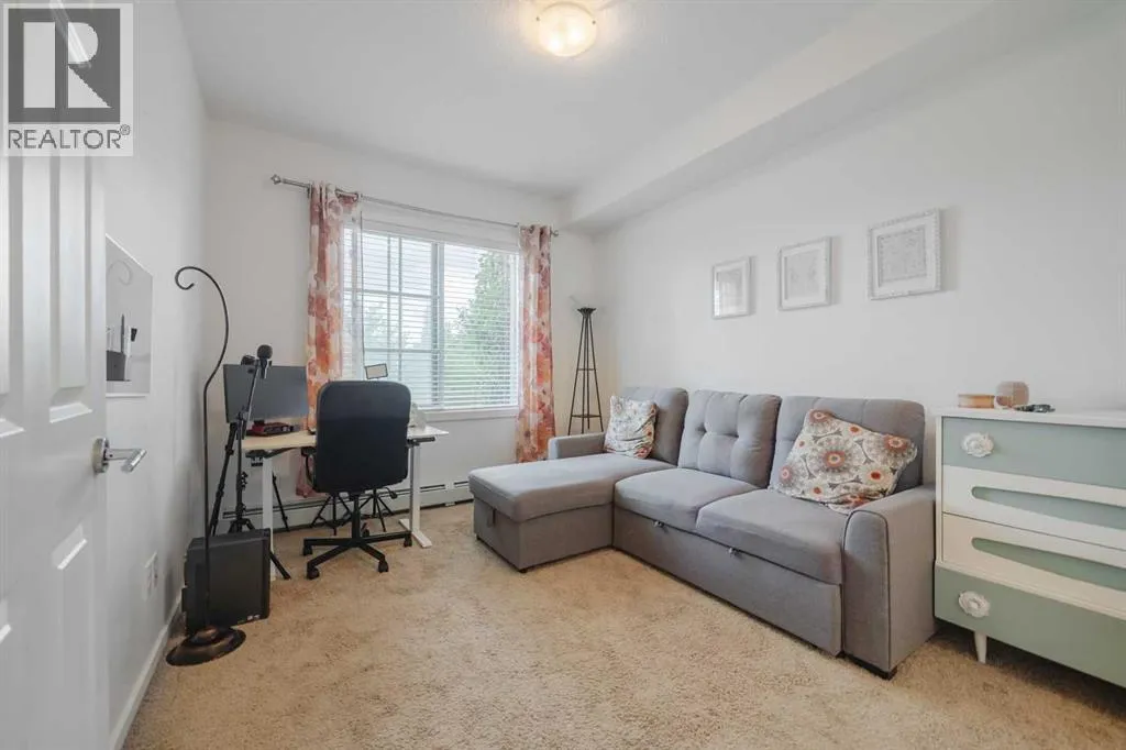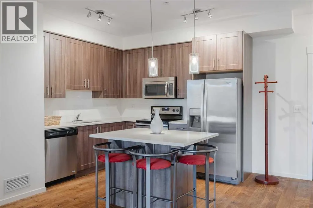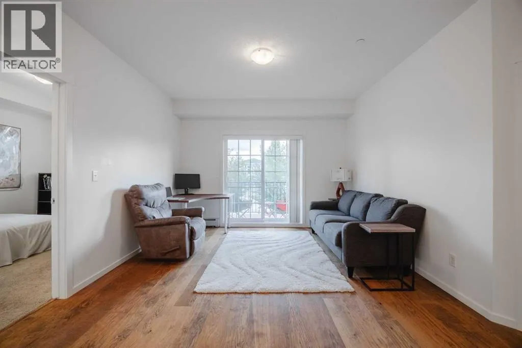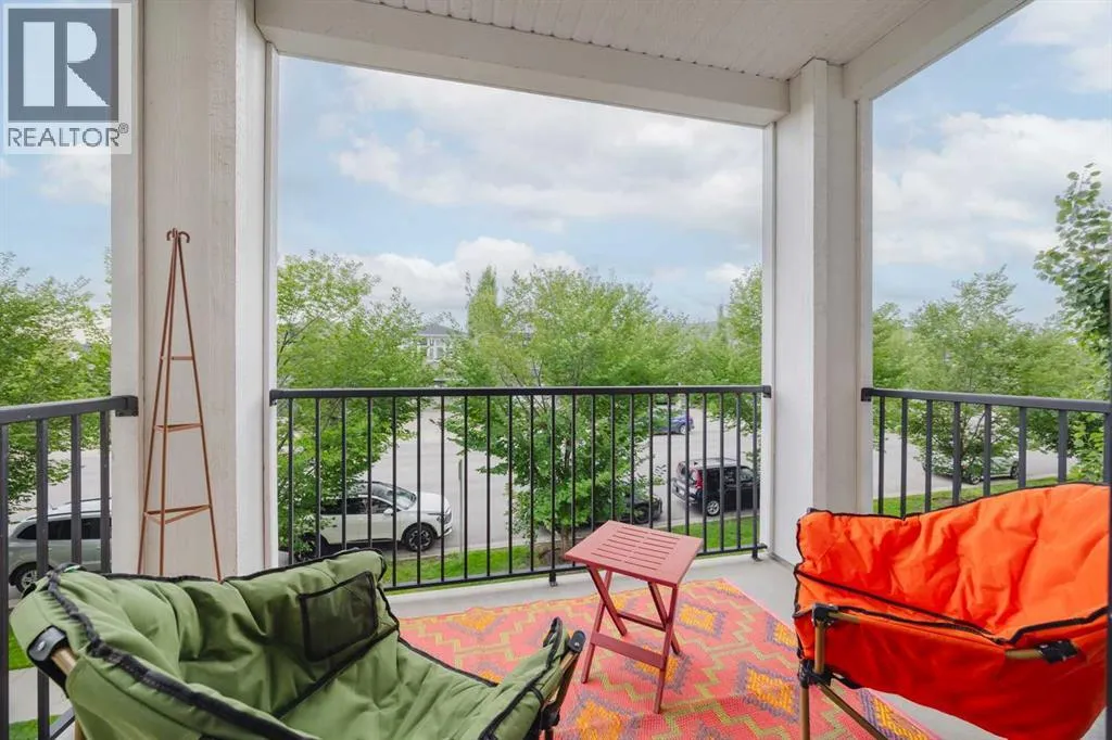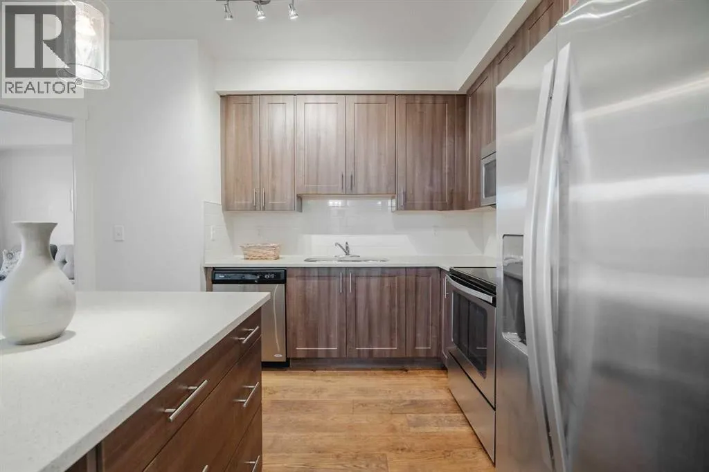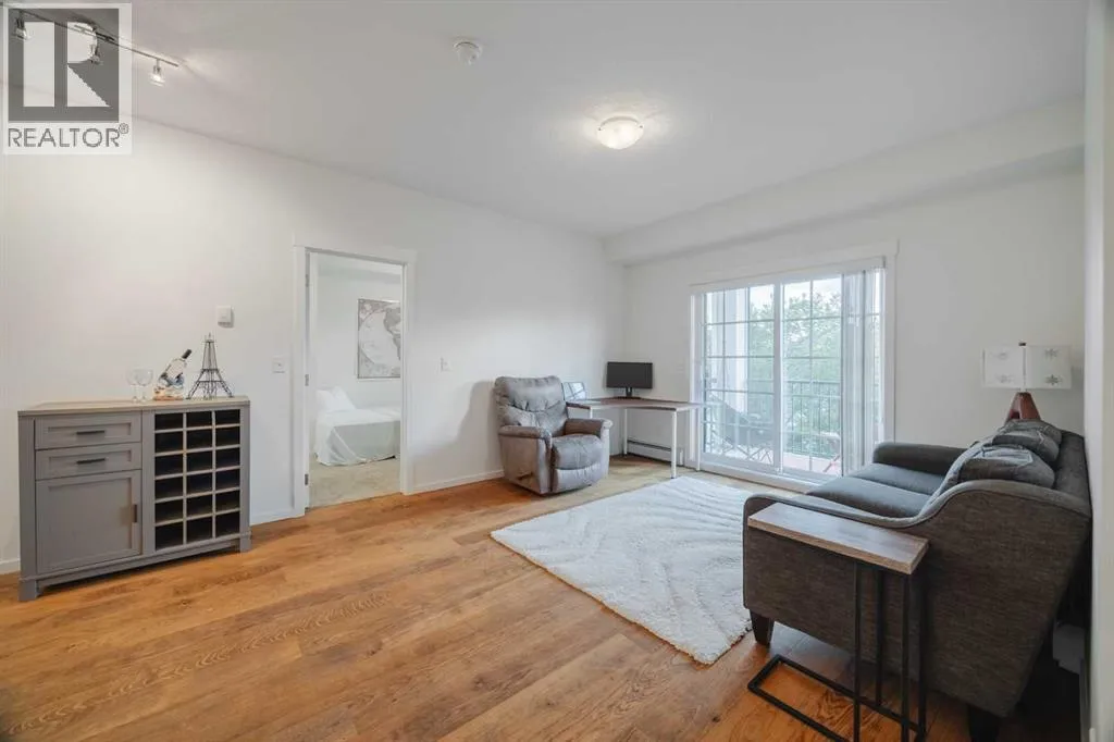 Spacious 2-bedroom, 2-bathroom condo with windows in both bedrooms â a rare find. This large unit offers 825 sq.ft. (builder size) of open-concept living space, complete with hardwood flooring throughout the main areas, upgraded stainless steel appliances, quartz countertops, and full-height kitchen cabinets for added storage and style.The kitchen flows seamlessly into the bright living and dining area, perfect for entertaining or relaxing at home. The primary bedroom features a walk-through closet and 4-piece ensuite, while the second bedroom is ideally located near the main bath and in-suite laundry. Enjoy your own private balcony, plus the convenience of underground parking and a secure storage locker.Stylish, functional, and move-in ready â this is one of the best layouts available in the complex. And donât forget, you'll be living in Legacy, near Ponds, All Saints High School, Living Spirit K-9 School, Township Shopping Centre, playgrounds, and with easy access to McLeod Trail. Enjoy walking paths and nature views at the nearby environmental reserve, and a future elementary school. (id:27476)