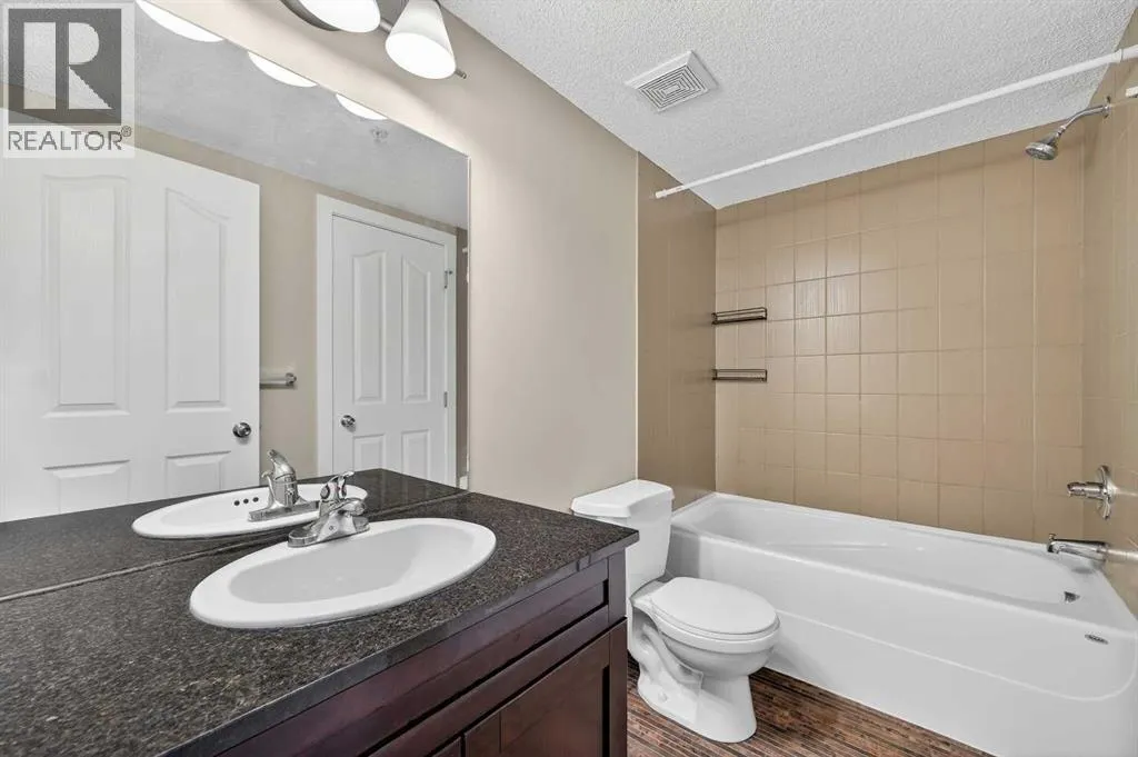 This 2-bedroom, 1 bathroom condo is ideally positioned for easy access to amenities in the heart of Taradale, offering a functional open-concept floor plan designed for modern living. The kitchen features a granite peninsula counter top with an eat-up breakfast bar, and ample cabinetry. Front the tiled entry, updated carpet extends through the bright living room and bedrooms, which opens directly onto your private balcony. The smart layout provides excellent privacy, with the living area separating the two bedrooms. The primary bedroom features a walk-in closet and private east facing sleeping quarters, as well as direct access to the âcheater en suiteâ 4 pc bath.. On the opposite side, the second bedroom is perfect for a roommate, guest, or home office setup. Practical upgrades include a washing machine replaced in 2022 located in the in-suite laundry room. This unit comes complete with a titled, heated underground parking stall and an assigned storage locker for your seasonal items. Condo fees include heat, water, AND electricity, simplifying your monthly budget. Located just steps from Taralake walking paths, and minutes from the Genesis Centre, Saddletowne LRT, schools, and shopping, this home offers excellent value in a connected community. (id:27476)