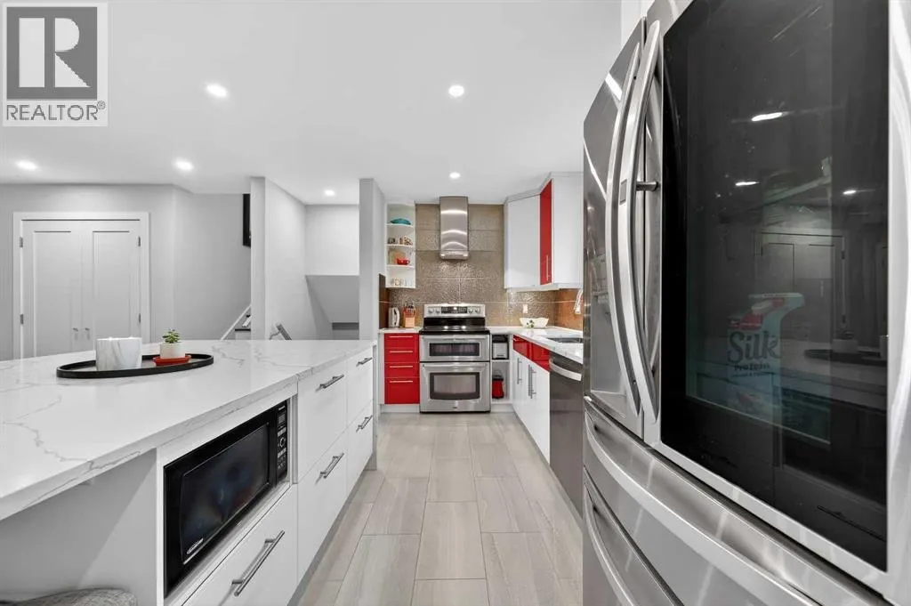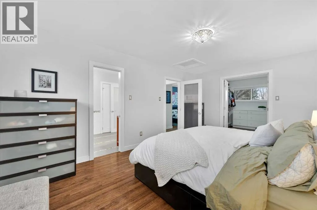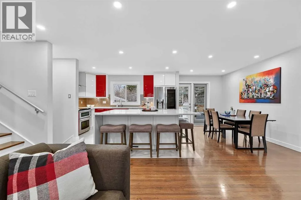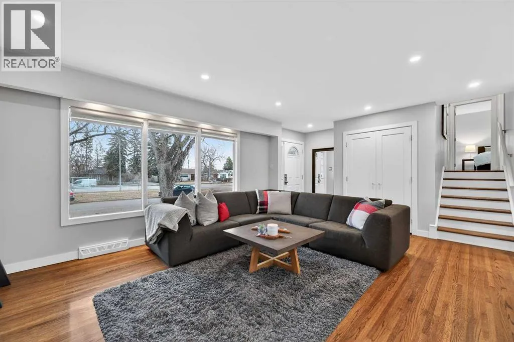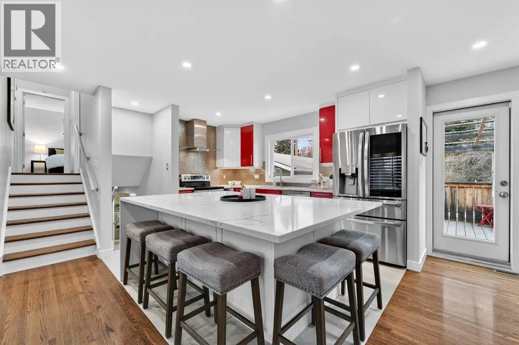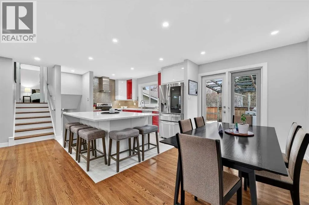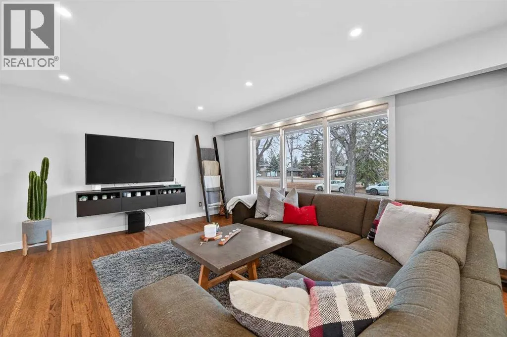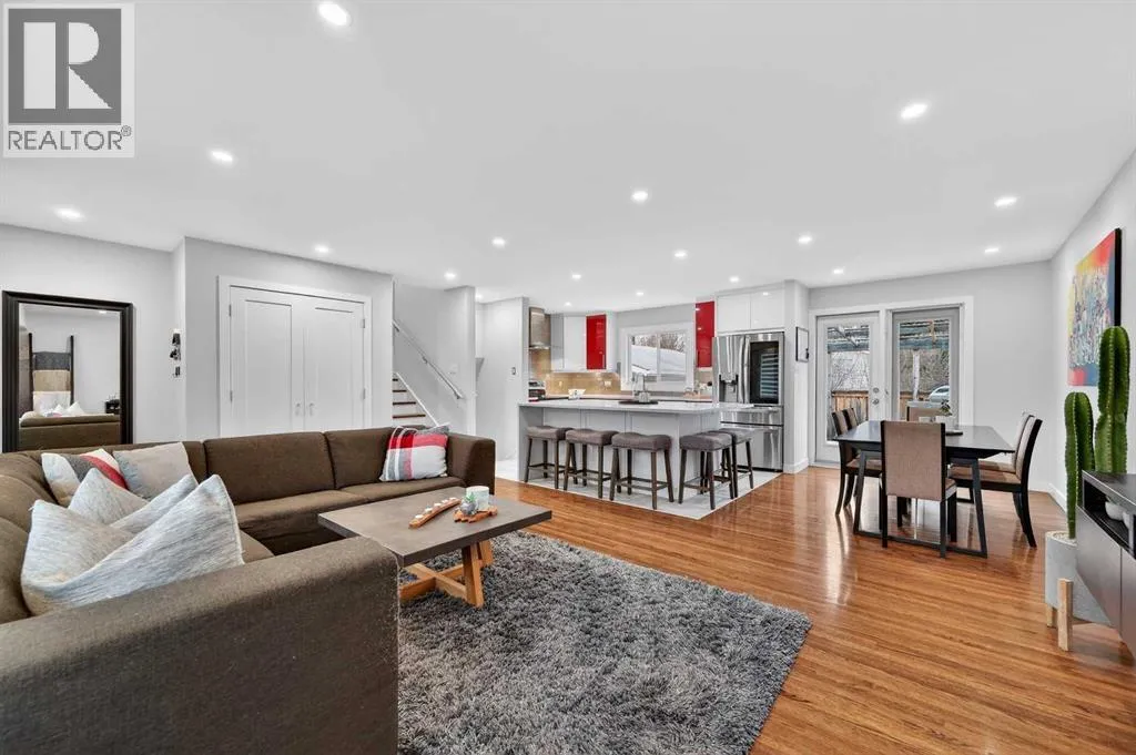 Beautifully maintained home in sought-after Chinook Park, ideally positioned across the boulevard from Elbow Drive with green space directly in front! This thoughtfully updated home features a bright, open-concept main level with rich oak hardwood floors and large windows that flood the space with natural light. The modern kitchen is a true showstopper with sleek cabinetry, quartz countertops, stainless steel appliances, and a large central island that seamlessly connects to the dining area. French doors allow access to a sunny west-facing deck and spacious backyard, perfect for indoor-outdoor living. Upstairs offers a spacious primary retreat with an impressive walk-in closet and room for a full bedroom suite, along with an additional bedroom and a bathroom featuring a luxury oversized walk-in shower with dual showerheads, designer finishes and a large linen closet. The third level provides flexibility with an additional bedroom or office, a fully renovated bathroom with a luxury shower, plus a convenient laundry and mudroom with direct access to the attached garage. The fully renovated lower level adds versatility with a stylish family room and custom wet bar, ideal for entertaining or movie nights. Additional highlights include an attached single garage plus an oversized double detached garage, brand new roof, contemporary finishes throughout, and a large private yard with mature landscaping and upper deck, all located close to top schools, parks, shopping, and transit in one of Calgaryâs most desirable communities. (id:27476)