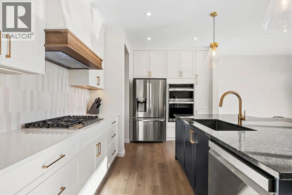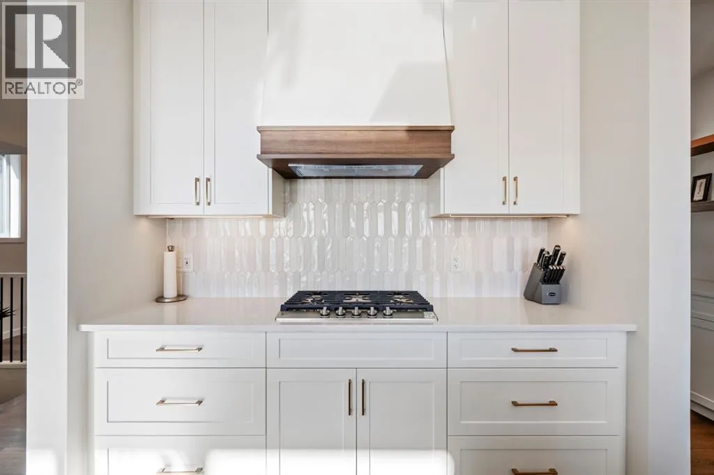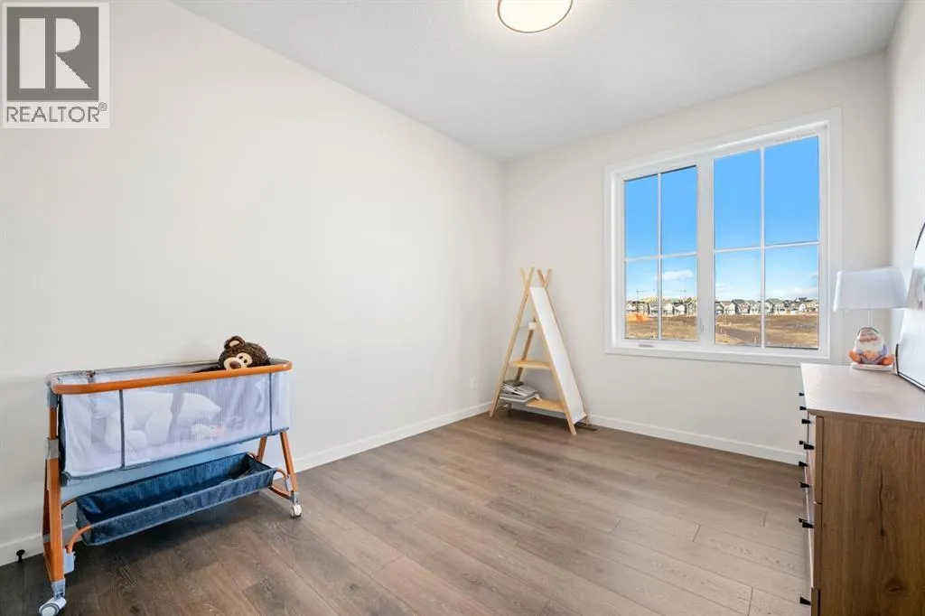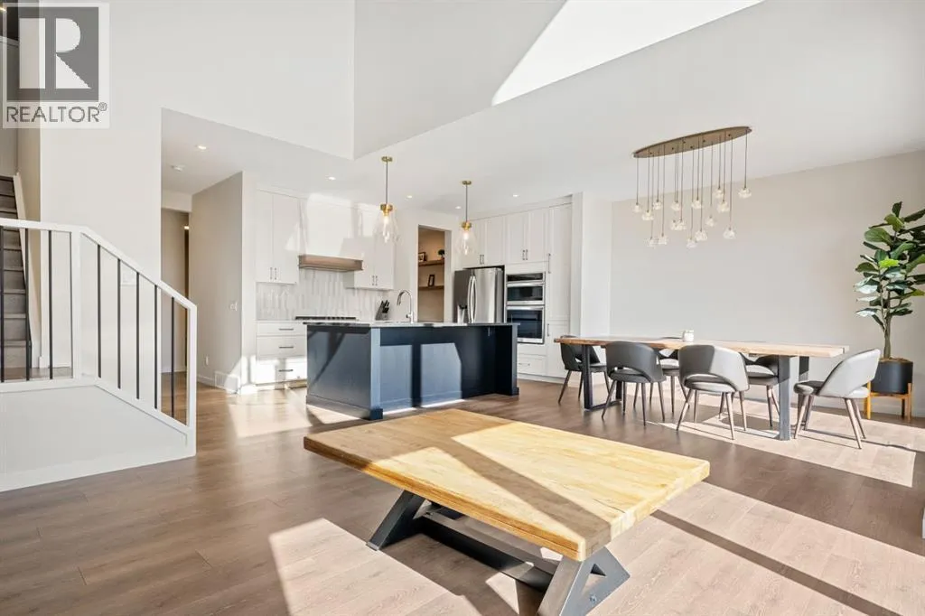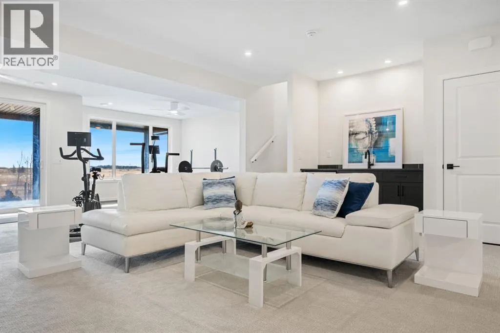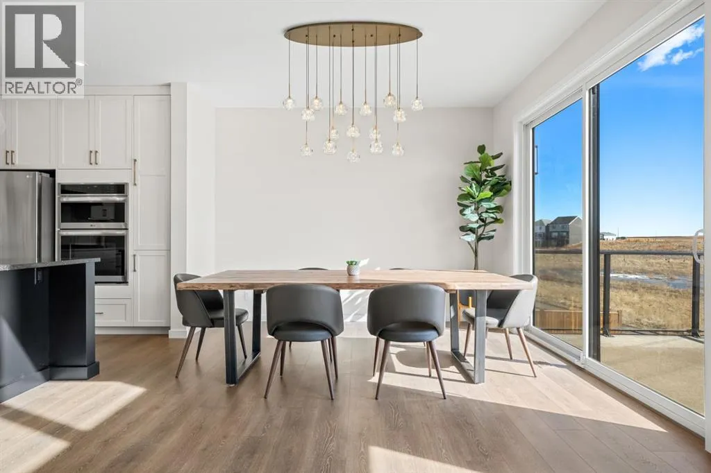 Thoughtfully upgraded far beyond builder spec, this exceptional Baywest walkout in Rangeview offers elevated design, premium finishes, and an outstanding rear setting with open views. Built with long-term living in mind, this home showcases a bright open-concept layout with a dramatic open-to-above great room, oversized windows, and a striking floor-to-ceiling fireplace feature wall. The chef-inspired kitchen was extensively upgraded with full-height cabinetry with crown to ceiling, quartz surfaces, farmhouse sink, upgraded hood fan, under-cabinet lighting, pot drawers, built-in waste and recycling pullouts, a reconfigured island, butlerâs pantry, and custom built-in storage. Upstairs, the upgrades continue with luxury vinyl plank on the staircase and second level, 8-foot interior doors, upgraded railings, built-in bench seating, and a beautifully appointed primary retreat featuring a freestanding soaker tub, curbless glass shower extended to the ceiling, makeup counter, and enhanced walk-in closet shelving. The fully finished walkout basement adds valuable living space with a large rec room, bedroom, full bath, bar area, and zoned comfort. Outside, the home is equally impressive with cement board/Hardie exterior details, black exterior windows, Gemstone lighting, a screened-in upper deck with motorized screen, clear glass railing, vinyl decking, covered lower patio, BBQ gas line, and a heated garage with floor drain. A rare opportunity to own a highly upgraded, move-in-ready walkout home in one of Calgaryâs most distinctive emerging communities. (id:27476)