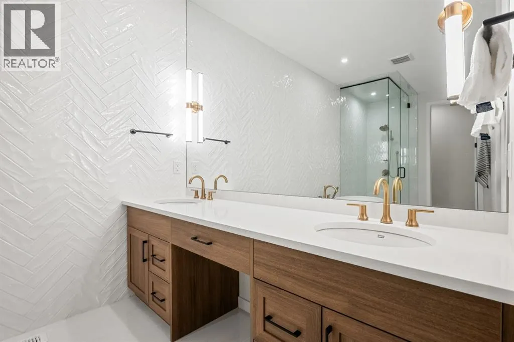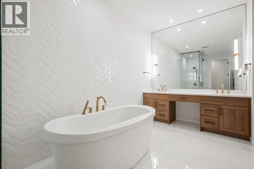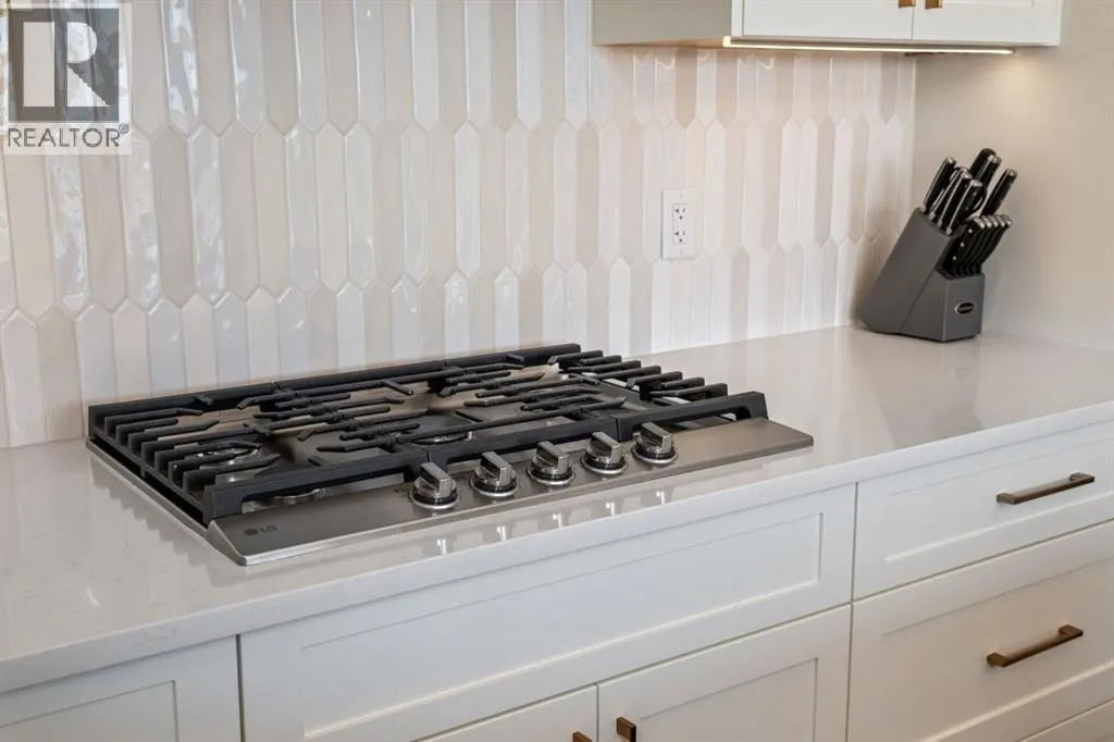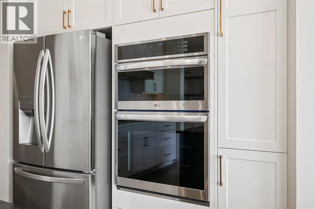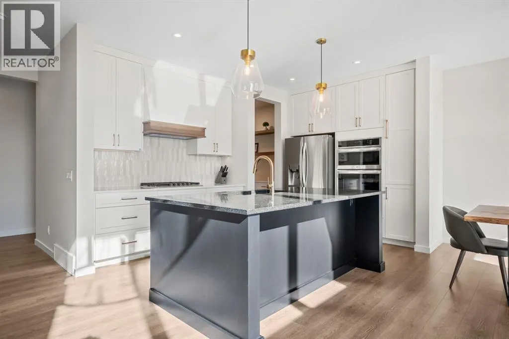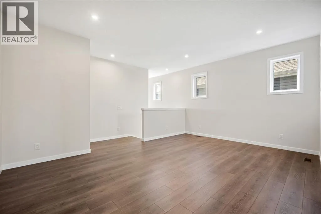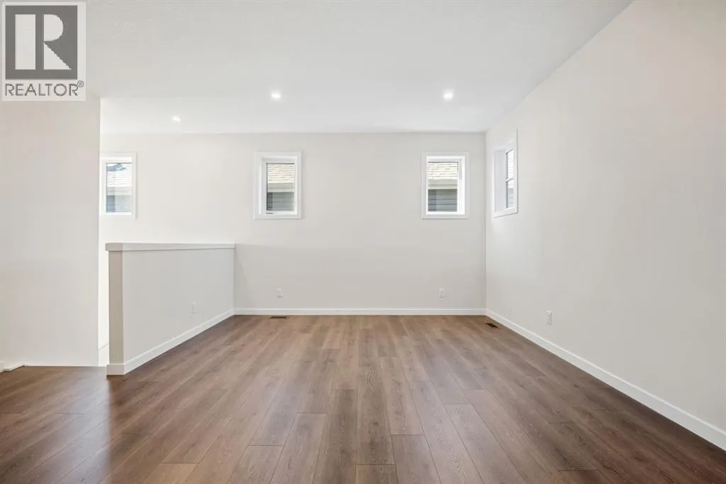 Thoughtfully upgraded far beyond builder spec, this exceptional Baywest walkout in Rangeview offers elevated design, premium finishes, and an outstanding rear setting with open views. Built with long-term living in mind, this home showcases a bright open-concept layout with a dramatic open-to-above great room, oversized windows, and a striking floor-to-ceiling fireplace feature wall. The chef-inspired kitchen was extensively upgraded with full-height cabinetry with crown to ceiling, quartz surfaces, farmhouse sink, upgraded hood fan, under-cabinet lighting, pot drawers, built-in waste and recycling pullouts, a reconfigured island, butlerâs pantry, and custom built-in storage. Upstairs, the upgrades continue with luxury vinyl plank on the staircase and second level, 8-foot interior doors, upgraded railings, built-in bench seating, and a beautifully appointed primary retreat featuring a freestanding soaker tub, curbless glass shower extended to the ceiling, makeup counter, and enhanced walk-in closet shelving. The fully finished walkout basement adds valuable living space with a large rec room, bedroom, full bath, bar area, and zoned comfort. Outside, the home is equally impressive with cement board/Hardie exterior details, black exterior windows, Gemstone lighting, a screened-in upper deck with motorized screen, clear glass railing, vinyl decking, covered lower patio, BBQ gas line, and a heated garage with floor drain. A rare opportunity to own a highly upgraded, move-in-ready walkout home in one of Calgaryâs most distinctive emerging communities. (id:27476)