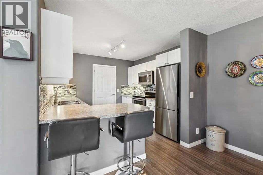 Experience refined urban living in this bright executive corner townhome offering over 2,400 sq. ft. of total living space. Rarely do you find a layout like thisâfeaturing 3 spacious bedrooms, 3 full bathrooms, a heated double-attached garage, and an expansive fully developed basement with a substantial recreation space not typically found in townhome living.Soaring vaulted ceilings and large windows flood the open-concept main floor with natural light, highlighting the elegant living area with gas fireplace, generous dining space, and a well-appointed kitchen with breakfast bar, pantry, and updated appliances. A main-floor bedroom with full ensuite and walk-in closet offers exceptional flexibility for guests or a home office, while the private patio provides a quiet outdoor retreat.Upstairs, a serene retreat awaits with a spa-inspired ensuite and soaker tub. The fully finished basement adds incredible versatility with a large family/recreation room, office, gym area, additional bedroom, full bath, and ample storageâall enhanced by in-floor heating.Located just one block from the LRT and close to all amenities, this well-maintained complex offers exceptional value, with condo fees covering all utilities except electricity. A rare opportunity for elevated, low-maintenance living. (id:27476)