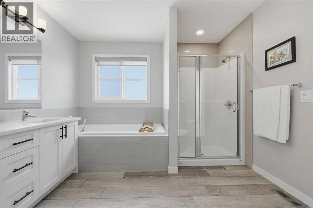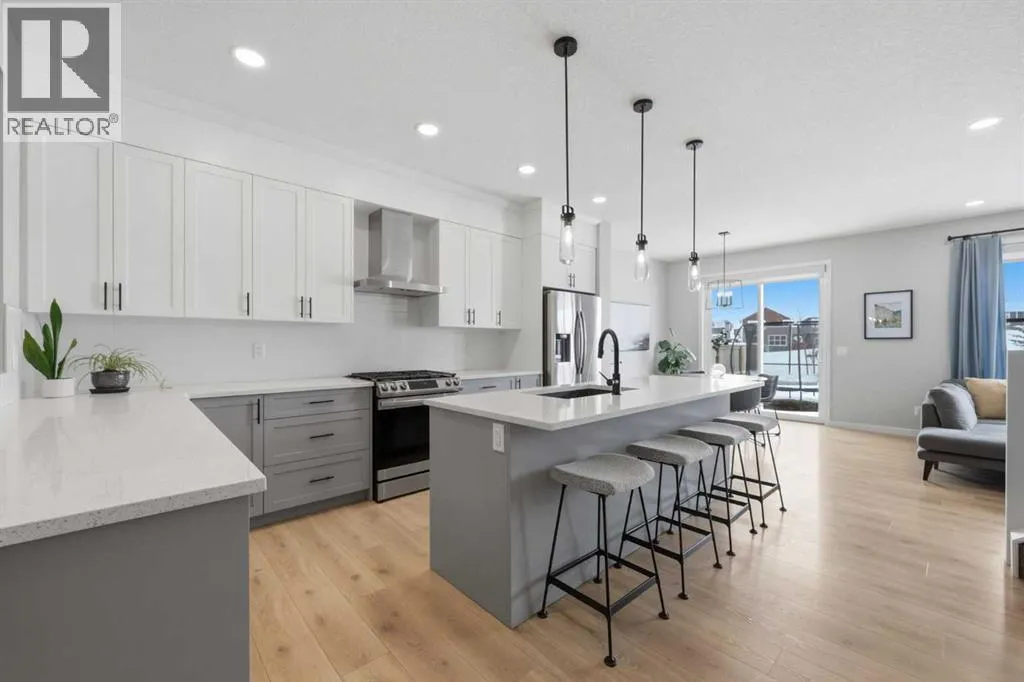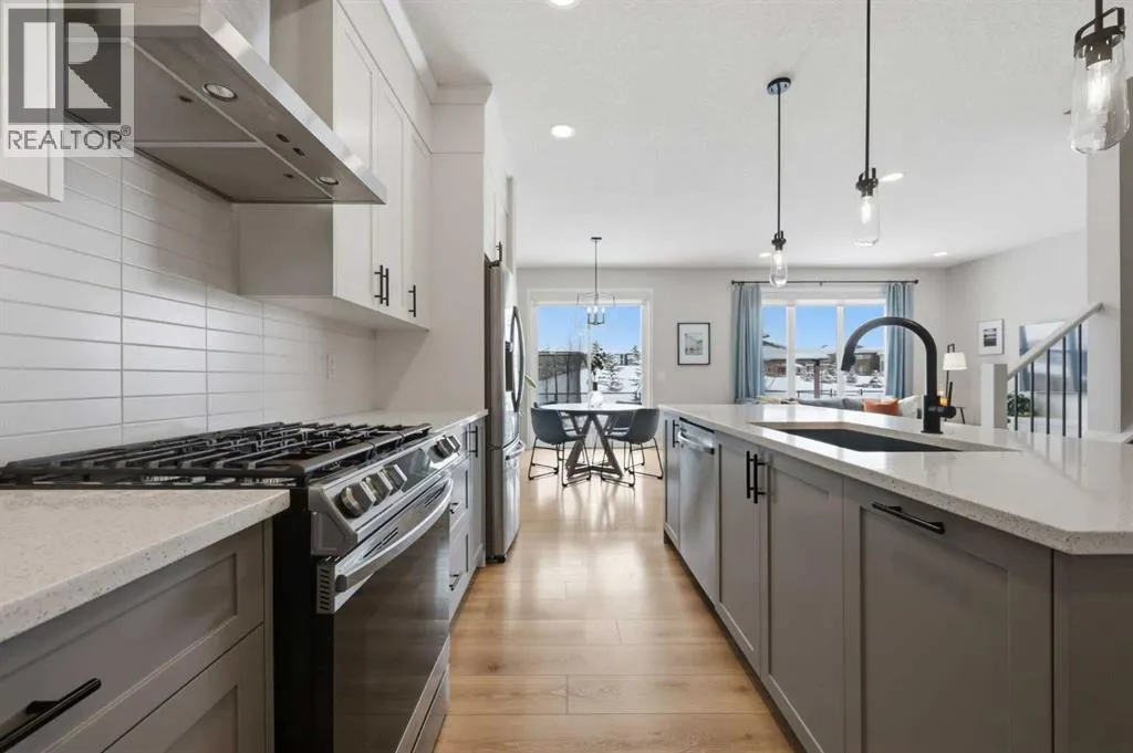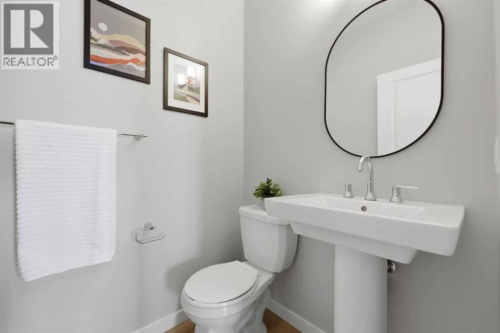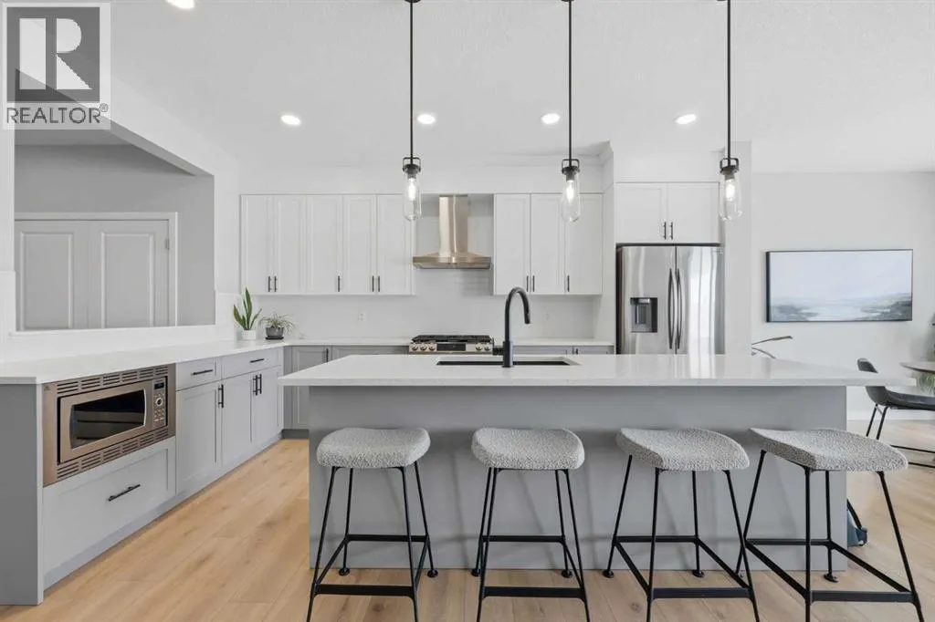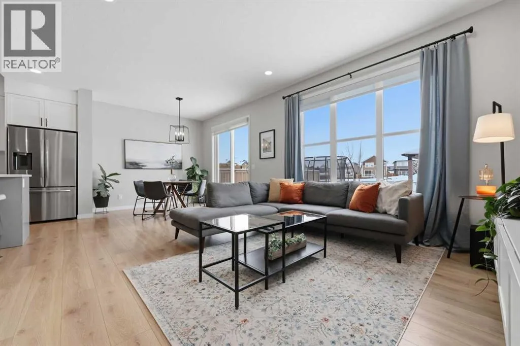 Welcome to Carringtonâone of Calgaryâs most exciting and thoughtfully planned communities, surrounded by 65 acres of green space, scenic ponds, playgrounds, and direct access to the incredible 138 km Rotary/Mattamy Greenway trail system. This gorgeous 4-bedroom home is perfectly positioned backing onto peaceful greenspace, offering both privacy and beautiful natural views. Inside, youâll immediately notice the abundance of natural sunlight streaming through the large windows, creating a bright and inviting atmosphere throughout, along with the added comfort of air conditioning. The open-concept main floor is designed for both everyday living and entertaining, featuring a seamless flow between the living room, dining area, and kitchen. A versatile main floor denâeasily used as a fifth bedroomâprovides the perfect space for guests, a home office, or a quiet retreat, while the conveniently located half bath sits just off the mudroom for added functionality. Upstairs, a spacious bonus room thoughtfully separates the primary suite from the two secondary bedroomsâideal for families wanting both connection and privacy. The primary bedroom is truly impressive in size and offers a spa-inspired ensuite complete with dual sinks, a large soaker tub, separate shower, private water closet, and a generous walk-in closet. This home has another year left on the build envelop warranty and another 5 year structural beyond that! Carrington continues to grow with exciting future amenities including planned school sites, expanded commercial development, and a future stop along the Green Line LRTâmaking this an excellent opportunity for both lifestyle and long-term value. Located just 15 minutes from CrossIron Mills, Costco, and Airdrie, youâll enjoy convenient access to shopping, dining, and everyday essentials while still being tucked into a quiet, nature-filled community. (id:27476)