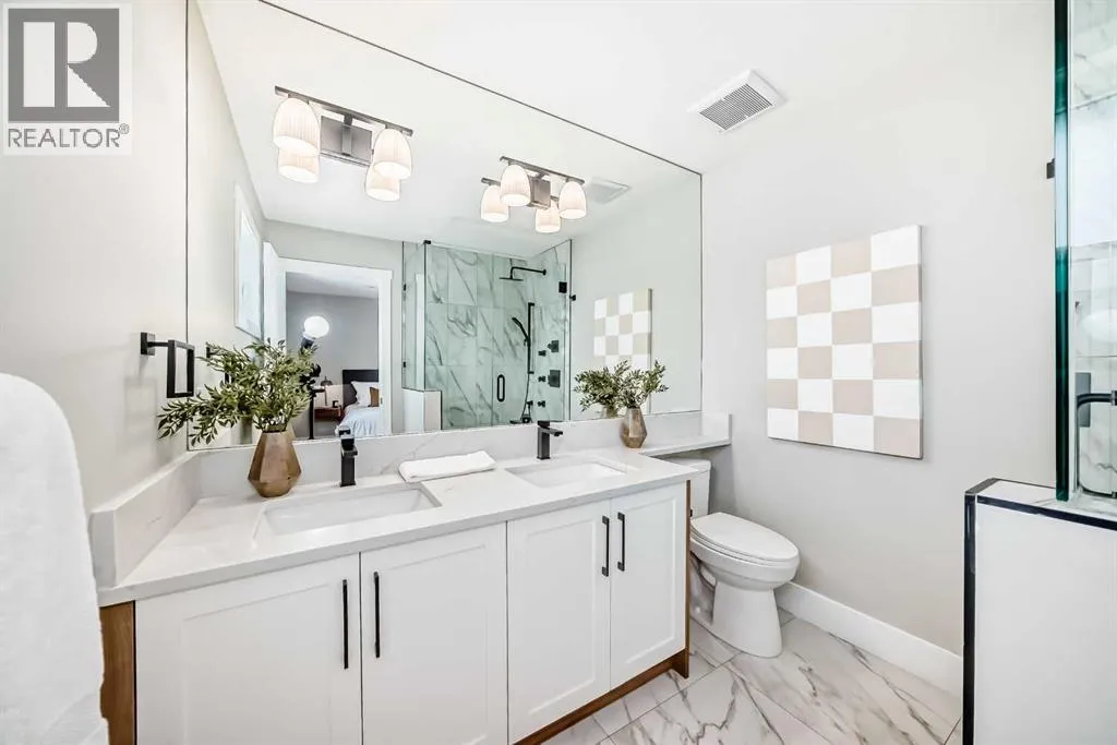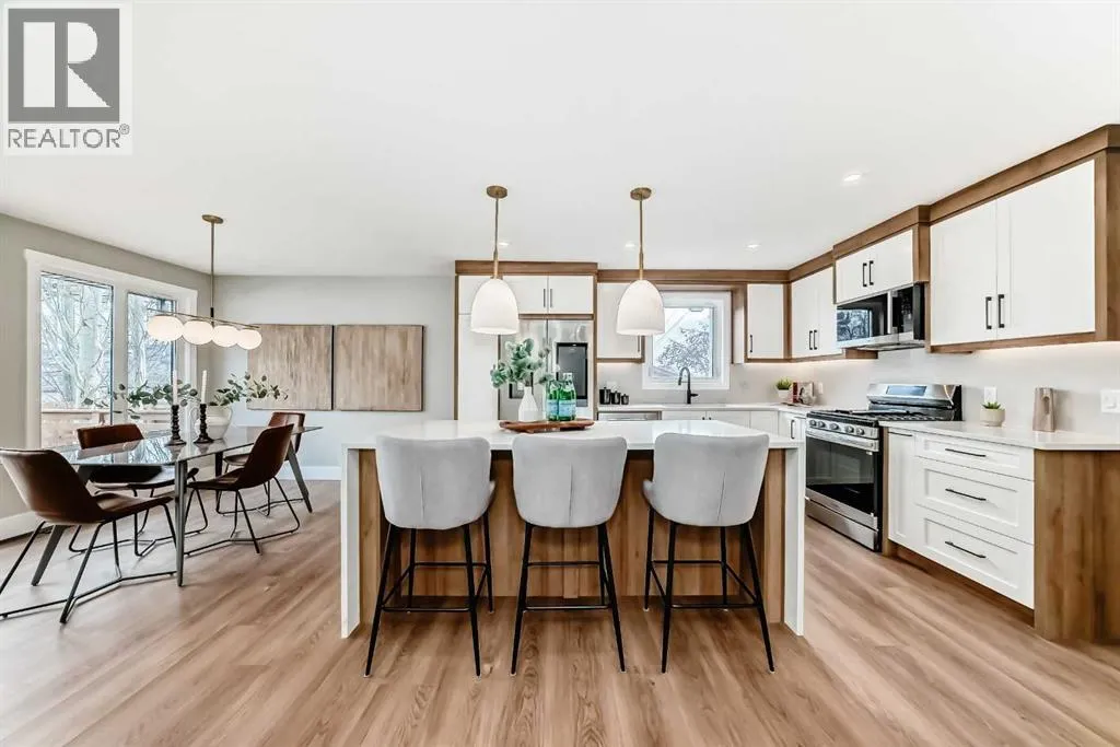 Beautifully renovated and thoughtfully designed, this 1,421 sq ft home in sought-after Lake Bonavista offers the perfect blend of style, comfort, and functionality. The bright, open-concept main floor showcases a stunning great room with a modern neutral palette, a showpiece two-tone kitchen with eat-up island, stainless steel appliances, and seamless vinyl flooring throughout. A striking feature fireplace anchors the living space, creating an inviting atmosphere ideal for both everyday living and entertaining.The main level includes three well-appointed bedrooms, highlighted by a serene primary retreat complete with a walk-in closet and private ensuite. A convenient laundry room and mudroom add to the homeâs thoughtful, family-friendly layout.Downstairs, the fully developed basement expands your living space with two additional bedrooms, a full bathroom, and an impressive rec room featuring a second fireplace and a large wet barâperfect for hosting or relaxing nights in.Step outside to enjoy the expansive deck overlooking a fully fenced backyard, along with a double detached garage and a spacious front porch that adds to the homeâs curb appeal. Tucked away on a quiet street in an exceptional location close to schools, parks, and amenities, this home offers the lifestyle youâve been waiting for. (id:27476)