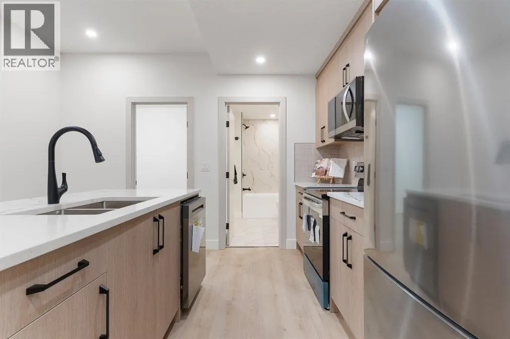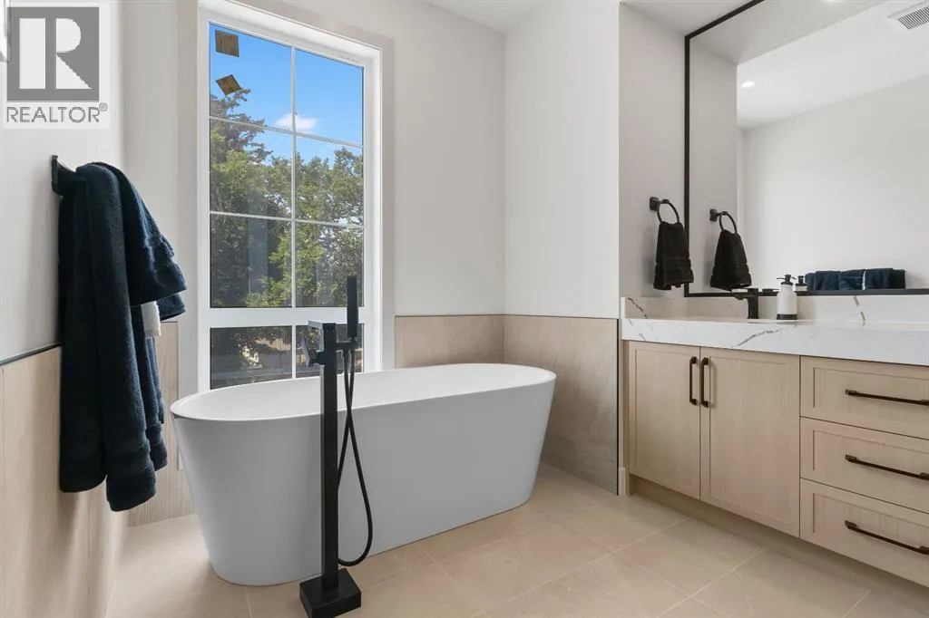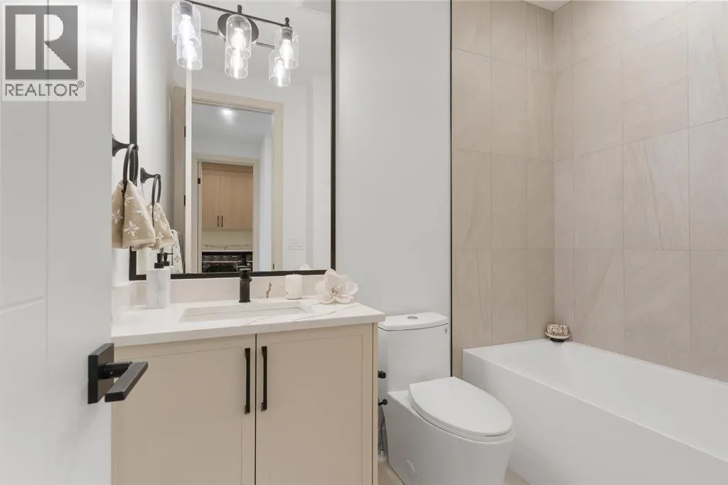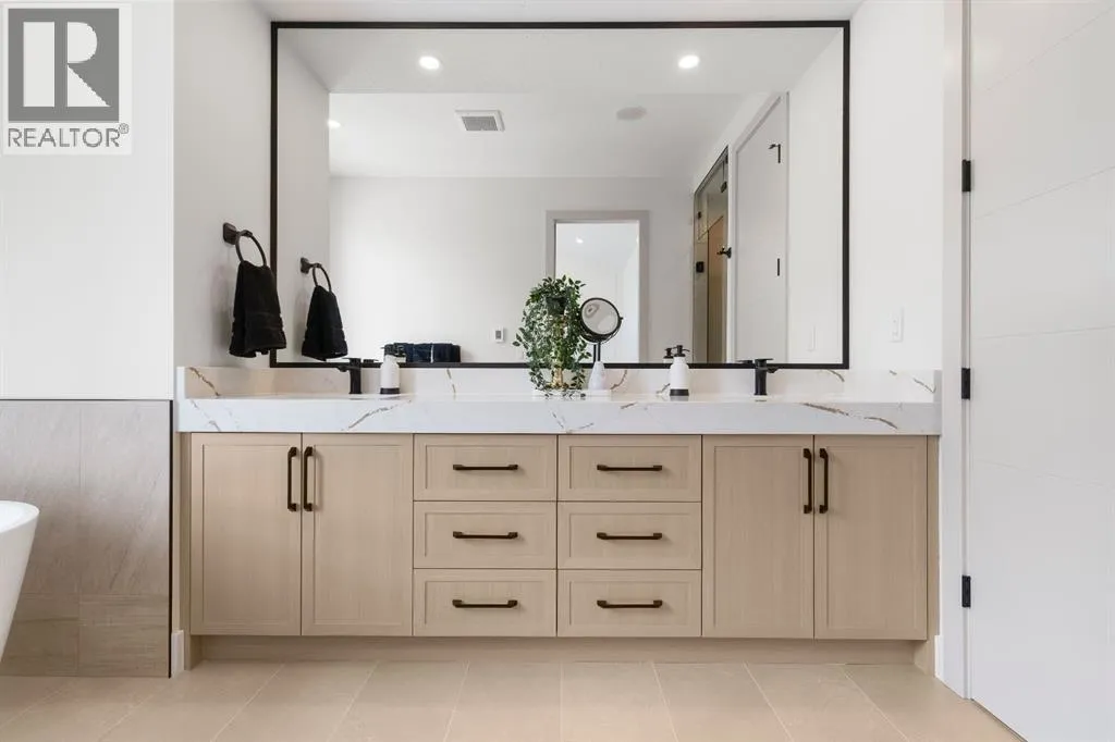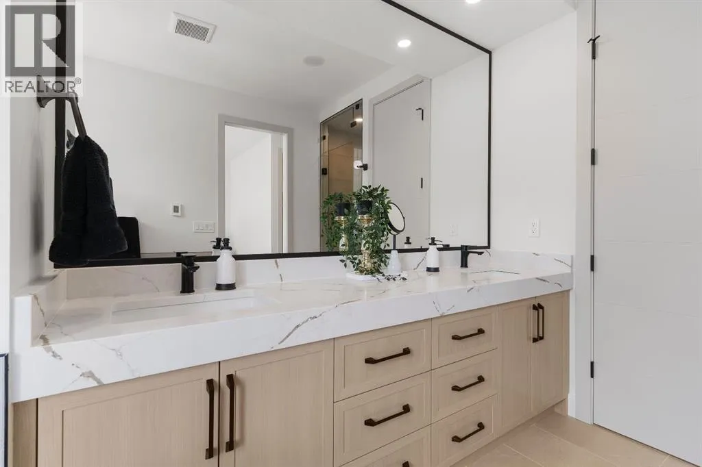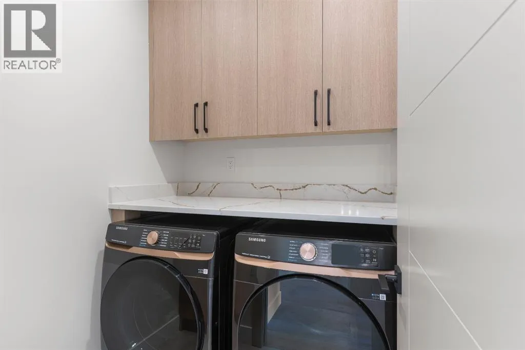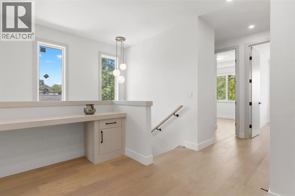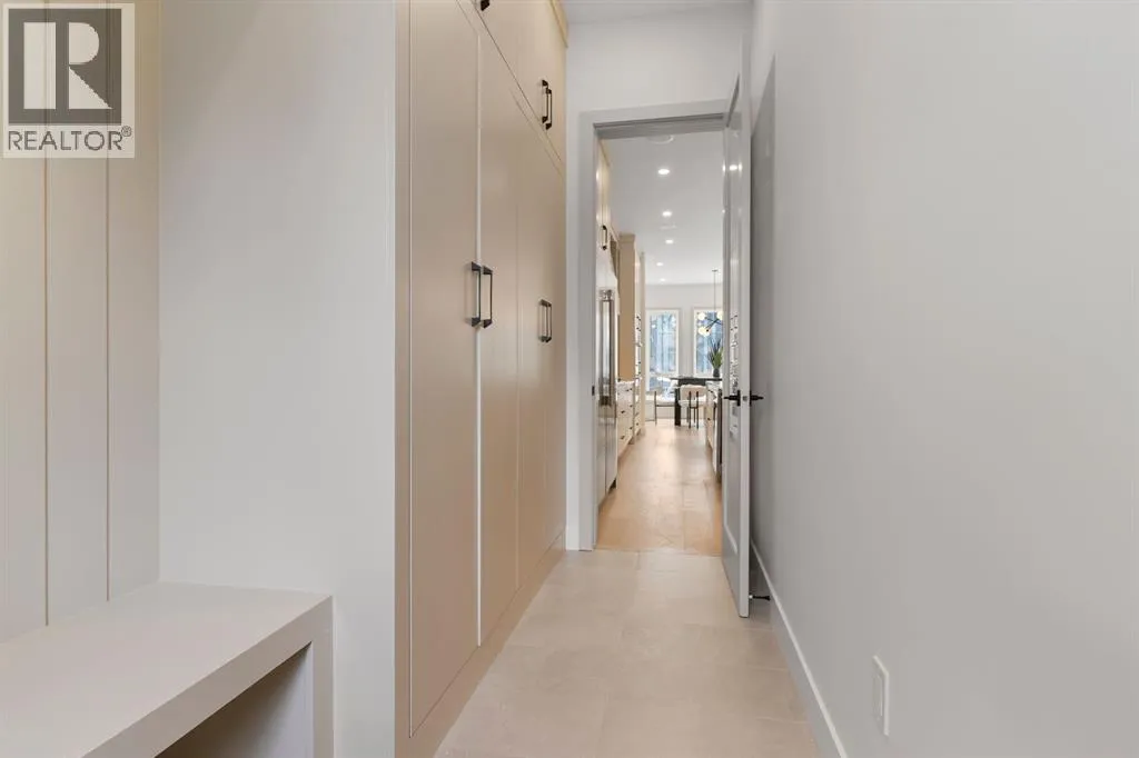 Glenbrookâs Finest! Step into a bright and inviting open-concept main floor where function meets elevated design. At the front of the home, a beautiful formal dining area sets the stage for stylish gatherings and elegant dinner parties. Just beyond, the chef-inspired kitchen boasts a massive waterfall quartz island, double-wide fridge, Bosch cooktop, wall oven, and dishwasher. Adjacent to the island, a thoughtful prep and storage area includes a built-in bar fridge and extended cabinets with convenient pull-out drawersâkeeping everything organized and within easy reach for seamless entertaining. Warm neutral tones, built-in ceiling speakers, and timeless finishes create the perfect backdrop for both daily living and hosting with ease. At the rear of the home, a cozy fireplace lounge flows effortlessly onto a sprawling east-facing deckâideal for enjoying quiet sunny summer mornings or relaxed evenings. Just off the kitchen, a spacious mudroom offers even more custom cabinetry to store your familyâs essentials. Upstairs, a versatile loft area offers the perfect spot for a home office or reading nook. The massive primary retreat features heated floors in the spa-inspired ensuite, and a deep soaker tub. Two additional generously sized bedrooms and a stylish four-piece bath complete the upper level. Downstairs, the home offers even more flexibility with a bright and spacious legal basement suite (pending final City of Calgary approval). Featuring two private bedrooms and a large open living area, this level is ideal for extended family, guests, or future rental income. This home isnât just beautifully finishedâitâs a thoughtful investment in style, space, and long-term potential. (id:27476)