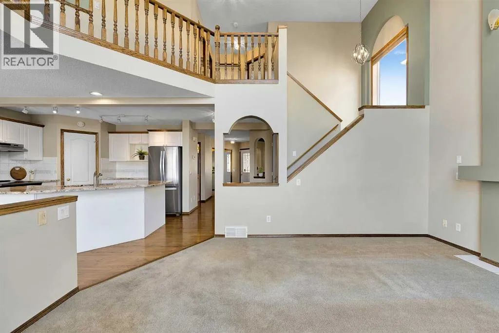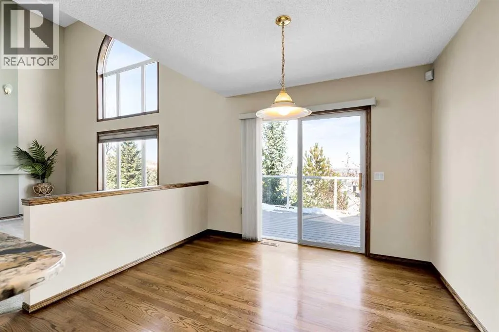 This well-maintained two-storey walkout home built by Shane Homes is located in the desirable community of Edgemont and offers excellent access to schools, shopping, and transportation. Featuring three bedrooms and two and a half bathrooms, the home includes hardwood flooring on the main level and a cozy gas fireplace. The main floor boasts a spacious kitchen with an island and eating bar, a bright breakfast nook with patio doors leading to a maintenance-free deck with a PVR surface and great views, and a generous living room with nearly 17-foot ceilings and a gas fireplace. There is also a dining room or flex space, a convenient main floor laundry, and a two-piece bathroom. Upstairs, youâll find the primary bedroom with a walk-in closet and four-piece ensuite, along with two additional bedrooms, a flex area, and another full four-piece bathroom. The undeveloped walkout basement includes roughed-in plumbing, offering future potential, while the exterior is well cared for and features a double attached garage. Quick possession is availableâbook your private viewing today. (id:27476)