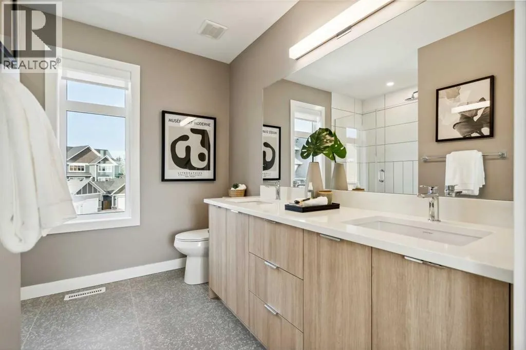 3-BED | 2.5-BATH | 2-CAR ATTACHED GARAGE | LOW CONDO FEES. High quality construction and many inclusions in the home; quartz counters in kitchen and bathrooms, LVT flooring throughout main living area, 9' ceilings on main living area, plenty of storage space, oversized kitchen, oversized balcony, plus additional front patio space. A/C rough in and all window coverings are included! Upper floor washer and dryer are included, as well as full kitchen appliance package including gas range and chimney hood fan. Oversized double car attached garages for your convenience. The home boasts huge, oversized windows, many of them opening to allow in fresh air and sunlight. Experience the best of Currie, with top-rated schools, parks (including dog park), restaurants, heritage buildings, innovative mixed-use spaces, and just an 8-minute drive to downtown! (Note: Photos & virtual tour are of a show home with similar layout and is an approximation of the property for sale). Book your showing today. (id:27476)