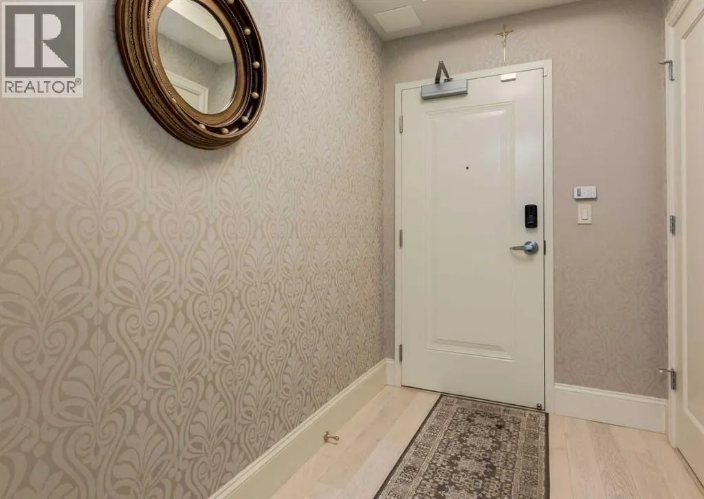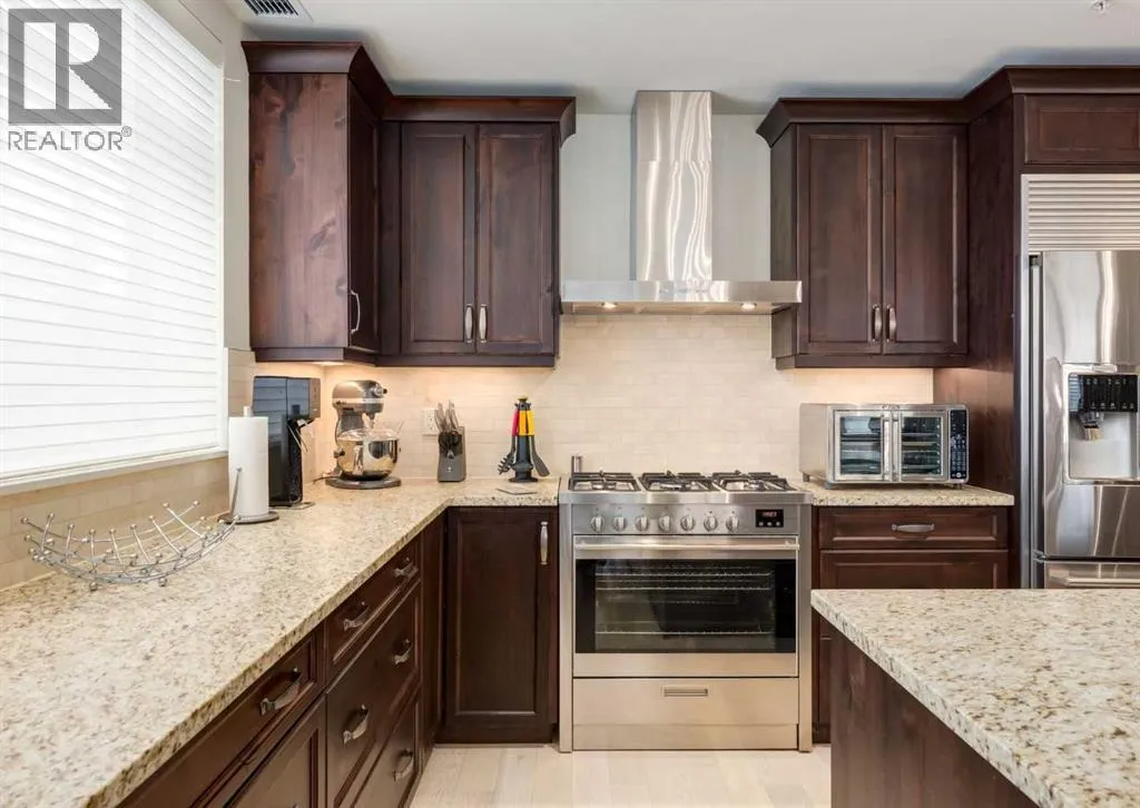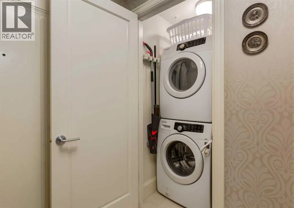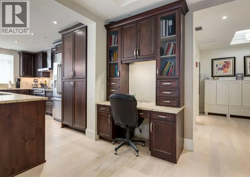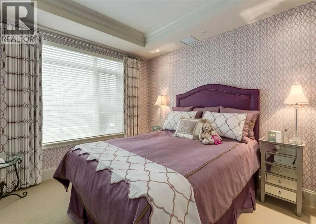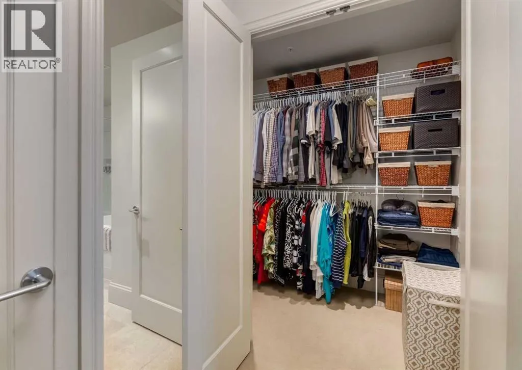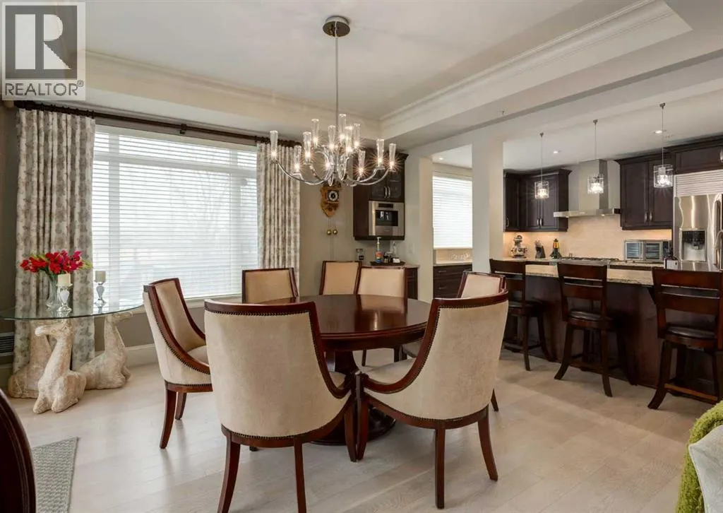 Coveted, Spectacular Corner Unit location on the main floor offering a harmonious blend of luxurious decor and natural beauty right outside your door. Unobstructed views of the Bow River and parkland, with lots of opportunity to ride your bike, walk and enjoy the outdoors and wildlife that wander close by for your enjoyment. Kitchen with plumbed-in coffee maker, gas stove, dishwasher, fridge, hood fan, microwave. Espresso color cabinetry and leathered granite countertops. Beautiful island overlooking dining and living rooms with an amazing view of the extensive yard & beyond the walking paths to the river. Breakfast bar seating for 4 with stools included. Lovely built-in desk with ample shelving. Engineered flooring (Arctic Oak). Water Feature! Custom draperies. All window blinds are motorized throughout. Bedrooms have black out drapes. (Custom window coverings) Primary bedroom with 5-piece bath and heated towel bar is very spacious with 2 sinks, tub/separate shower. Walk-in closet with ample, well designed shelving. 3-piece bathroom is shared with second bedroom for complete privacy or easy for visitors as well. Lots of built-in storage. Stacking washer/dryer. Gas outlet on patio. 2 Titled Parking Stalls/P2 included. 1 Titled Storage included. (A 3rd Parking Stall may be purchased from the seller but is Not Included). Bicycle storage included. Car wash. Pet friendly with board approval. Walk to Carburn Park. Easy access to major transportation routes, shopping, restaurants, YMCA and a lot more! Champagne is a wonderful, amazing condo complex. You are going to love it!! (id:27476)