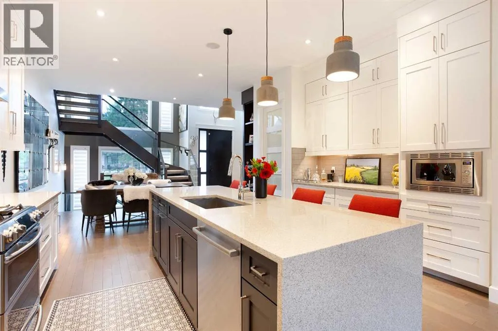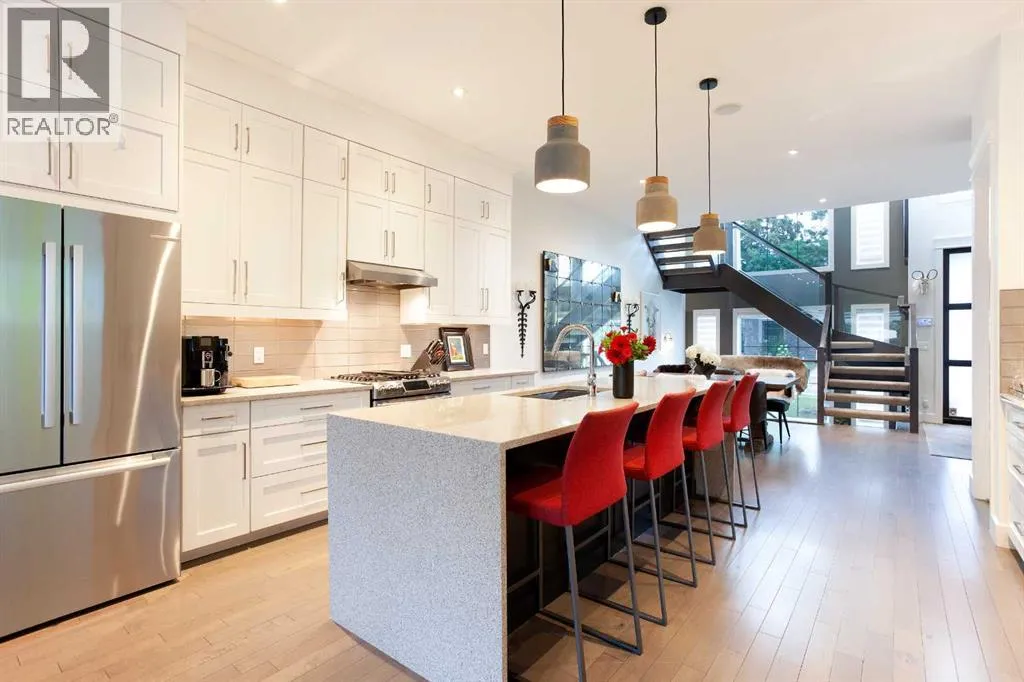Welcome to this beautifully maintained semi-detached home ideally located on one of the most desirable streets in Marda Loop / South Calgary, offering a rare combination of exceptional curb appeal, thoughtful upgrades, and a functional, light-filled layout. Featuring 4 bedrooms and 3.5 bathrooms, along with a double detached garage, gorgeous landscaping, and a sunny south-facing backyard, this home delivers both style and substance in one of Calgaryâs most vibrant inner-city communities.From the moment you arrive, the home impresses with its inviting exterior and mature landscaping, setting the tone for whatâs inside. Step through the front entry where a large, oversized closet provides excellent storage, leading into a uniquely designed floor plan that creates a seamless and beautifully flowing open-concept main level. The living, dining, and kitchen areas connect effortlessly and are anchored by a new electric fireplace, creating a warm and modern focal point that enhances both comfort and design, making the space ideal for everyday living and entertaining.The spacious kitchen is a standout feature, offering ample cabinetry, extensive counter space, and a large walk-in pantry, providing both functionality and convenience for home chefs and busy households alike. A well-designed mudroom with built-in closets adds further practicality, keeping daily essentials organized and easily accessible. The main floor is completed by a convenient 2-piece powder room.Upstairs, the home continues to impress with new carpet installed in 2025, adding comfort and a fresh, modern feel. The home and primary suite are enhanced with motorized custom blinds, including blackout functionality, creating a private and relaxing retreat, and features a well-appointed ensuite and walk-in closet. The second floor includes laundry, 2 additional well-sized bedrooms supported by a full bathroom, offering flexibility for families.The lower level is bright and welcoming, featuring a rec room with excellent natural daylight, a spacious fourth bedroom with a walk-in closet, and a full bathroom. The added comfort of in-floor heating makes this level ideal for guests, extended family, or a home office setup.This home has been thoughtfully updated and meticulously maintained, including a new washer/dryer combo (2025), new carpet (2025), new hot water tank (2023), and a Bosch refrigerator (2021), providing peace of mind and long-term value. Additional features such as air conditioning and built-in speakers throughout the living room, kitchen, primary bedroom, ensuite, and patio elevate both comfort and everyday living.Located just steps from the shops, restaurants, and amenities of Marda Loop, with easy access to downtown, parks, schools, and major routes, this home offers an unbeatable combination of inner-city convenience and residential charm.1911 31 Avenue SW is a rare opportunity to own a stylish, upgraded, and move-in-ready home in one of Calgaryâs most sought-after neighbourhoods. (id:27476)