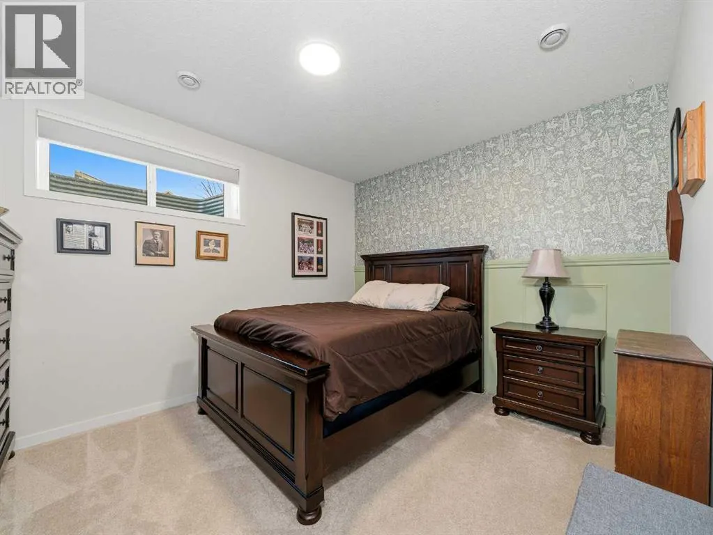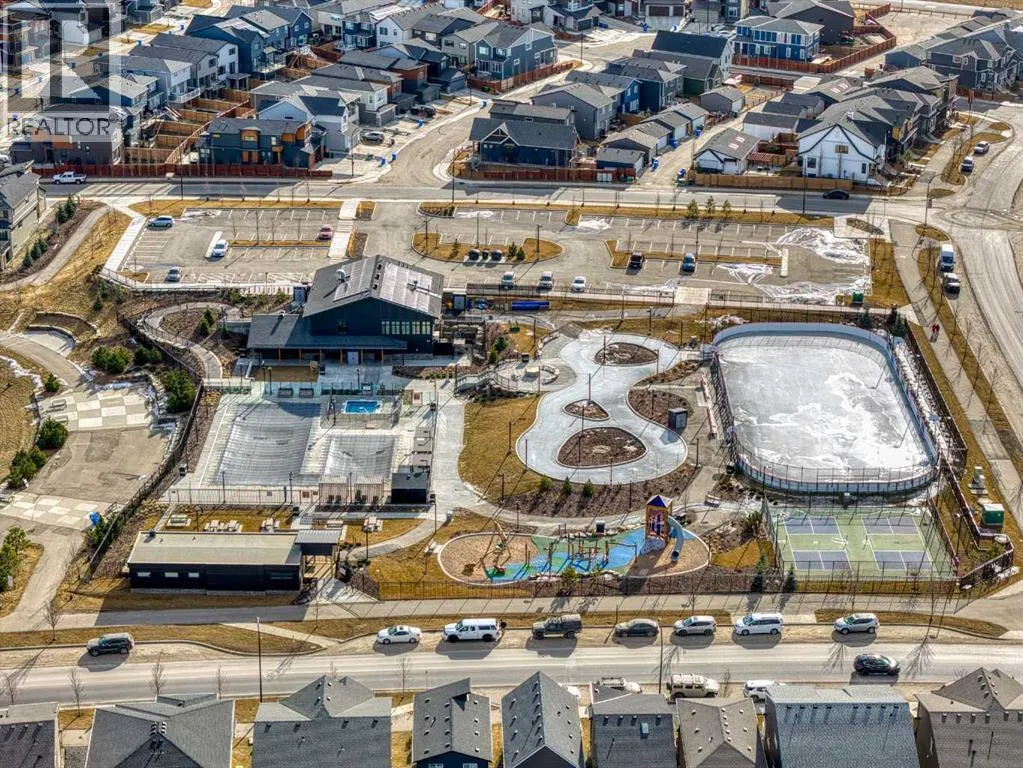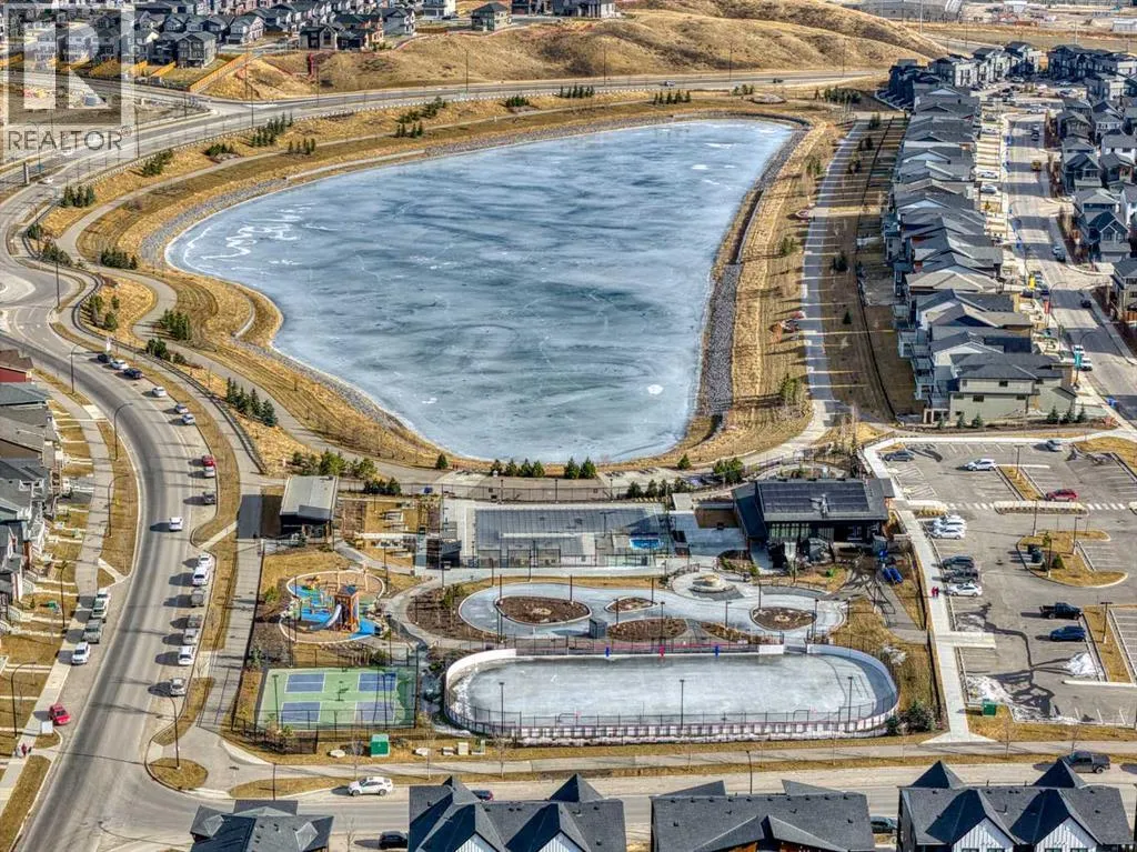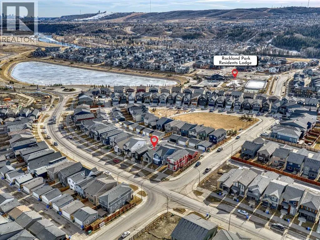 In Northwest Calgary's new Rockland Park community, this Morrison Homes bungalow offers easy maintenance without condo board rules, restrictions, or fees. Minimal exterior upkeepâjust the city sidewalk, short front path, tiny lawn patch, and small driveway to the rear garage. Perfect for downsizers. Offering over 1,954 sq. ft. of total living space, this 2022-built home features an open-concept main floor with vaulted ceilings from living room to kitchen and central air conditioning. Luxury vinyl plank flooring runs across the main level. The dining area sits adjacent to the kitchen, which has a quartz waterfall island with integrated sink and seating for four. The kitchen includes a stainless steel appliance package: gas cooktop, built-in oven, microwave, and dishwasher. Finishes continue into the primary bedroom with its ensuite bathroom featuring dual vanities on quartz countertops, hexagonal floor tile, glass-enclosed shower with dual fixtures, and soaker tub with tile surround. A large walk-in closet has built-in storage. The fully developed basement has a family room and two additional bedrooms, one used as a home office. Stacked washer and dryer are in an enclosed laundry area with storage for cleaning supplies. The basement bathroom matches the primary ensuite with tiled bathtub/shower and quartz vanity. The backyard has synthetic turf instead of grass. Steps from the back door is an oversized detached double garage, insulated and drywalled, with parking and storage space. Built in 2022, this home is protected by the Alberta New Home Warranty Program's 5- and 10-year warranties, covering building envelope, structural components, distribution systems (plumbing, electrical, heating), and more for peace of mind. Rockland Park owners enjoy exclusive lodge/park access (pool, hot tub, pickleball, playground, fire pit) plus proximity to Lynx Ridge Golf Course, walking paths, mountains, and highways. Schedule your showing today! (id:27476)