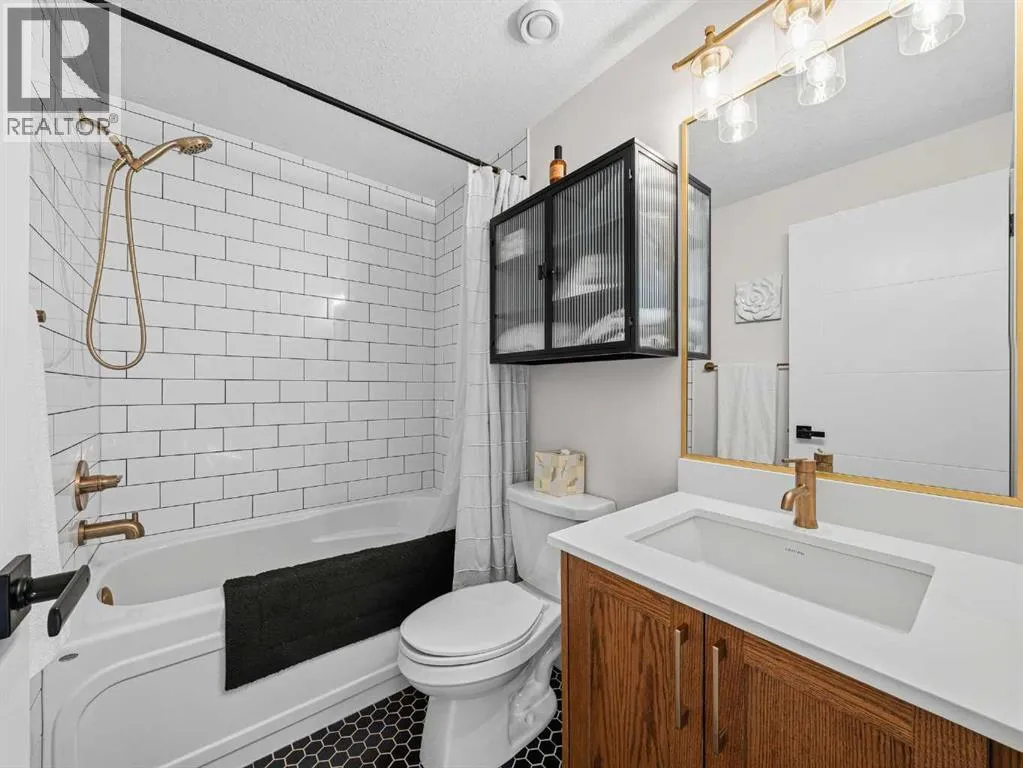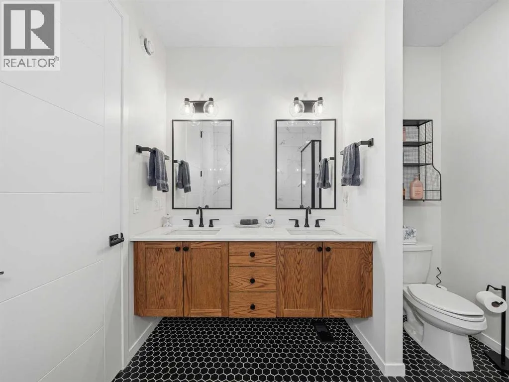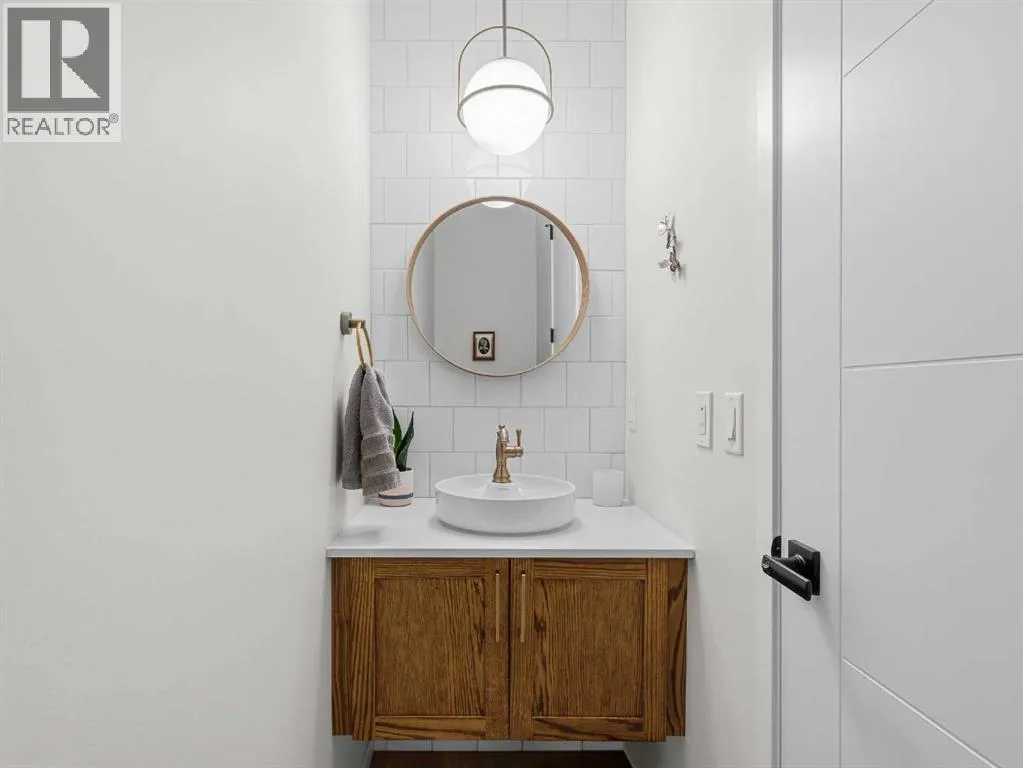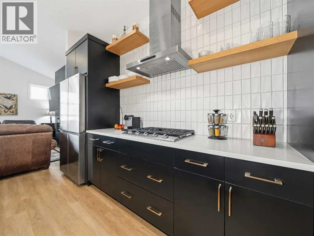 In Northwest Calgary's new Rockland Park community, this Morrison Homes bungalow offers easy maintenance without condo board rules, restrictions, or fees. Minimal exterior upkeepâjust the city sidewalk, short front path, tiny lawn patch, and small driveway to the rear garage. Perfect for downsizers. Offering over 1,954 sq. ft. of total living space, this 2022-built home features an open-concept main floor with vaulted ceilings from living room to kitchen and central air conditioning. Luxury vinyl plank flooring runs across the main level. The dining area sits adjacent to the kitchen, which has a quartz waterfall island with integrated sink and seating for four. The kitchen includes a stainless steel appliance package: gas cooktop, built-in oven, microwave, and dishwasher. Finishes continue into the primary bedroom with its ensuite bathroom featuring dual vanities on quartz countertops, hexagonal floor tile, glass-enclosed shower with dual fixtures, and soaker tub with tile surround. A large walk-in closet has built-in storage. The fully developed basement has a family room and two additional bedrooms, one used as a home office. Stacked washer and dryer are in an enclosed laundry area with storage for cleaning supplies. The basement bathroom matches the primary ensuite with tiled bathtub/shower and quartz vanity. The backyard has synthetic turf instead of grass. Steps from the back door is an oversized detached double garage, insulated and drywalled, with parking and storage space. Built in 2022, this home is protected by the Alberta New Home Warranty Program's 5- and 10-year warranties, covering building envelope, structural components, distribution systems (plumbing, electrical, heating), and more for peace of mind. Rockland Park owners enjoy exclusive lodge/park access (pool, hot tub, pickleball, playground, fire pit) plus proximity to Lynx Ridge Golf Course, walking paths, mountains, and highways. Schedule your showing today! (id:27476)