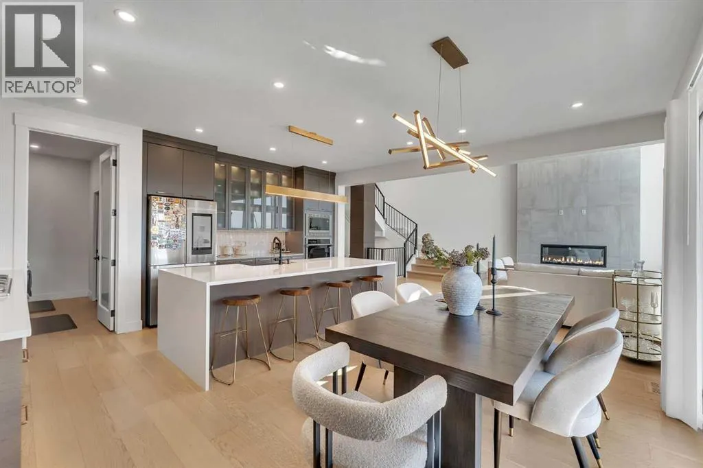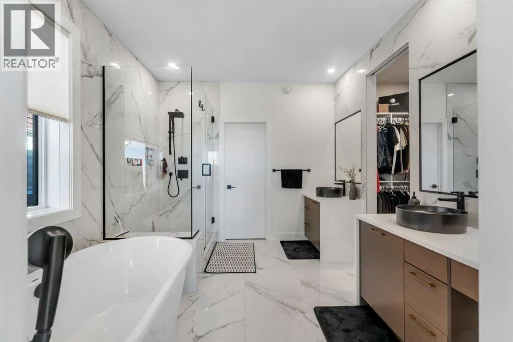 ONE OF THE BEST HOMES TO OWN IN LIVINGSTON!! CUSTOM BUILT BY MORRISON HOMES!! BACKING ONTO GREEN SPACE/POND & WALKING PATH!! WALKOUT BASEMENT!! SEPARATE ENTRANCE!! OVERSIZED DOUBLE ATTACHED GARAGE!! 4730+ SQFT OF LUXURIOUS LIVING SPACE!! 5 BEDROOMS 5 BATHROOMS!! 2 MASTER BEDROOM!! EVERY BEDROOM WITH WALK-IN CLOSET!! 10 FT GRAND ENTRY + 9 FT CEILINGS ON ALL FLOORS!! STAMPED CONCRETE IN BACKYARD!! Step into a stunning, light-filled main floor finished with engineered hardwood, featuring a spacious bedroom with walk-in closet and 3pc bath. A den, elegant living area with fireplace and soaring open-to-below ceilings, and a dining space with direct access to the deck create the perfect flow for both everyday living and entertaining. The chef-inspired kitchen is a true showpiece, complete with a MASSIVE waterfall island, high-end finishes, upgraded appliances, spice kitchen, and a walk-in pantry. The statement staircase leads you upstairs where 8 FT DOORS add to the upscale feel. This level offers 3 spacious bedrooms and 3 full baths, including TWO PRIMARY BEDROOMS each featuring luxurious 5pc ensuites with freestanding tubs and custom showers, along with California-style walk-in closets. AN ADDITIONAL VERSATILE ROOM â CURRENTLY USED AS A PRAYER ROOM â CAN EASILY BE USED AS A HOME OFFICE OR NURSERY!! And a generous bonus family room completes the upper level. The WALKOUT BASEMENT showcases modern hexagon flooring and offers a large bedroom with oversized windows and walk-in closet, a massive REC room with electric fireplace, wet bar, and an upgraded 4pc bath. THE BASEMENT STORAGE ROOM CAN EASILY BE USED AS A SECOND BEDROOM, ADDING EVEN MORE FUNCTIONAL LIVING SPACE! Step outside to a beautifully designed backyard with stamped concrete, two grass areas, and a deck with stairsâperfect for enjoying the serene green space, pond, and walking paths behind. LOADED WITH UPGRADES: 2 A/C UNITS, 2 FURNACES, WATER SOFTENER, SMART HOME FEATURES, CAMERA SYSTEM, WIFI-ENABLED APPLIANCES, ELECTRIC BLINDS, DIMMER LIGHTING, POT LIGHTS, UPGRADED BATHROOMS WITH FULL TILE, CUSTOM SHOWERS, OVERSIZED STAIRCASE, FINISHED GARAGE, OVERSIZED DRIVEWAY, AND MORE. THIS IS A RARE OPPORTUNITY TO OWN A FULLY UPGRADED LUXURY WALKOUT HOME BACKING ONTO NATUREâDONâT MISS IT!! (id:27476)