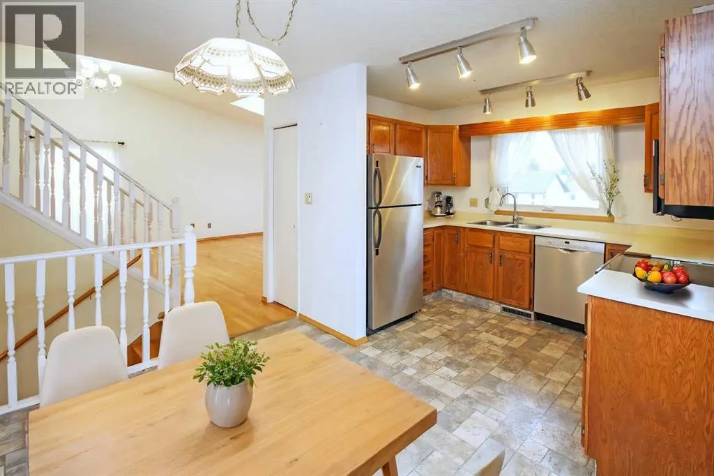 OPEN HOUSE Sat / Sun 1:00 - 4:00 pm Welcome to this well maintained 4 level split home with over 1980 sq ft of living space. Upon entry, the open concept main level showcases beautiful hardwood floors in the living and dining room with vaulted ceiling that add to the grandeur and an abundance of windows and skylight allowing lots of natural light. A spacious kitchen with a second eating area has patio doors leading you out to a big front and side decks that are great for BBQing and entertaining. The hardwood continues upstairs down the hallway and into the 3 spacious bedrooms. The master bedroom has a 4 piece ensuite and another 4 piece bathroom on the upper level. On the 3rd level gather in the family room in front of the gas fireplace for game night or dancing on the corner dance floor. This level is also home to another room for your home office/play area/recreation space or guest room with a 2 piece washroom and sink area. This room gives you easy access to the back deck and yard. Fully fenced backyard has lots of room to play and relax whether lounging or entertaining on the deck or playing in the yard. The fourth lower level is developed with another room with 2 large south facing windows great for a home office. Thereâs laundry area and access to the attached garage on this level. As well as a huge crawl space for storage. Upgrades include: furnace (2008), windows (2014), metal roof 50 yr warranty (2008), R50 insulation (2012), deck (2009), poly-b removed (2010), fireplace gas insert (2008), skylight (2014), leaf guards (2023). Woodbine is a great community with great schools. Easy access to Stoney Tr, Fish Creek Park, Costco and close to local amenities and schools, a great place to call home! (id:27476)