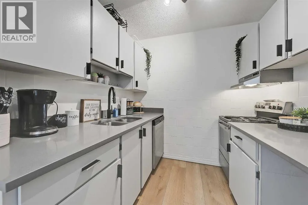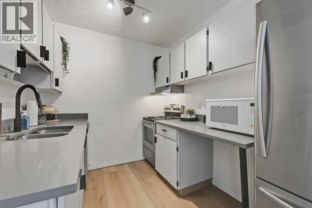 LOVELY UPDATED 2 BEDROOM END UNIT | PRIME INNER-CITY LOCATION | PANORAMIC WEST VIEW!This updated 2-bedroom condominium in Kensington Court offers a spacious layout, beautiful west-facing view, pet-friendly living and the added benefit of end-unit privacy with only one shared non-bedroom wall, all in an unbeatable location near downtown, transit, parks and all the lifestyle amenities that make Hillhurst/Kensington such a special place to call home. Whether you are an investor looking for a strong revenue property or a student or professional seeking comfortable inner-city living, this home checks all the right boxes.The unit itself offers a comfortable and functional layout with a panoramic view that brings in natural light and adds to the sense of space throughout the main living area. The dining room is generously sized and easily accommodates a full dining set, while the adjacent living room provides plenty of room to relax or entertain. The galley-style kitchen has been thoughtfully updated with quartz countertops, newer stainless steel appliances, updated matte black hardware, refreshed cabinetry, a double undermount sink with pull-down sprayer and a pantry storage. Both bedrooms are spacious and feature full-height double closets along with larger west-facing windows. The updated 4-piece bathroom includes a newer vanity and toilet, oversized mirror and modern lighting. Finishing touches such as luxury vinyl plank flooring, newer paint, venetian blinds, ceiling fans in both bedrooms, a roomy front entry and a rare in-suite storage room that offers secure, practical space for bikes, seasonal items and everyday extras. Convenience continues beyond the unit with a covered parking stall directly beside the rear entrance, one of only a handful in the complex, and laundry facilities available on every floor of the building.Beyond the unit, this location truly shines. You are within walking distance to Riley Park, the Sunnyside LRT station, the Bow River pathway system and Princeâs Island Park, with the energy and charm of Kensington Village just moments away. Spend your weekends exploring local favourites like Hayden Block, The Mash, Blanco Cantina, Pie Junkie, Higher Ground, Deville Coffee, Pages on Kensington, Hot Wax Records and The Plaza Theatre, while everyday essentials including Safeway and Shoppers Drug Mart are just around the corner. A smart investment and a fantastic place to live, all in one exceptional inner-city location. (id:27476)