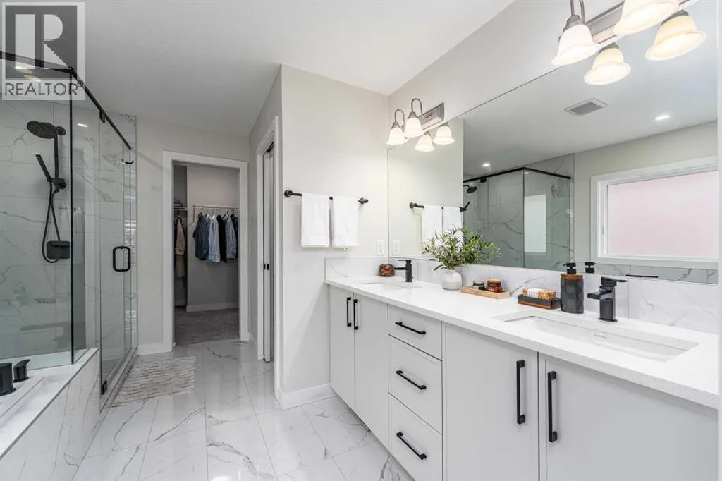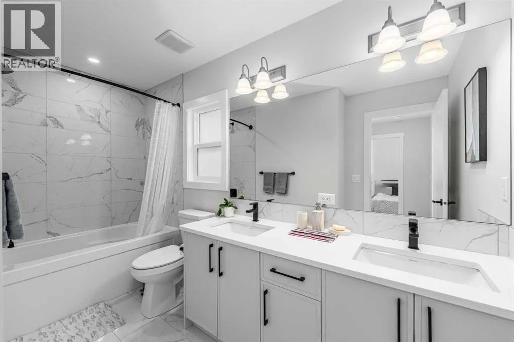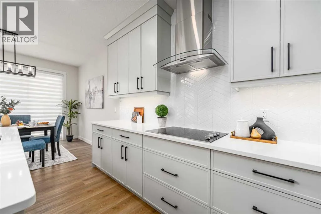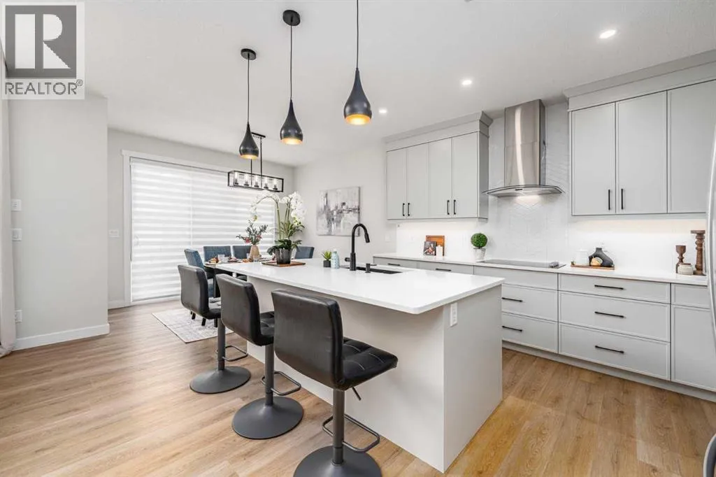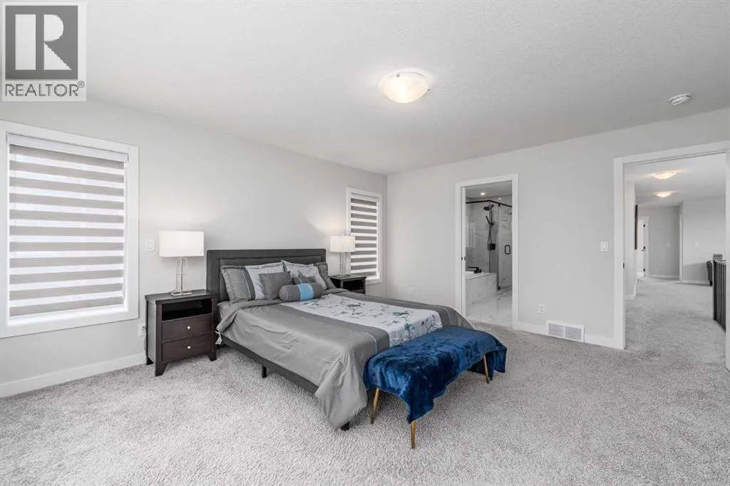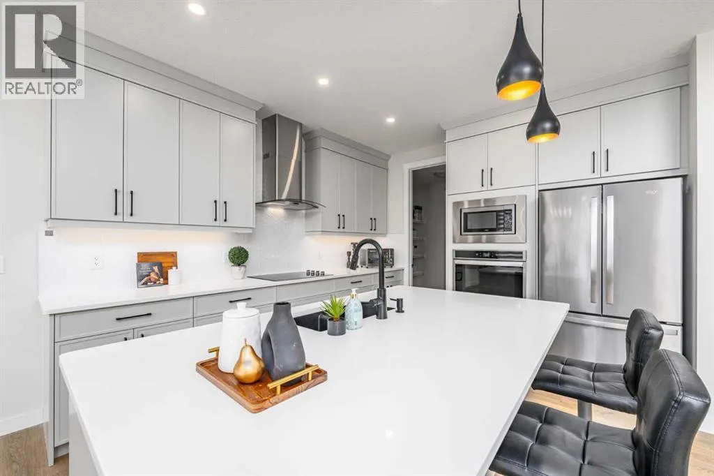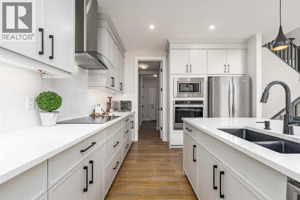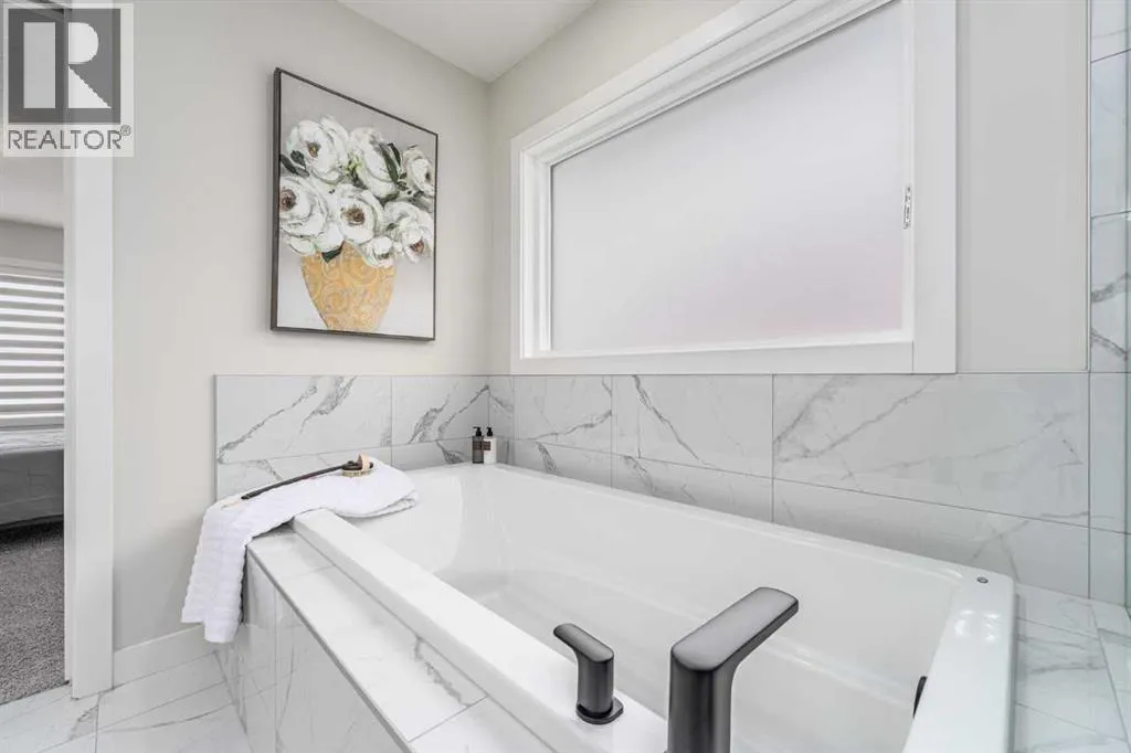 Welcome to this beautifully designed home situated on a rare 36-foot wide conventional lot with convenient side access on both sidesâoffering more space and privacy compared to zero lot line properties. Extensively enhanced with tons of premium builder upgrades and meticulous owner improvements, this home offers unparalleled value and quality. Located just steps from the communityâs only pond, this home provides a peaceful setting ideal for daily walks and outdoor enjoyment. The main floor impresses with 9-foot ceilings and upgraded 8-foot interior doors throughout, creating a grand and airy atmosphere. The stunning 17-foot living room is filled with natural light and features a cozy gas fireplace, along with custom motorized blinds for effortless comfort and convenience. The modern kitchen is truly the heart of the homeâfeaturing full-height cabinetry, a massive island, built-in oven and microwave, and a sleek, upscale color palette accented by black hardware, faucet, and sink. A bright main floor office with a window offers the perfect work-from-home setup, complete with a stylish barn door upgrade. A convenient powder room completes this level. Step outside to a professionally finished backyard featuring a fully permitted deck, ready for summer entertaining. Upstairs, elegant wooden spindle railings overlook the stunning open-to-below living space, enhancing the homeâs sense of openness. The spacious bonus room is bright and versatile, with a direct view of the high ceiling belowâperfect as an entertainment or family space. The primary bedroom is filled with natural light, featuring one large window along with two additional upgraded picture windows, creating a bright and inviting retreat, complete with modern zebra blinds. The luxurious ensuite includes a double vanity, a relaxing soaker tub, and an upgraded glass shower, complemented by a generously sized walk-in closet. Two additional bedrooms are both bright and thoughtfully designed with extra windows, an d they share a clean, well-appointed bathroom. The upper-level laundry room is impressively spacious and includes a sink for added convenience. The basement offers 9-foot ceilings and two windows, including one oversized window, bringing in abundant natural light and providing an excellent foundation for future developmentâwhether you envision a recreation space, additional bedrooms, or more living space tailored to your needs. Located in the growing community of Ambleton, this home offers excellent convenience with major amenities including T&T Supermarket, Walmart, and Costco all within approximately 10 minutes. Enjoy quick access to 144 Ave just 1 minute away, and reach Stoney Trail in about 5 minutesâmaking it easy to commute to all parts of the city. (id:27476)