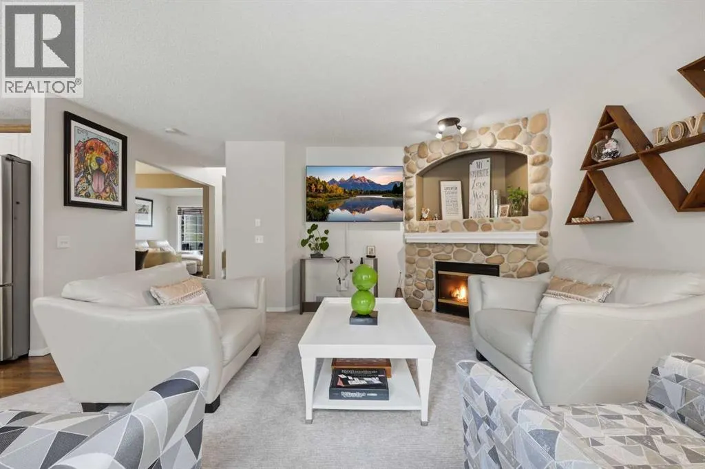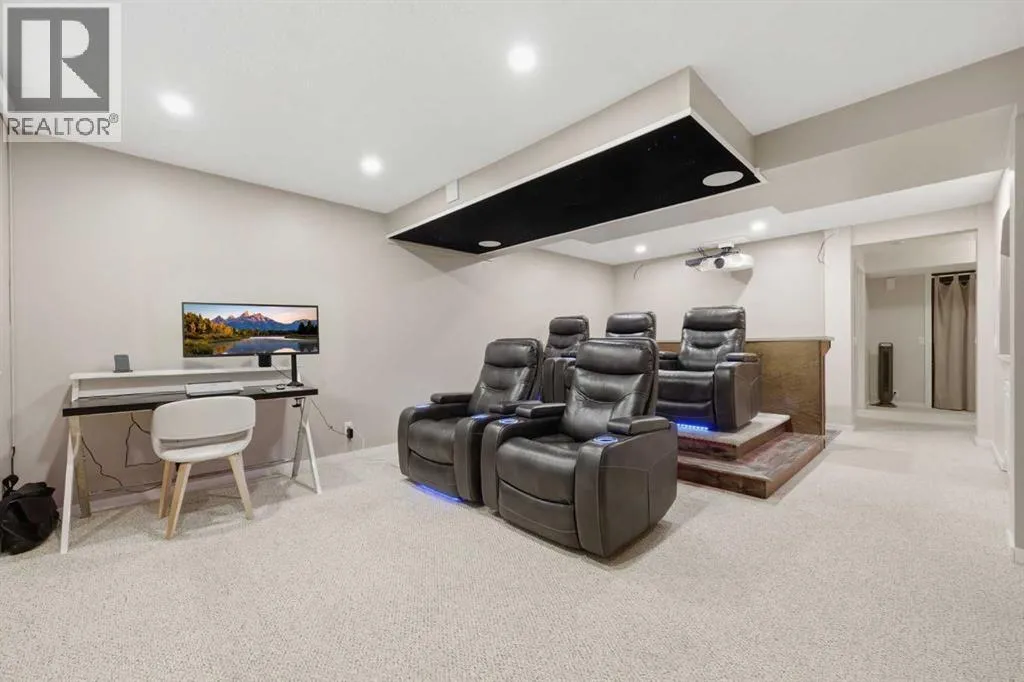 OPEN HOUSE SATURDAY MARCH 28, 12:00-3:00 Welcome to this beautifully fully developed detached home offering nearly 2,900 sq ft of total living space in a highly sought-after, mature SW communityâjust steps from Fish Creek Park! From the moment you enter, youâre greeted by a stunning two-storey foyer that sets the tone for this spacious and well-designed home. The main floor features a formal dining room, perfect for entertaining, along with a bright and inviting living room complete with a gas-powered stone fireplace. The modern kitchen is a true centerpiece, showcasing white cabinetry, granite countertops, a gas stove, and a large island with breakfast barâideal for family gatherings and everyday living. Youâll also appreciate the hardwood floors and brand new carpet throughout the main level. A versatile flex room adds extra functionality and can easily serve as a home office, mudroom, or even a custom dog wash space. Upstairs, youâll find brand new laminate flooring throughout, a generous primary retreat with a full ensuite bathroom, two additional well-sized bedrooms, and another full bath. The convenient upper-floor laundry room makes daily living even easier. The fully finished basement expands your living space with two additional bedrooms, a full bathroom, and an incredible theatre room complete with projector and screenâall included. Custom ceiling lighting creates the perfect ambiance for movie nights. Thereâs even a built-in climbing wall in one of the bedrooms, making this home especially fun and functional for active families. Outside, enjoy your own private backyard oasis with mature trees and lush landscaping providing excellent summer privacy. A large back deck and welcoming front porch offer great spaces to relax or entertain. Additional highlights include a newer roof with Class 4 impact-rated shingles and a 50-year warranty, adding long-term value and peace of mind. Ideally located within walking distance to Fish Creek Park, close to shopp ing and dining, including Taza Park, and offering easy access to transit, the C-Train, and just a 20-minute commute to downtownâthis home truly combines space, comfort, and convenience in one exceptional package. (id:27476)