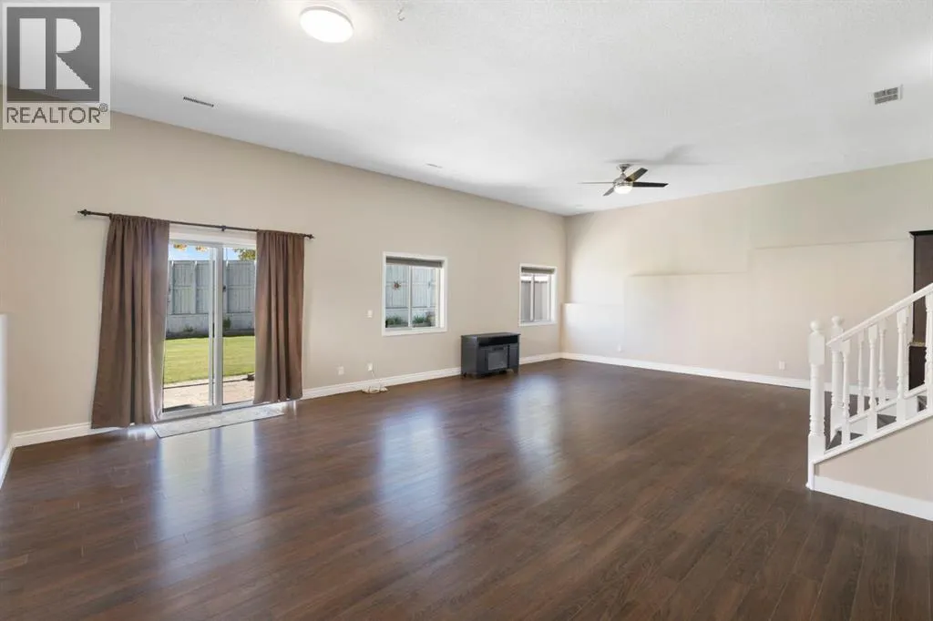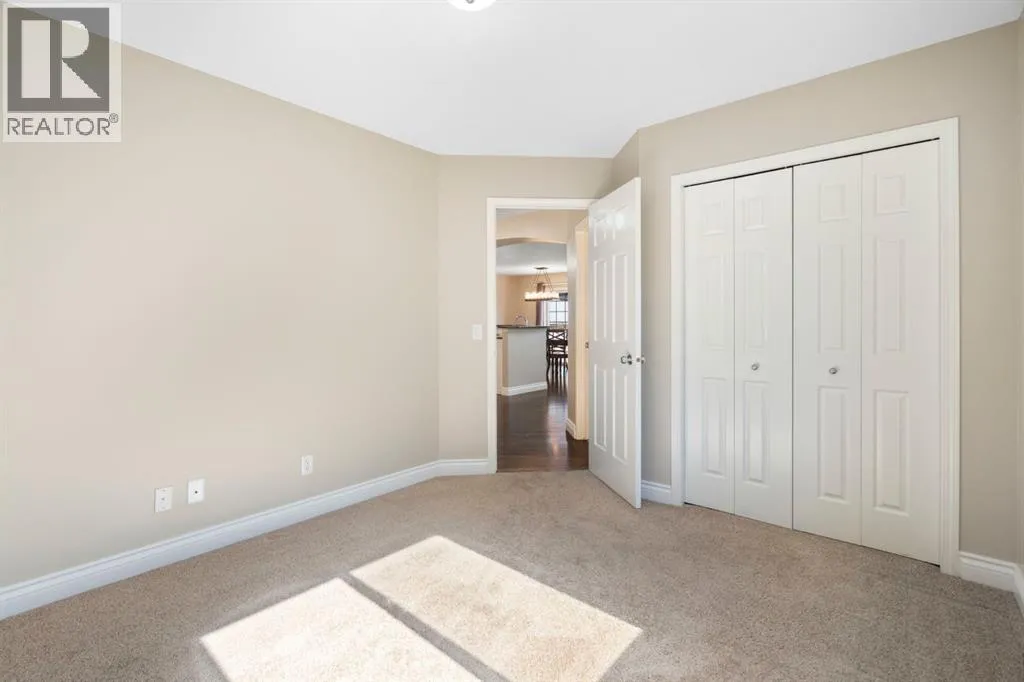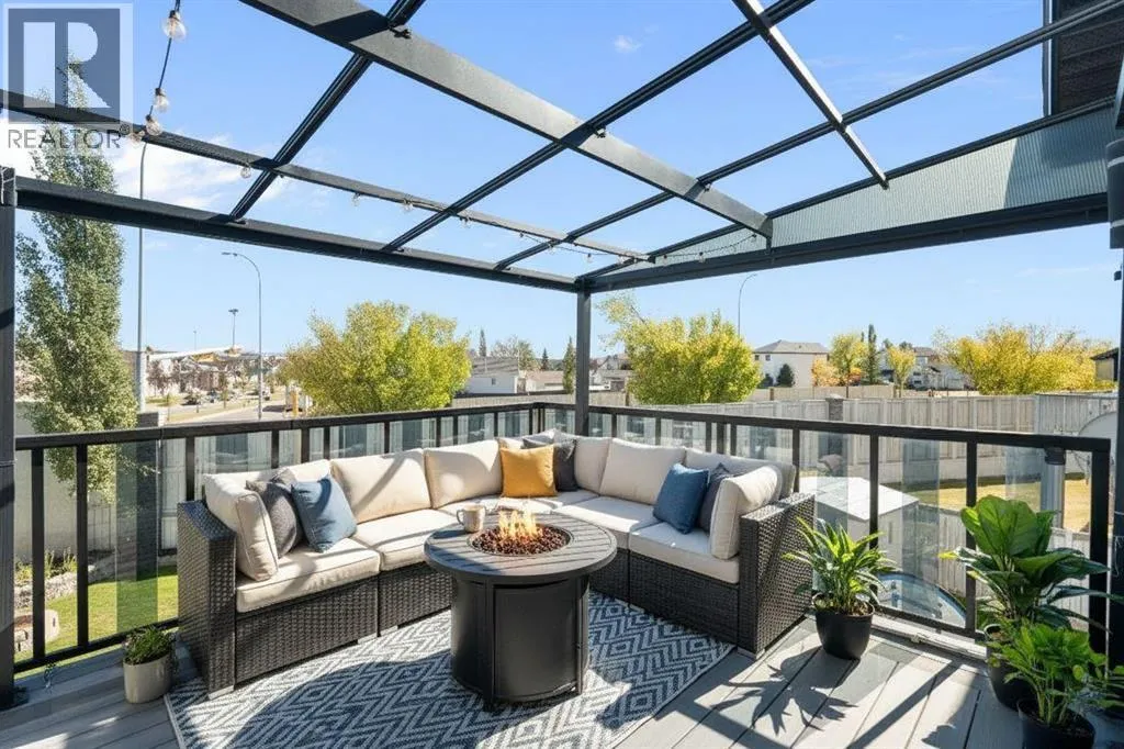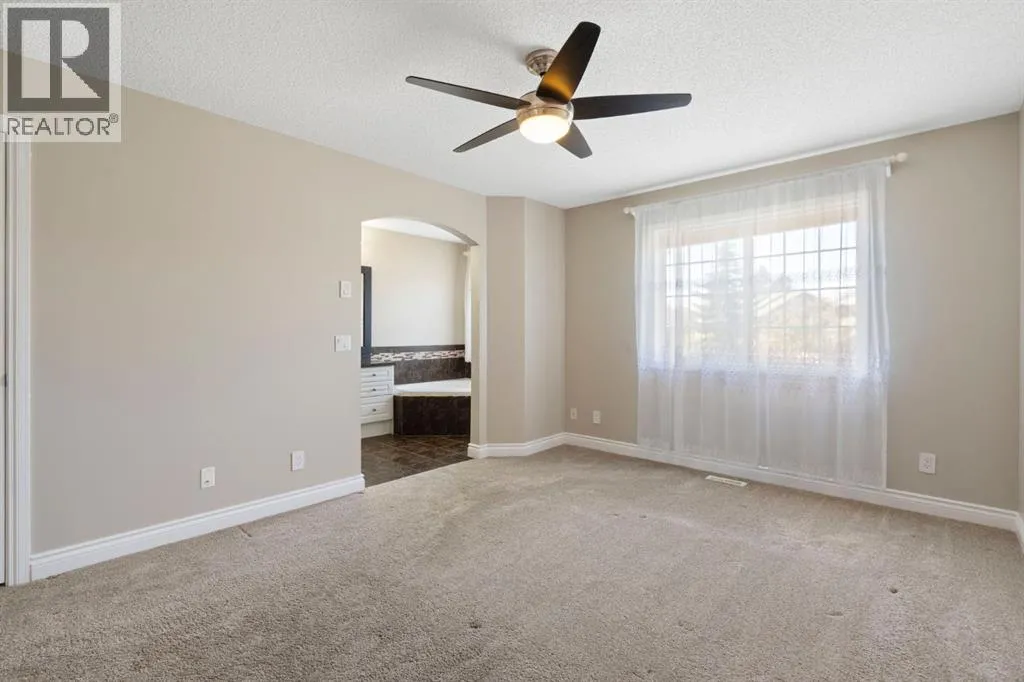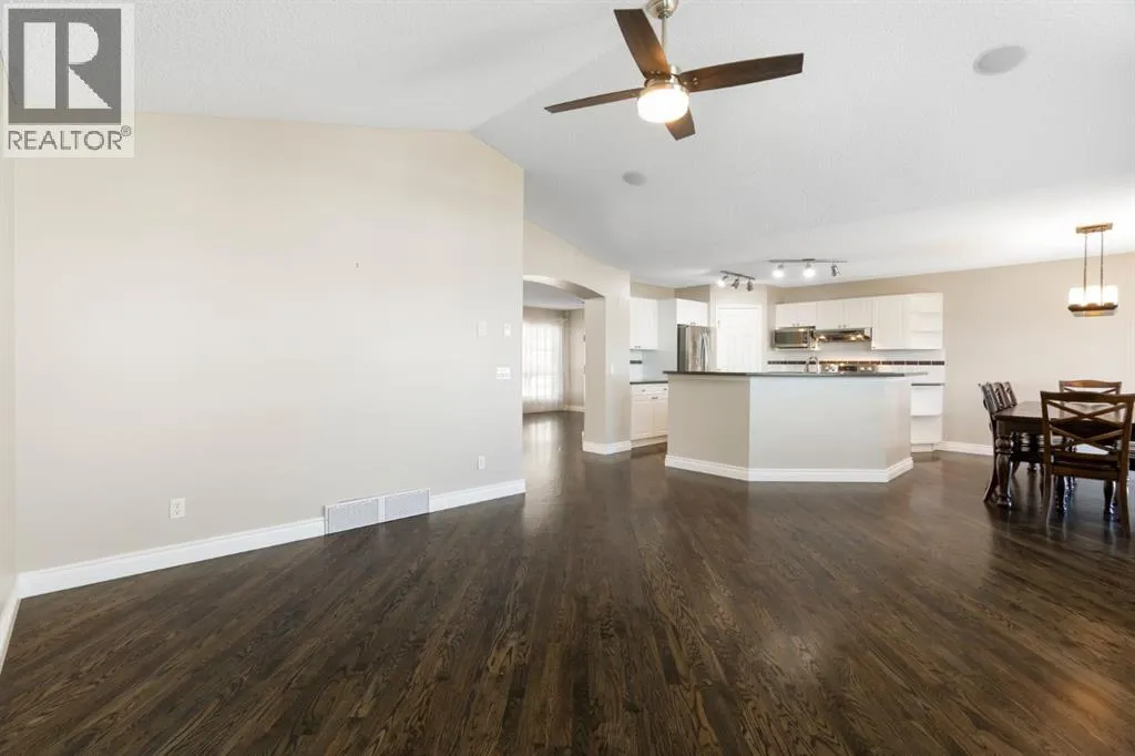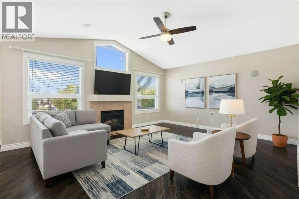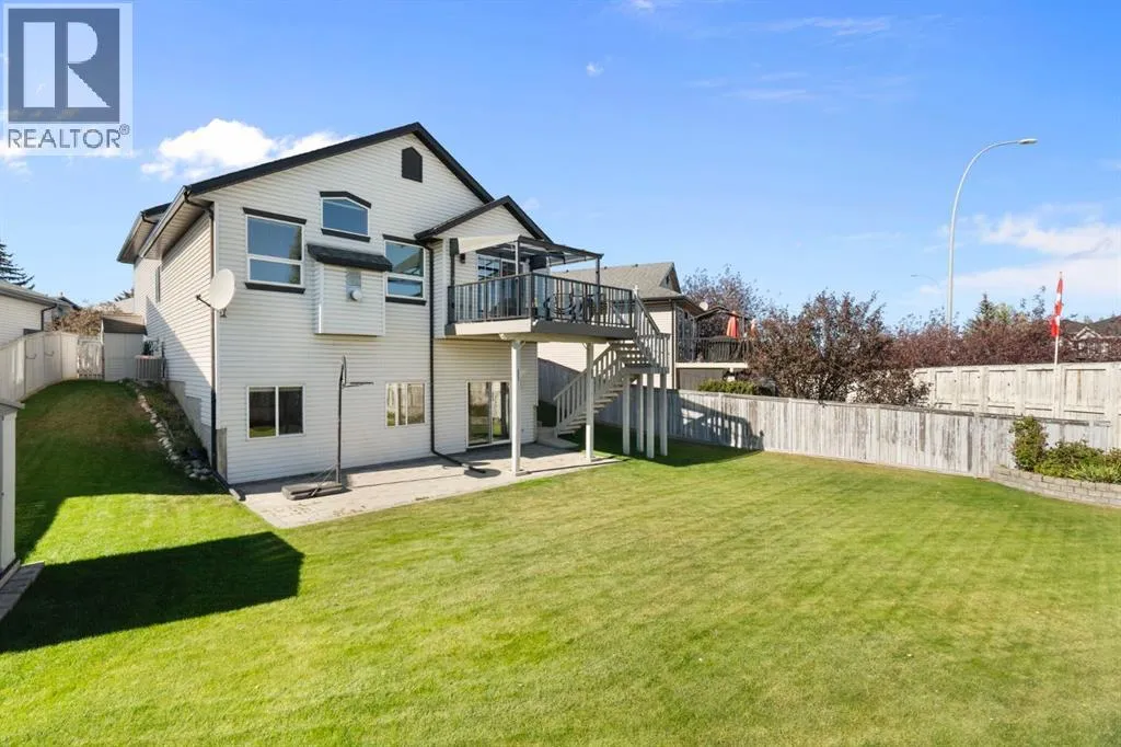 Incredible custom-built home on a pie-shaped lot in desirable Panorama Hills! The main floor features stunning site-finished, ebony-stained red oak hardwood floors and soaring vaulted ceilings with built-in speakers, creating a warm and inviting living space centred around a gas fireplace and triple-pane windows. The kitchen impresses with Corian countertops, an under mount sink, and recently upgraded stainless steel appliances, flowing seamlessly into the dining and living areas that overlook the spacious nook and massive backyard. The main floor also features an updated 4-piece bath, a large bedroom, a flexible second bedroom or office, and an additional flex space/living room off the kitchen. Upstairs, the primary suite is a true retreat with a walk-in closet with custom shelving and a renovated ensuite boasting a corner jetted tub, separate shower, and Corian counters. The walkout basement is an entertainerâs dream, featuring 12-foot ceilings ideal for a pool table or large recreational area, a dry bar, a full 3-piece bathroom, and direct access to a paving stone patio. Step outside to a massive backyard with mature landscaping, underground sprinklers, perennials, two sheds, and a composite deck with glass railing and natural gas BBQ hookup. A thoughtfully designed concrete staircase on the side of the home leads to the basement entrance through sliding patio doors. With a brand new roof and eves troughs (2025), triple-pane windows, AC, fresh paint, updated lighting, a professionally cleaned home and carpets, and a garage with sturdy plywood walls, this home is truly move-in ready. Donât miss your chance to live in this thoughtfully upgraded, elegant, and spacious home in Panorama Hillsâperfect for entertaining, relaxing, and enjoying every comfort. (id:27476)