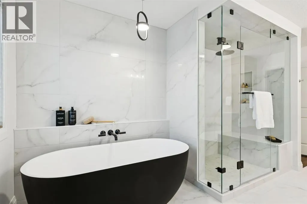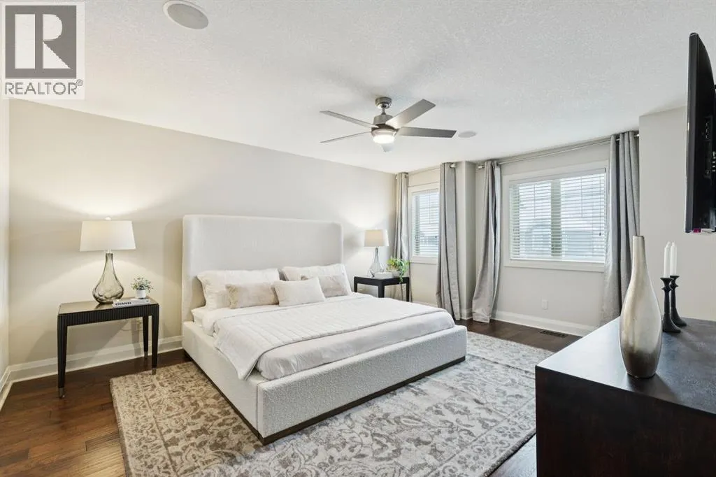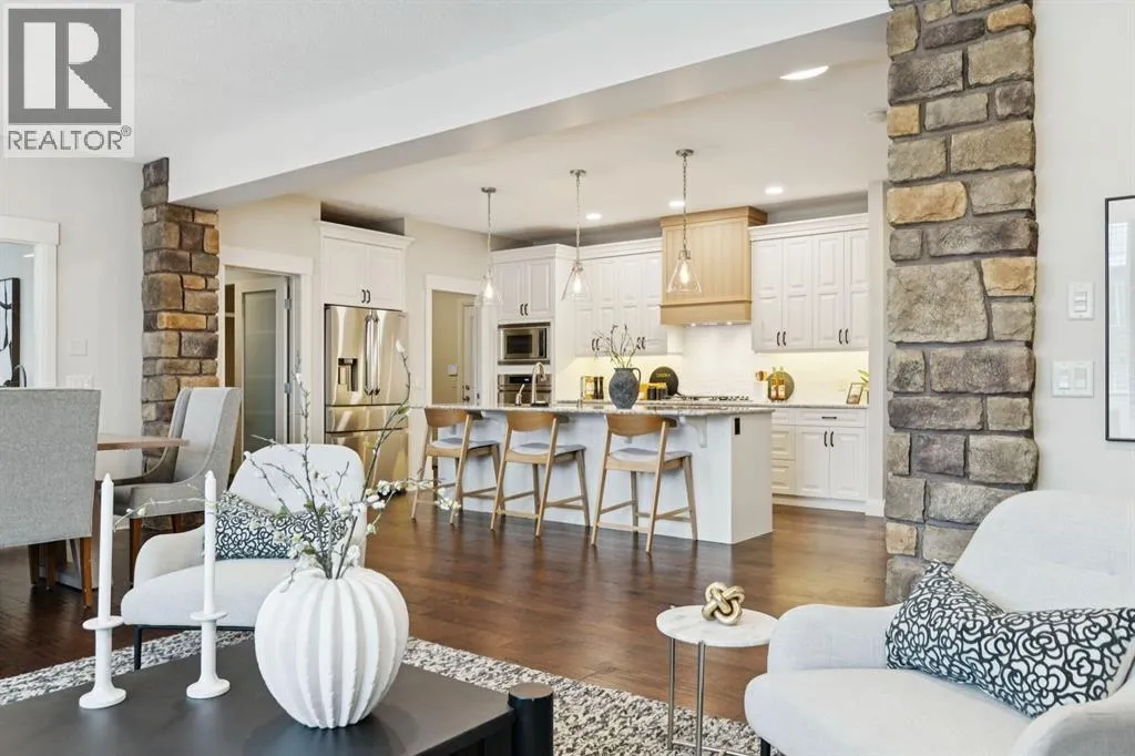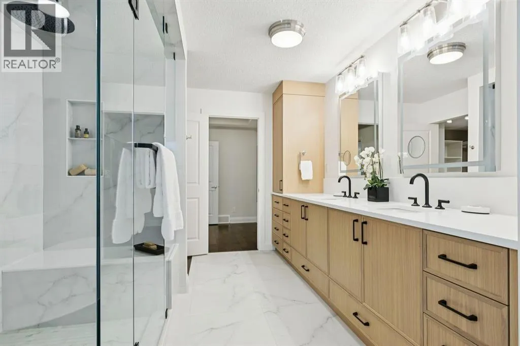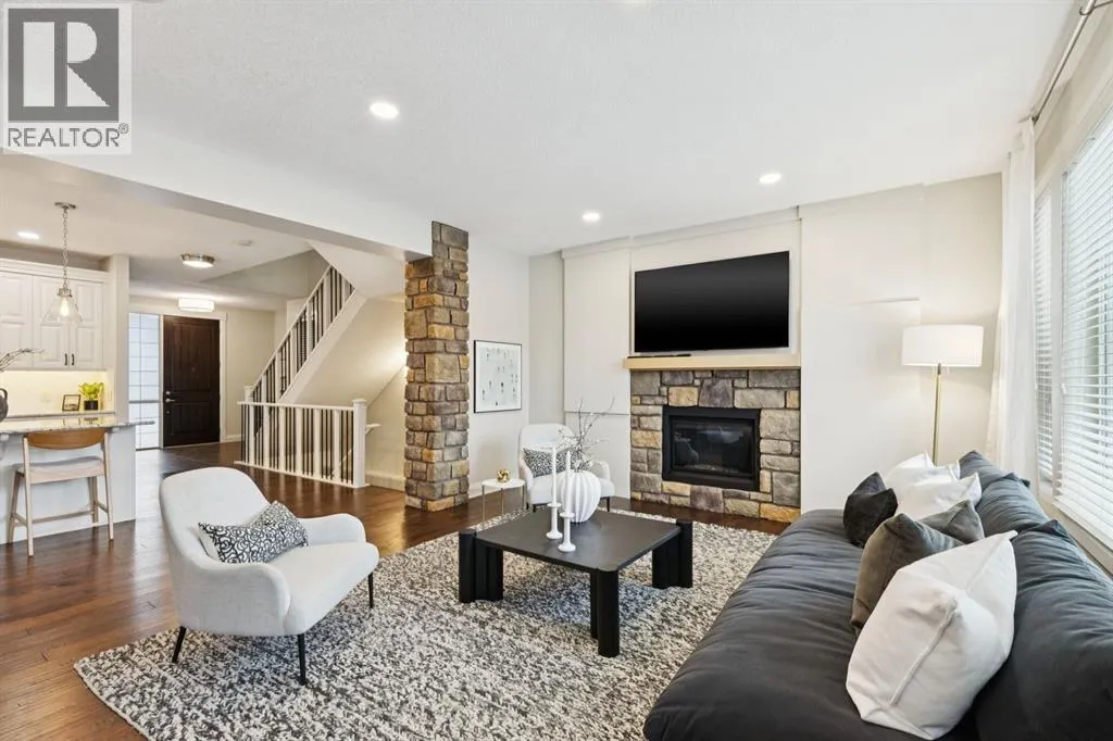 This beautifully updated home in one of Aspenâs most desirable pockets offers the kind of effortless lifestyle todayâs families are looking for with recent renovations, an immaculate turn-key condition, and ready to you to simply move in and enjoy. From the moment you step inside, the home feels warm, inviting, and thoughtfully designed for everyday living. An open-concept main floor seamlessly connects the living, dining, and kitchen spaces, making it ideal for both relaxed family time and entertaining. The living room is anchored by a fireplace and framed by large windows that fill the space with natural light, while the dining area opens onto a generous west-facing deck, perfect for summer evenings and sunset dinners. Just off the dining area, a tucked-away home office sits behind French doors, complete with built-in desks for two, and designer wallpaper. Itâs the perfect place to work from home or keep an eye on homework while staying connected to the heart of the house. The kitchen is timeless and functional, designed with both beauty and practicality in mind. A large central island with seating invites gathering, while a gas cooktop, wall oven, and a well-appointed pantry with additional fridge/freezer make it a dream for home chefs. The pantry conveniently connects to an organized mudroom and out to the triple garage, making daily routines seamless. Upstairs, a cozy loft offers a flexible space for kids to relax or watch TV. Down the hallway, the primary suite is a luxurious retreat, featuring a spacious walk-in closet and a gorgeous, newly renovated ensuite with in-floor heating, a soaker tub, oversized shower, double vanities, water closet, high end finishes and stylish fixtures. Two additional bedrooms each offer their own walk-in closets and ensuites, offering privacy and space for each family member. A well-equipped laundry room with sink, storage, and drying rod adds everyday convenience. The fully developed basement expands your living space with a med ia room, home gym, fourth bedroom, and full bathroom. Outside, the west-facing backyard is beautifully landscaped for privacy, creating a serene setting to unwind at the end of the day. Additional features of note include updated cabinetry, a recent paint refresh, air conditioning, and Gemstone exterior lighting that enhances curb appeal. This home is ideally located just minutes from the shops and restaurants of Aspen Landing, top-tier schools like Rundle College, Calgary Academy, and Webber Academy. As well, Ernest Manning High School, Westside Recreation Centre, the C-Train, and Stoney Trail are only moments away. This is a home that truly balances lifestyle, location, and design. (id:27476)