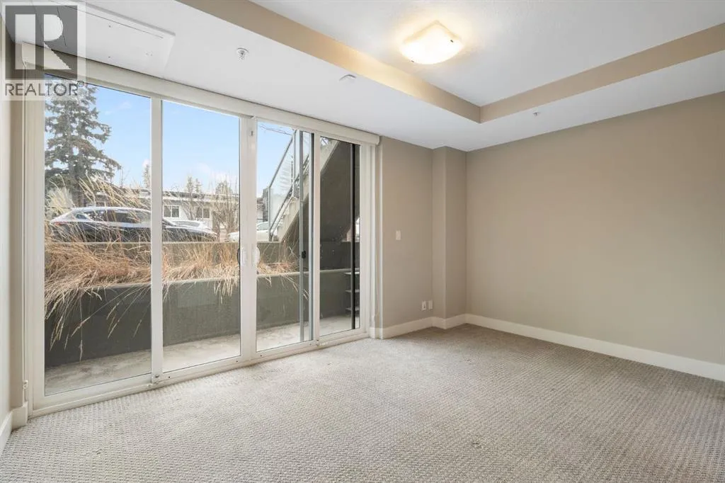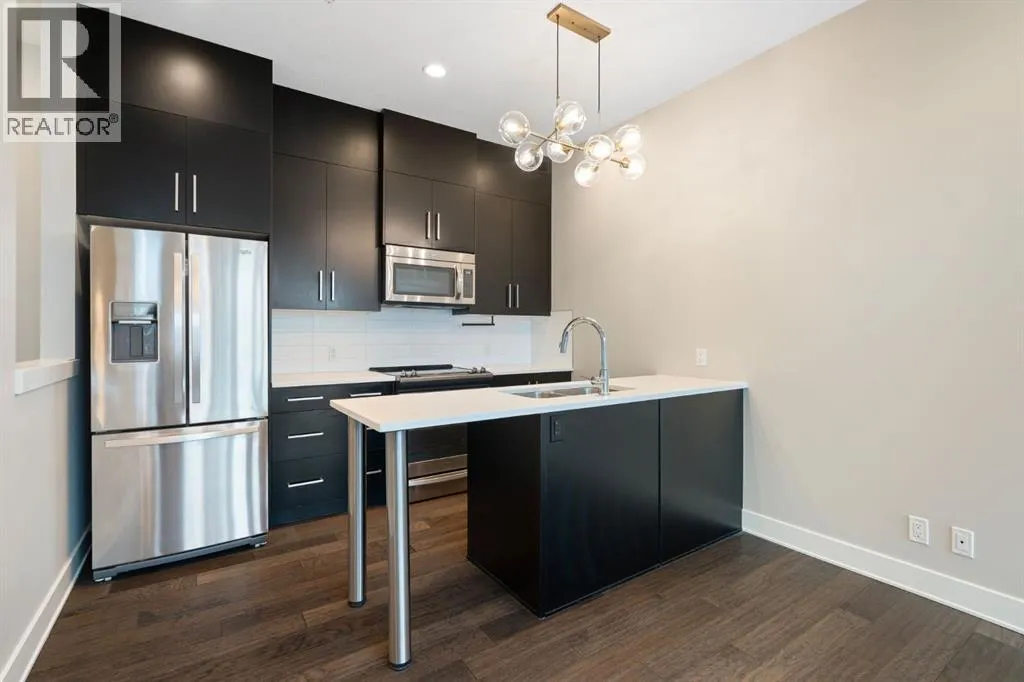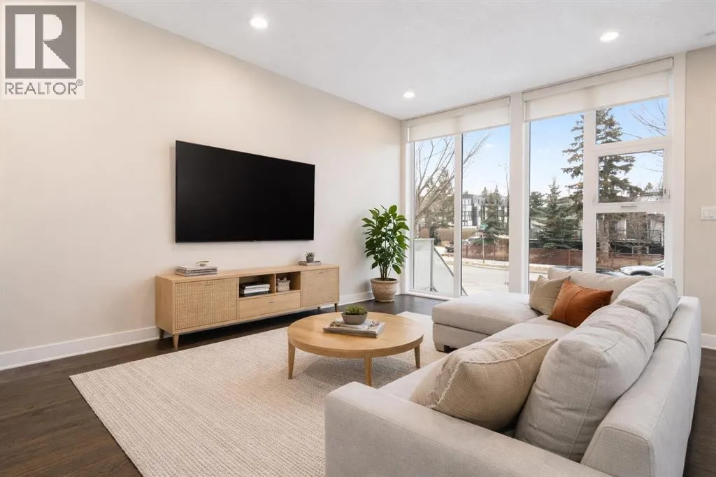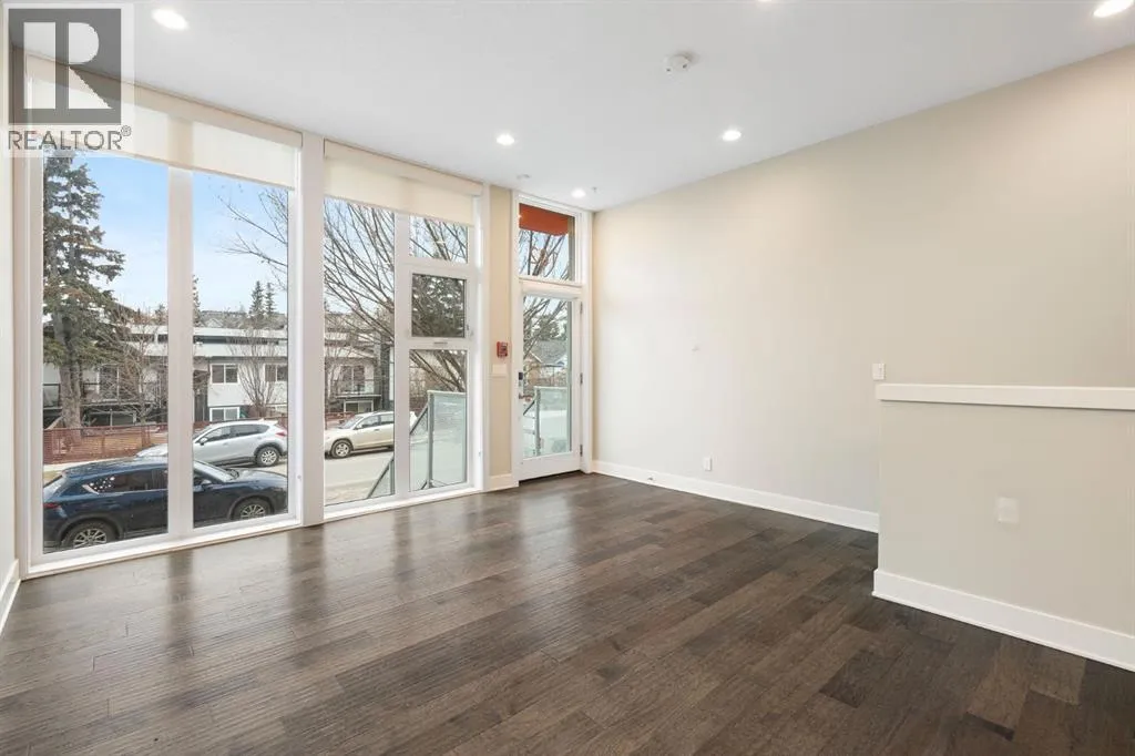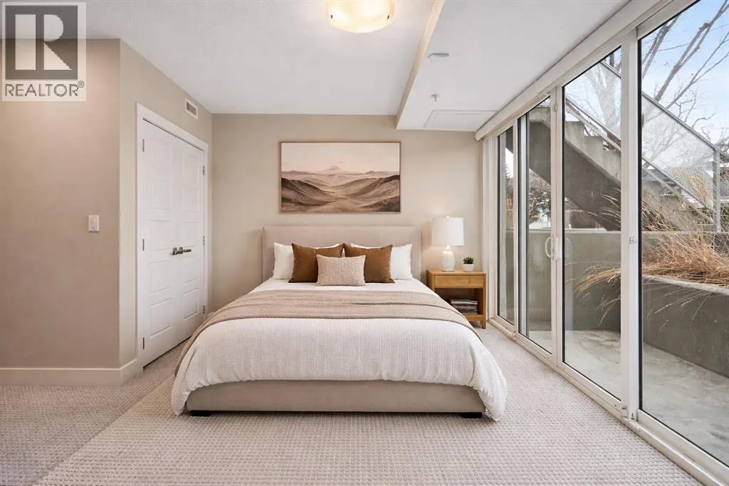Looking for a contemporary inner city home, but with an architectural twist? You won't want to mis this amazing Jeremy Sturgess designed place, offering just under 650 sqft of living space, in one of the most sought after locations in the inner city. Welcome home to GLAS. This is a home set apart from the others with its durable concrete and steel construction, providing enhanced fire safety, soundproofing and eco-sustainability. Enjoy the radiant in-floor heating system and the floor-to-ceiling windows, which bring the outside in; this south facing unit is awash with natural light and views of the peaceful, tree-lined streetscape. Step through the private front door into the open floorplan with hight ceilings, hardwood floors, and an amazing kitchen that boasts stone counters, stainless steel appliances, solid maple cabinetry, and a breakfast bar. On the lower floor, there is a gorgeously appointed four piece bathroom, a storage/laundry room, and a massive bedroom that opens onto a large walk-out patio. Everything is top end with smart wiring for remote work, in suite laundry, low condo fees for hassle-free, maintenance-free living. Situated in the heart of Marda Loop, you're just steps from the neighbourhood shops, pubs, and restaurants. A few more steps and you're right in the action of 17th Ave, and The Core awaits just beyond. Looking for something a bit more elevated in the market? Tired of seeing the same tired layouts again and again? Maybe it's time to check out GLAS. (id:27476)