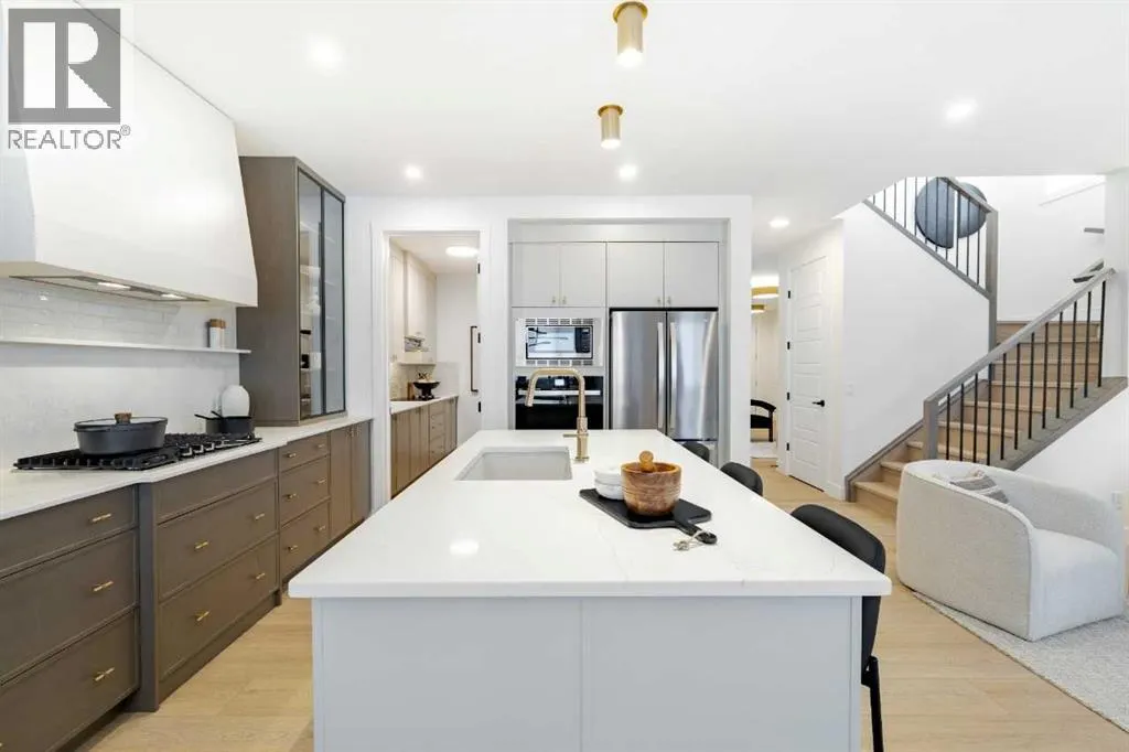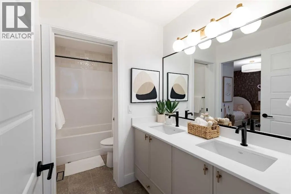 Welcome to the custom Saffron II by Shane Homes, a pre-construction home backing onto greenspace and a pond, offering a rare combination of location, space, and flexibility. Legal Suite included.The main floor features a spacious living room with electric fireplace, a cozy sitting nook, and a versatile lifestyle room with a closet and full bathroom, ideal for guests. The kitchen includes a spice kitchen, and the rear vinyl deck provides a great space to enjoy the views.Upstairs offers 4 bedrooms plus a central family room. The primary bedroom includes a walk-in closet and a 5-piece ensuite, along with the convenience of an upper floor laundry room.The walkout basement backs onto the pond and includes a concrete patio. Legal Basement Suite included in pricing. This home is loaded with upgrades including James Hardie siding, tiled bathrooms, undermount sinks, cabinet risers, and more. Photos are representative. (id:27476)