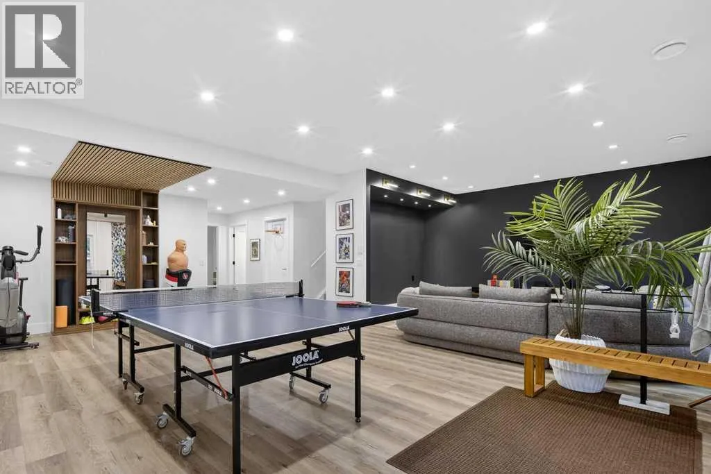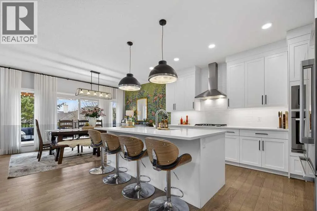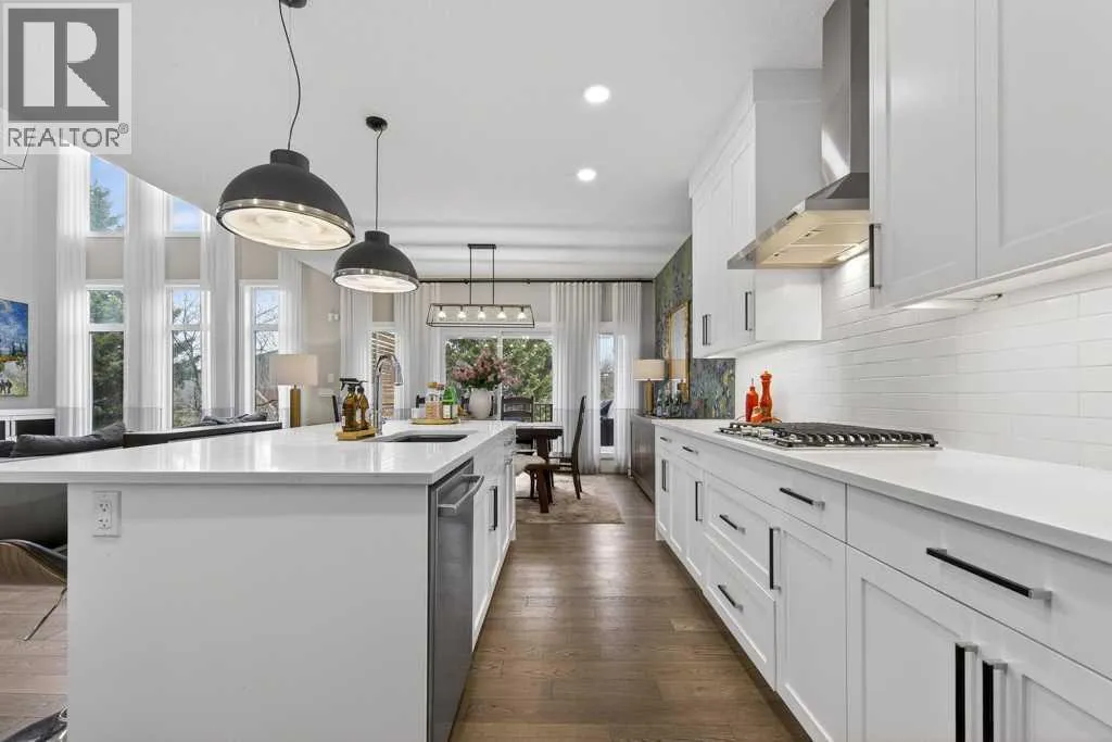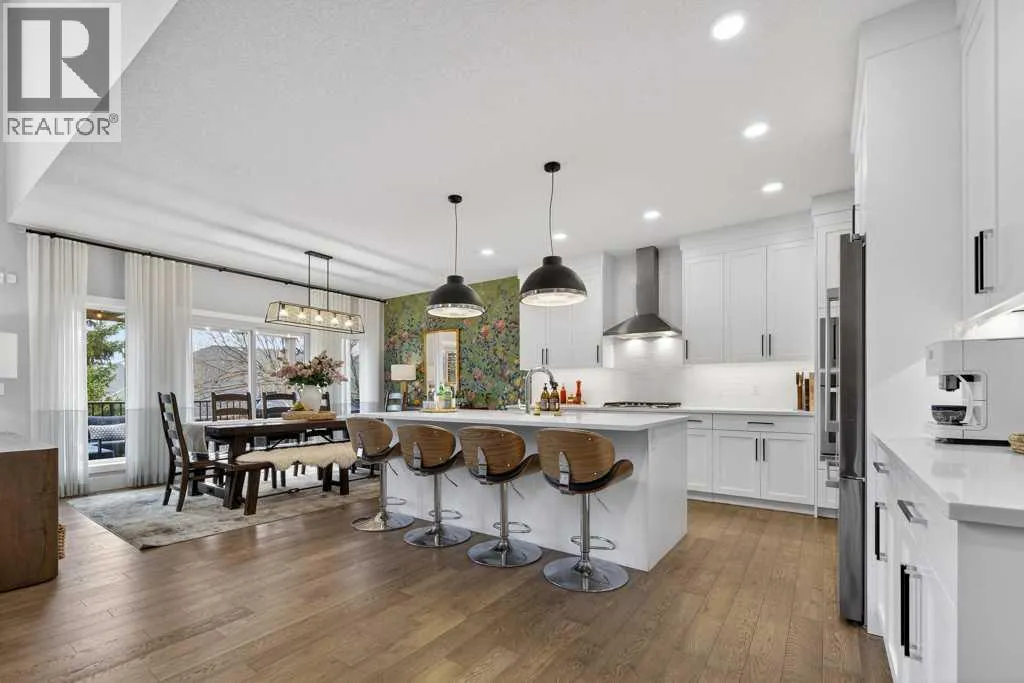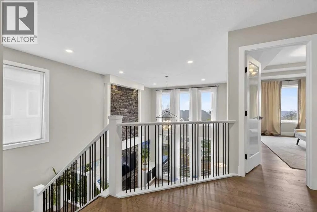 Exceptional Truman-built home offering over 4,000 sq ft of refined living space, tucked on a quiet cul-de-sac in sought-after West Springs. Stunning curb appeal with custom-coloured James Hardie siding and an exposed aggregate driveway. Inside, the home has been professionally painted throughout, with finished garage detailing, designer drapery across the home, a striking dining-room mural feature wall, and thoughtful built-ins that elevate both style and function. The main and upper levels feature engineered hardwood flooring throughout, creating a clean, elevated look. The main floor is thoughtfully designed with a private office/den, a spacious mudroom, and a walk-through pantry with convenient servery. The gourmet kitchen is a showpiece with full-height custom cabinetry, quartz countertops, upgraded gas stove, and new refrigerator and dishwasher.Upstairs, a sunken bonus room creates the perfect retreat, complemented by two generous secondary bedrooms and a full 4-piece bath. The spacious primary suite is a true escape with a spa-inspired ensuite featuring dual vanities and an oversized custom-tiled shower. The laundry area includes a new washer and dryer plus an LG Styler steam clothing care system for next-level convenience. The professionally developed basementâdesigned with interior designer guidanceâdelivers a true lifestyle upgrade with a dedicated custom gym, soundproofed areas, and separate thermostat-controlled zones for the bedroom and main living space, finished with durable laminate flooring.Step outside to a meticulously designed backyard retreat with exposed aggregate patios and pads, dual pergolas on upper and lower levels, Gemstone permanent exterior lighting with the latest hub technology, outdoor heaters, and a custom outdoor fireplace. A professionally installed Wi-Fi-controlled hot tub completes the private oasis. Additional upgrades include underground drainage via a swale system, a full Wi-Fi irrigation system with rain sensor, and beaut iful landscaping featuring a Linden tree plus a Honeycrisp apple tree. The oversized triple garage is fully upgraded with finished flooring, an EV charging station, and ceiling/wall-mounted storage systems. Ideally located near top-rated schools (West Springs School, West Ridge School, Ernest Manning High School) and premier private options like Webber Academy and Calgary French & International School, with quick access to shopping, dining, downtown via Bow Trail, and Stoney Trailâsurrounded by parks, pathways, and green spaces. A rare opportunity to own a truly turnkey luxury home in an unbeatable westside location. (id:27476)