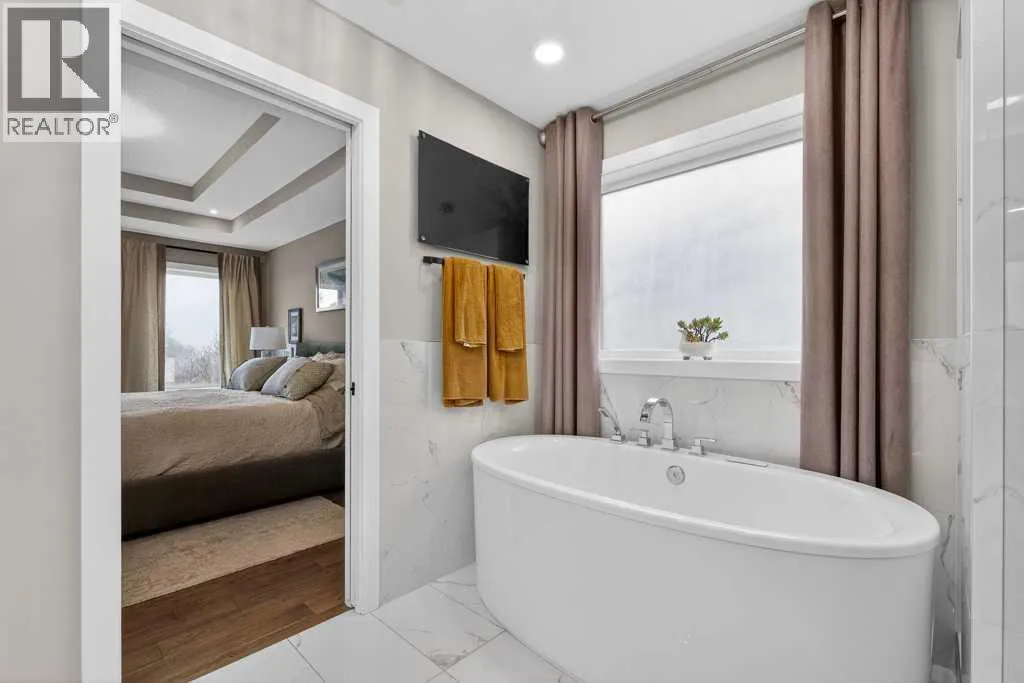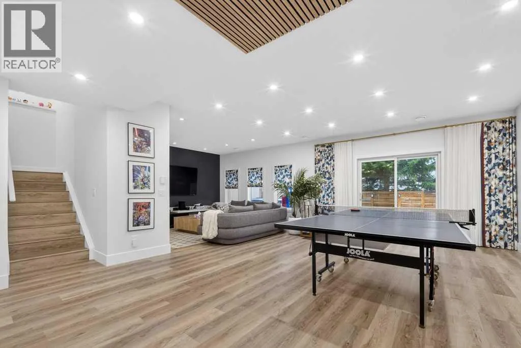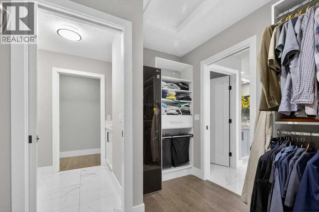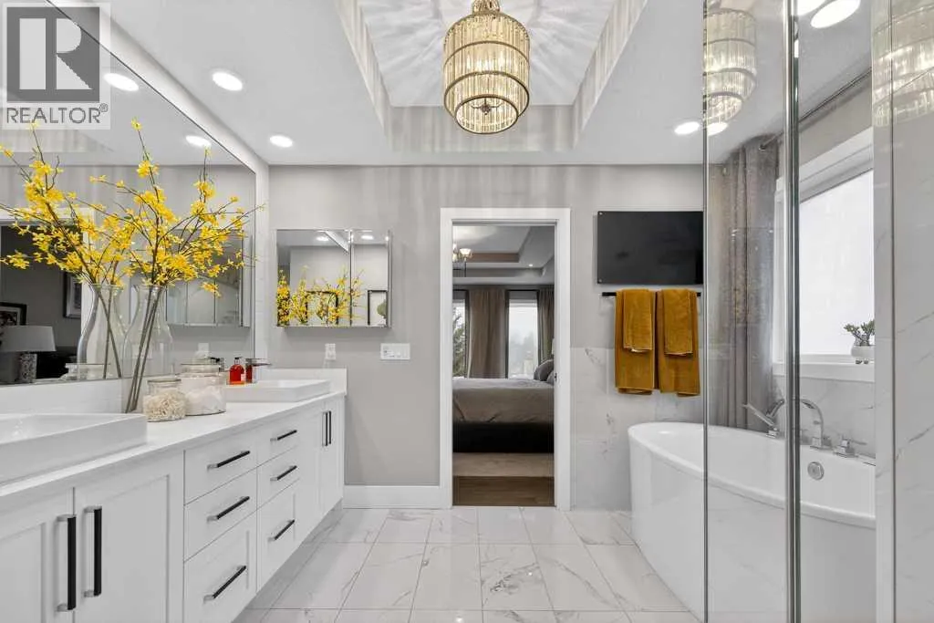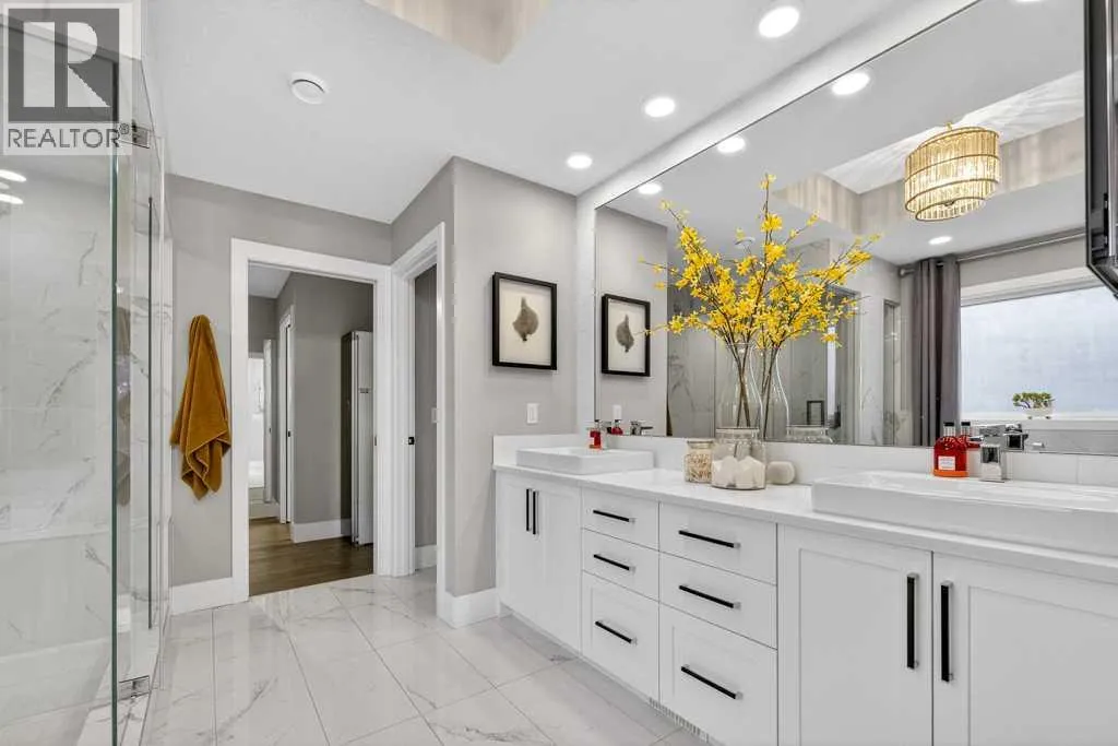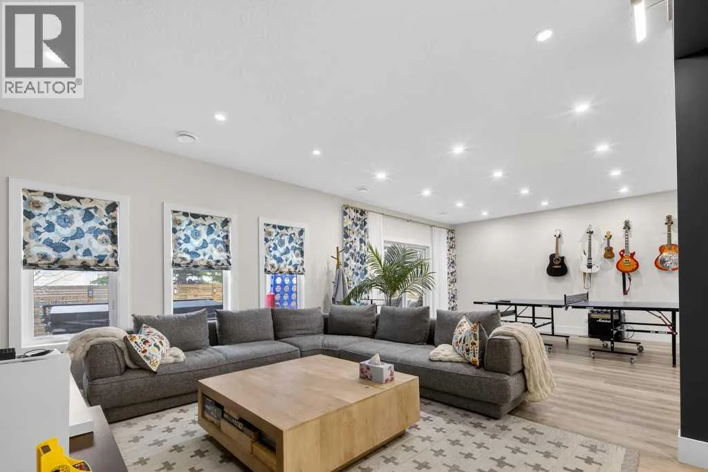 Exceptional Truman-built home offering over 4,000 sq ft of refined living space, tucked on a quiet cul-de-sac in sought-after West Springs. Stunning curb appeal with custom-coloured James Hardie siding and an exposed aggregate driveway. Inside, the home has been professionally painted throughout, with finished garage detailing, designer drapery across the home, a striking dining-room mural feature wall, and thoughtful built-ins that elevate both style and function. The main and upper levels feature engineered hardwood flooring throughout, creating a clean, elevated look. The main floor is thoughtfully designed with a private office/den, a spacious mudroom, and a walk-through pantry with convenient servery. The gourmet kitchen is a showpiece with full-height custom cabinetry, quartz countertops, upgraded gas stove, and new refrigerator and dishwasher.Upstairs, a sunken bonus room creates the perfect retreat, complemented by two generous secondary bedrooms and a full 4-piece bath. The spacious primary suite is a true escape with a spa-inspired ensuite featuring dual vanities and an oversized custom-tiled shower. The laundry area includes a new washer and dryer plus an LG Styler steam clothing care system for next-level convenience. The professionally developed basementâdesigned with interior designer guidanceâdelivers a true lifestyle upgrade with a dedicated custom gym, soundproofed areas, and separate thermostat-controlled zones for the bedroom and main living space, finished with durable laminate flooring.Step outside to a meticulously designed backyard retreat with exposed aggregate patios and pads, dual pergolas on upper and lower levels, Gemstone permanent exterior lighting with the latest hub technology, outdoor heaters, and a custom outdoor fireplace. A professionally installed Wi-Fi-controlled hot tub completes the private oasis. Additional upgrades include underground drainage via a swale system, a full Wi-Fi irrigation system with rain sensor, and beaut iful landscaping featuring a Linden tree plus a Honeycrisp apple tree. The oversized triple garage is fully upgraded with finished flooring, an EV charging station, and ceiling/wall-mounted storage systems. Ideally located near top-rated schools (West Springs School, West Ridge School, Ernest Manning High School) and premier private options like Webber Academy and Calgary French & International School, with quick access to shopping, dining, downtown via Bow Trail, and Stoney Trailâsurrounded by parks, pathways, and green spaces. A rare opportunity to own a truly turnkey luxury home in an unbeatable westside location. (id:27476)